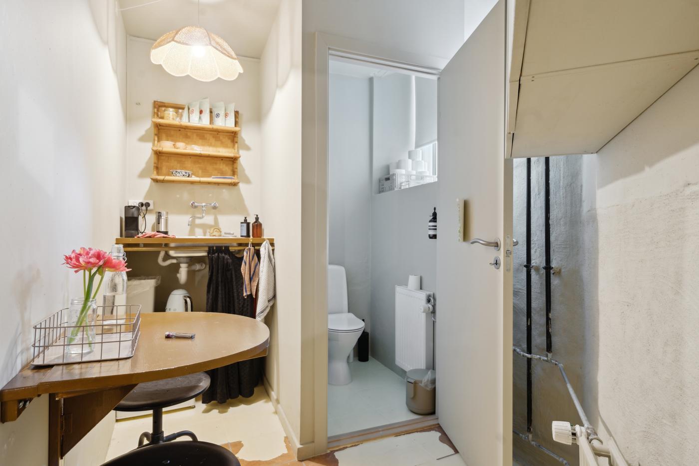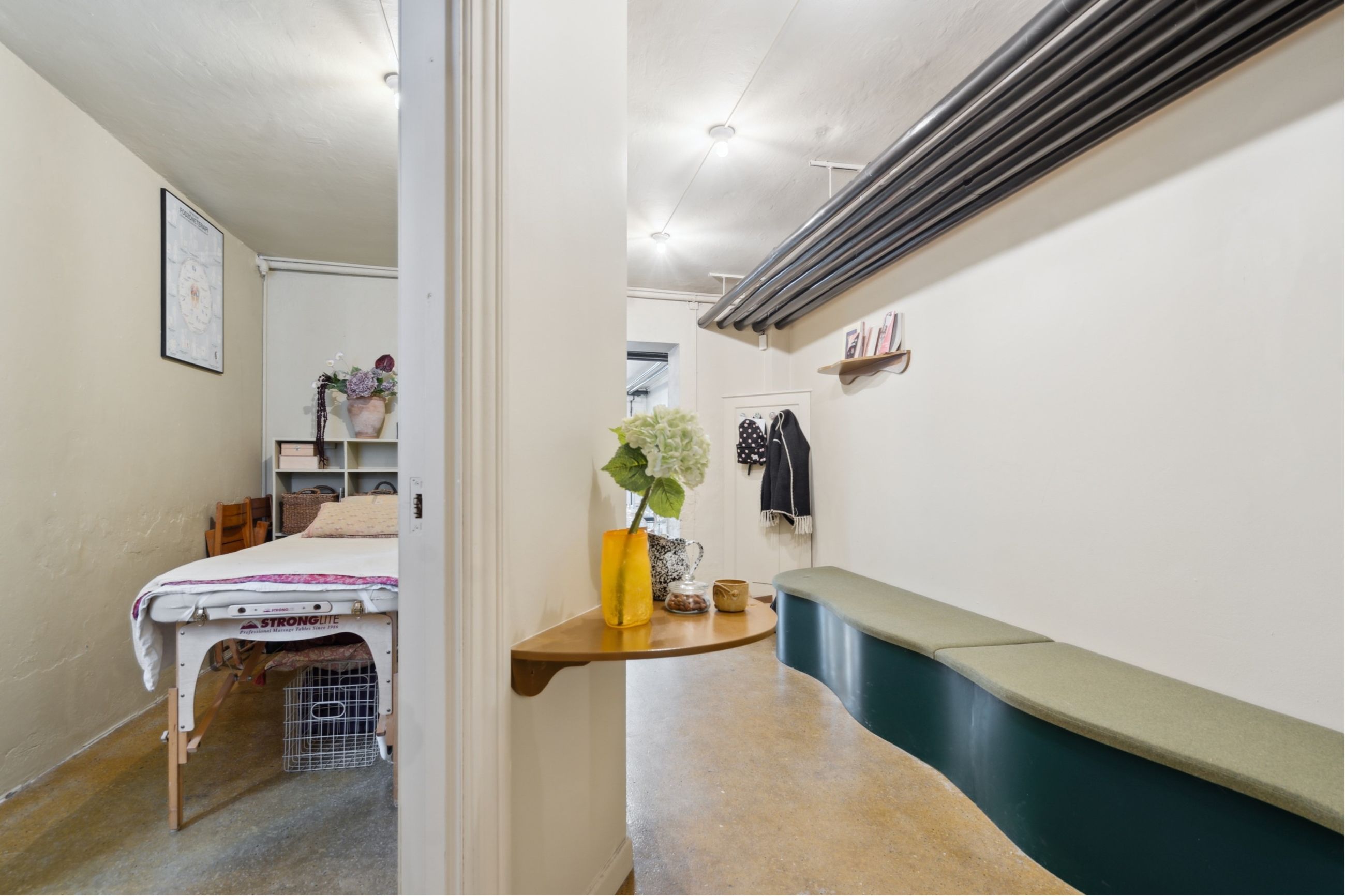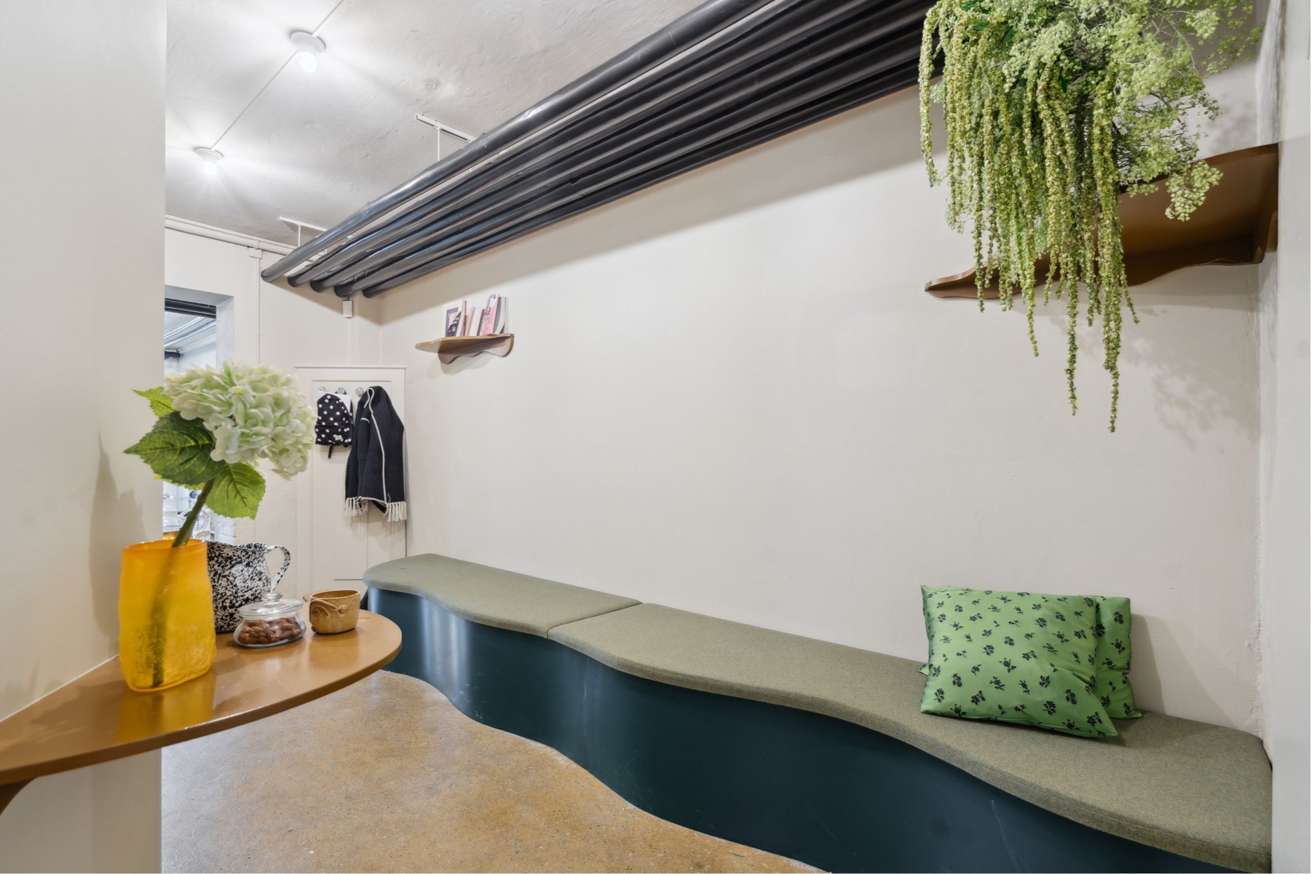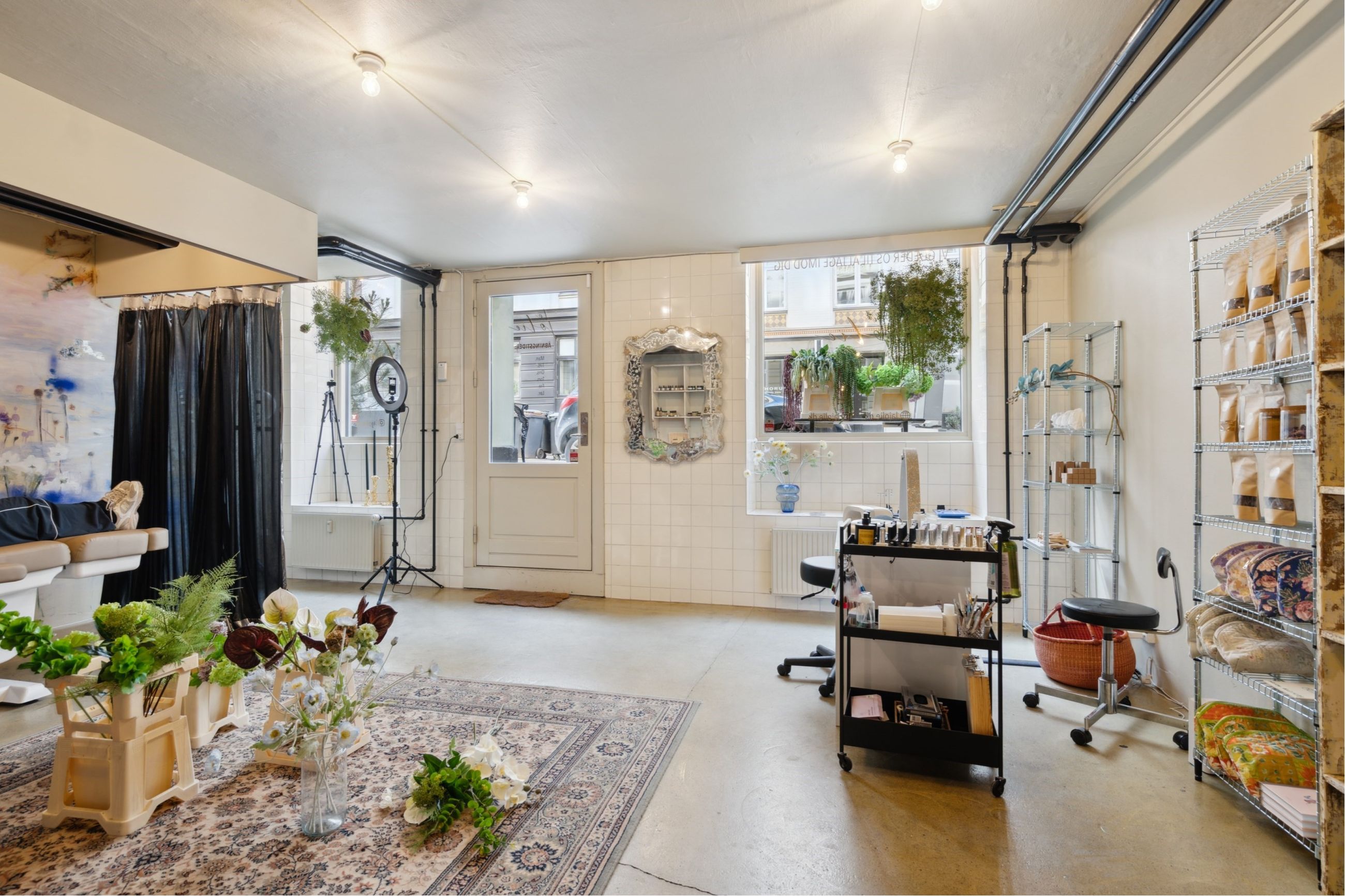 Lejemålet udgør 80 m² med et regulært og højloftet salgsareal i forreste del. Bagtil er to behandlerrum, venteområde samt køkken og toilet. Lokalerne er i velholdt stand og fremstår særdeles indbydende. Man træder ind i en stemningsfyldt atmosfære, som harmonerer med stemningen i Tullinsgade og på Værnedamsvej.