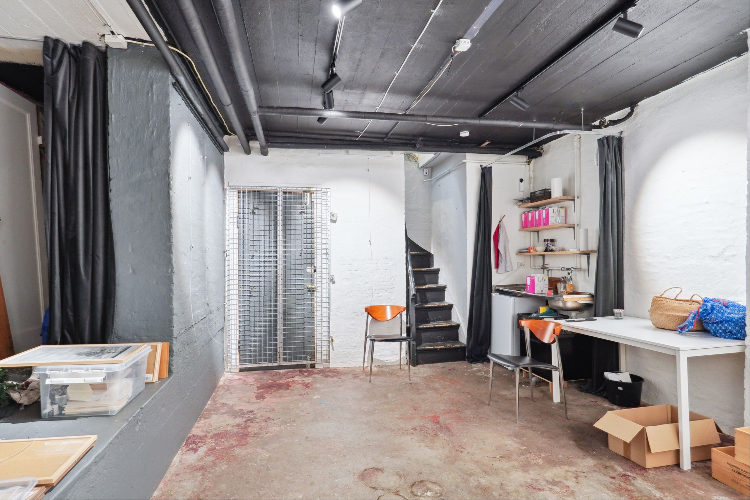 Lejemålet er 88 m² fordelt på to plan. Stueplan er i dag indrettet med et regulært salgsareal i forreste del. Lokalet er lyst, indbydende og højloftet, hvilket sikrer en god rummelighed og gode indretningsmuligheder.