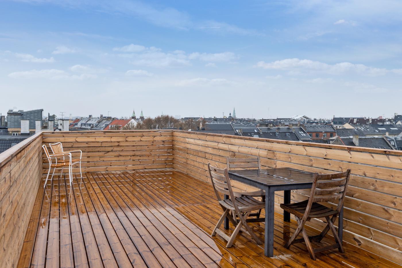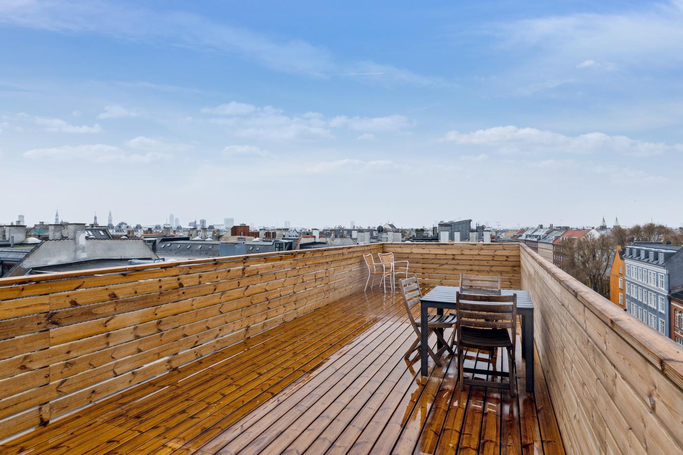 På taget af ejendommen findes ejerforeningens fælles rummelig tagterrasse, som har en fantastisk udsigt over Københavns tage og tårne - et sjældent og eksklusivt uderum i området. Ejendommen er veldrevet med lave driftsomkostninger, hvilket gør enheden attraktiv både for ejerbrugeren og den mindre investor med henblik på udlejning. Størrelsen og den gode stand understøtter et solidt og stabilt udlejningspotentiale.