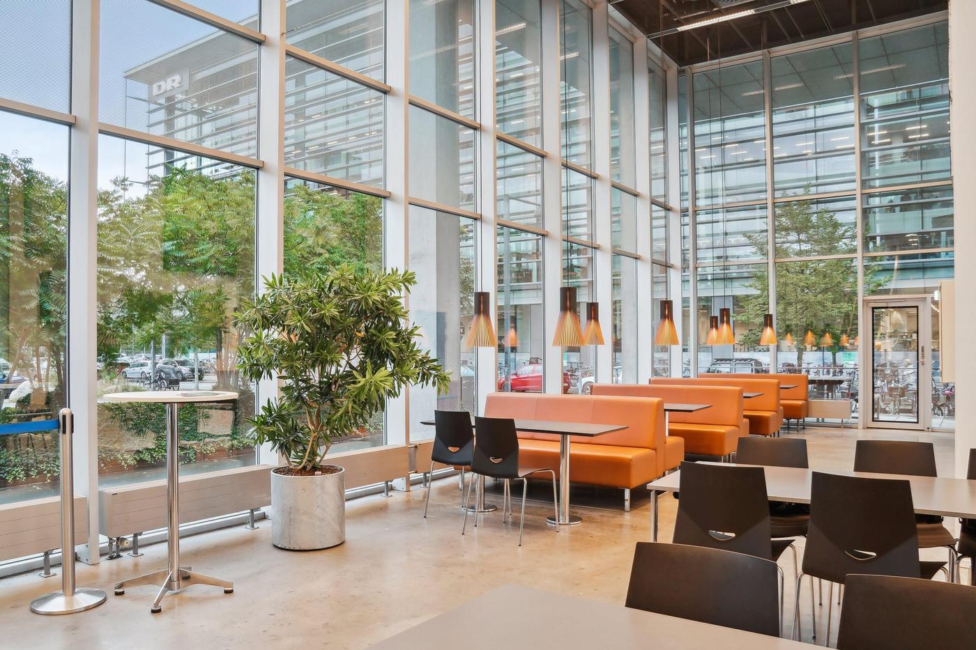 desuden virkelig god plads, og som en del af DR-bygningen, er der masser af liv og aktivitet.