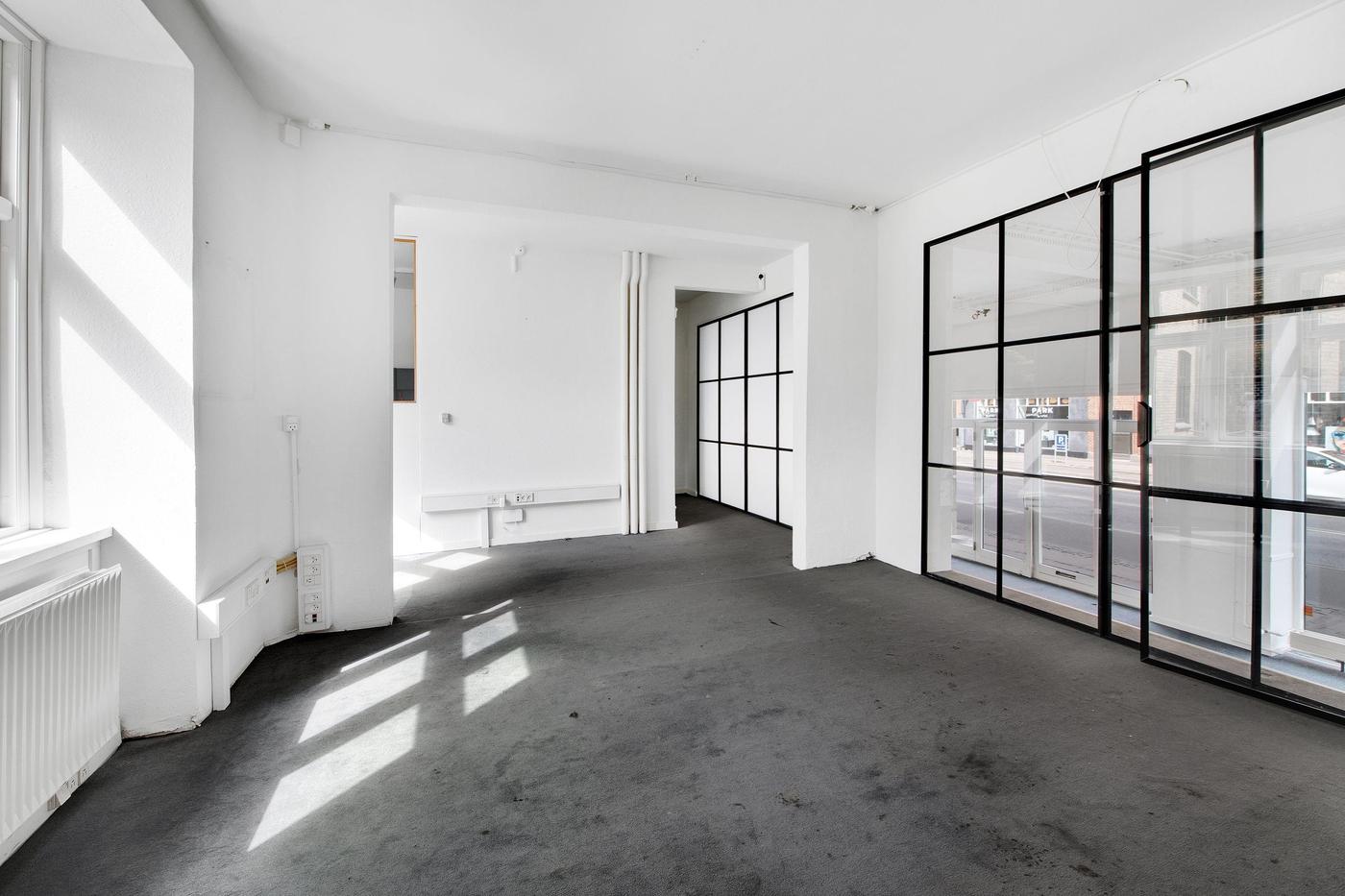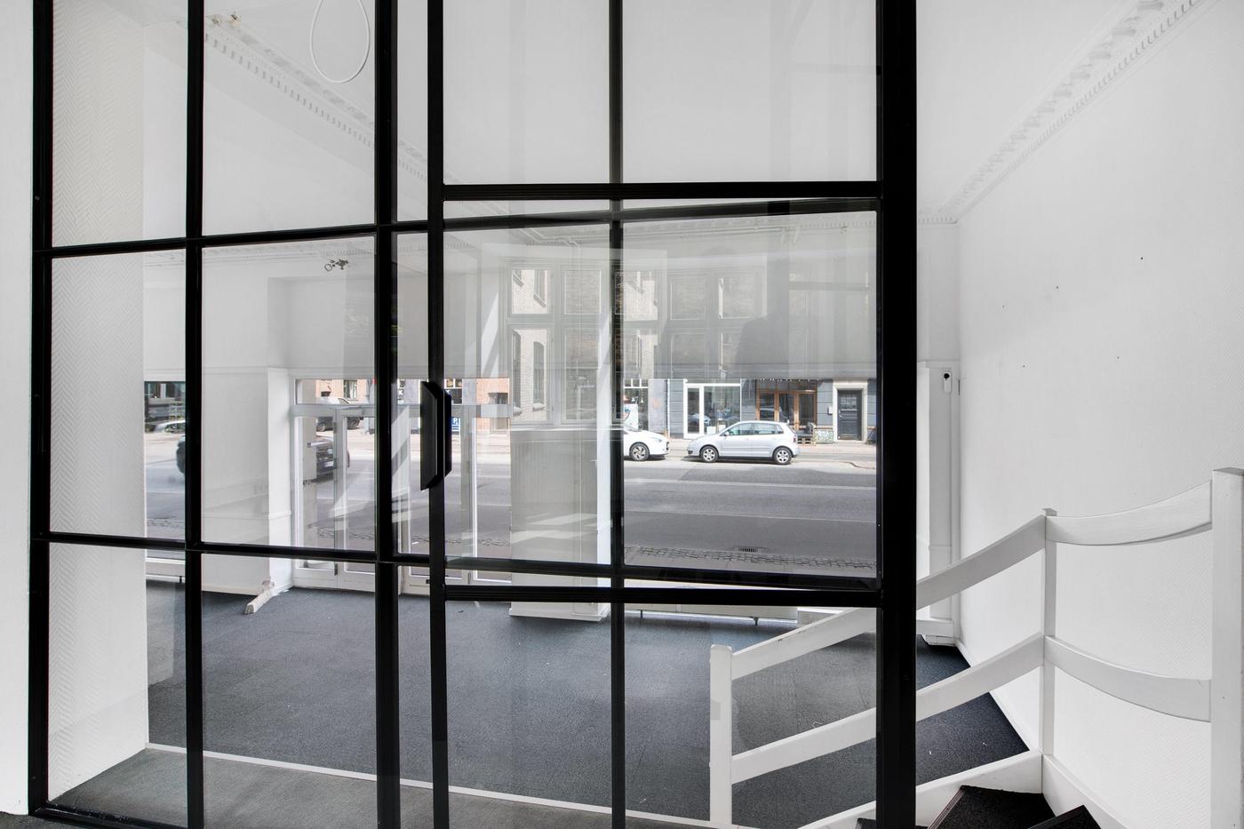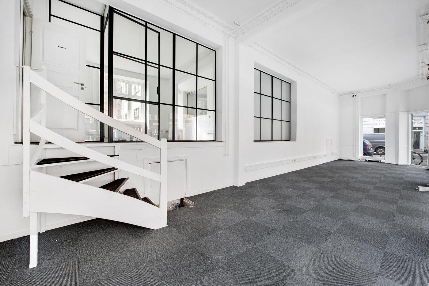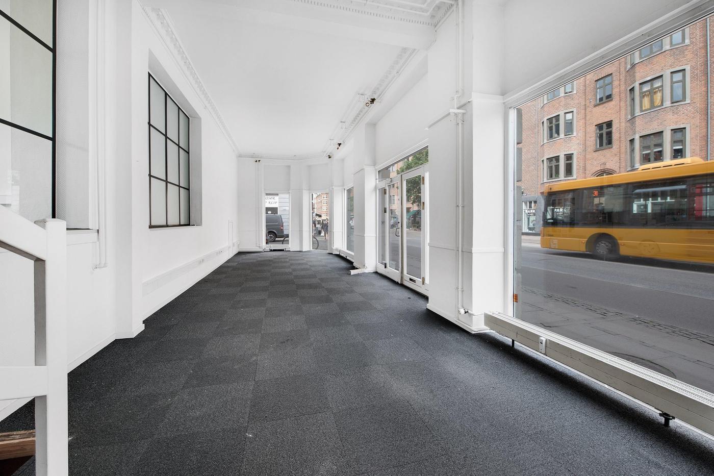 Igennem de store glasfacader vil man allerede udefra fornemme, at det er nogle rummelige og indbydende lokaler, der venter på Holmbladsgade 18, og indtrykket af en pæn og nydelig forretning falmer da heller ikke, idet man træder indenfor. Udover de to rum ud mod gaden, gemmer der sig også brugbare kontorer omme bagved, hvor et veludstyret køkken med vaskemaskine samt et WC også er at finde. Her er der mulighed for både at indrette større fælleskontorer samt enkeltmandskontorer, mødelokaler og behandlingsrum. Lejemålet fremgår hertil flot og lyst og har tidligere været anvendt som ejendomsmæglerkontor, men det vil kunne tilpasses de fleste typer erhverv. Slutteligt er der etableret gode lagerlokaler i kælderen, hvorfra der også er vinduer udadtil.