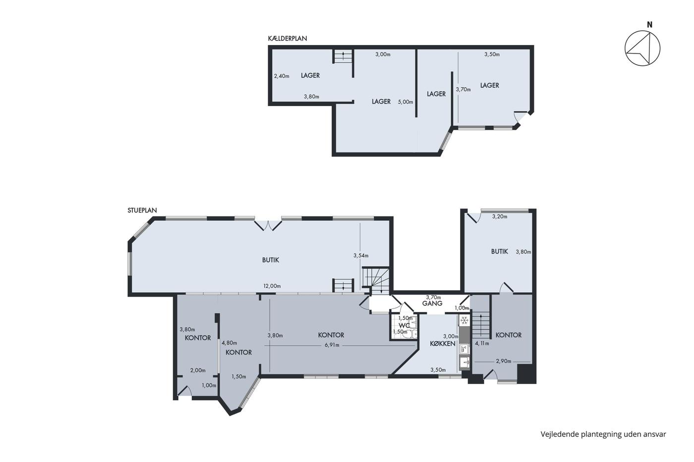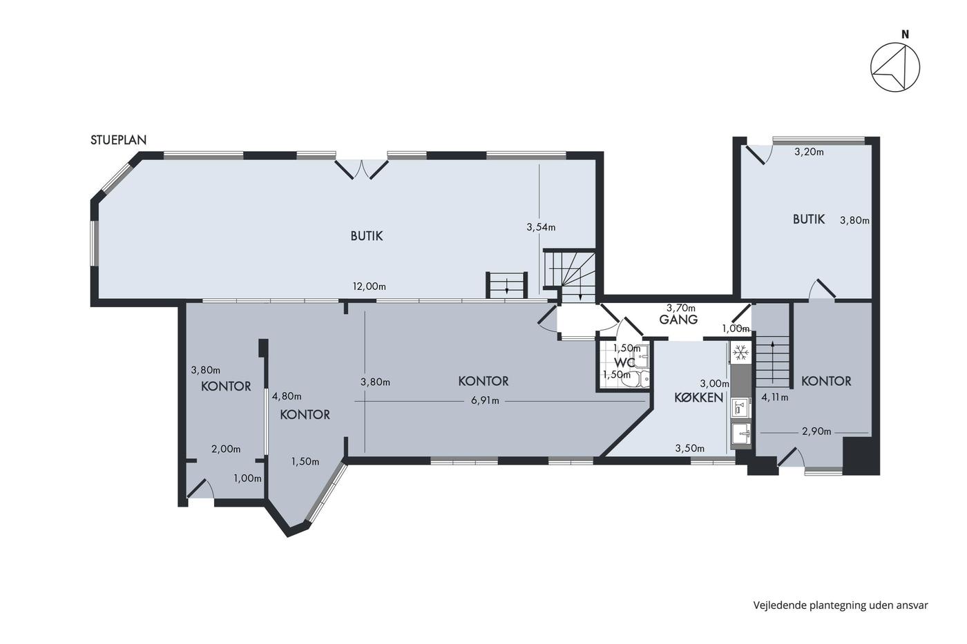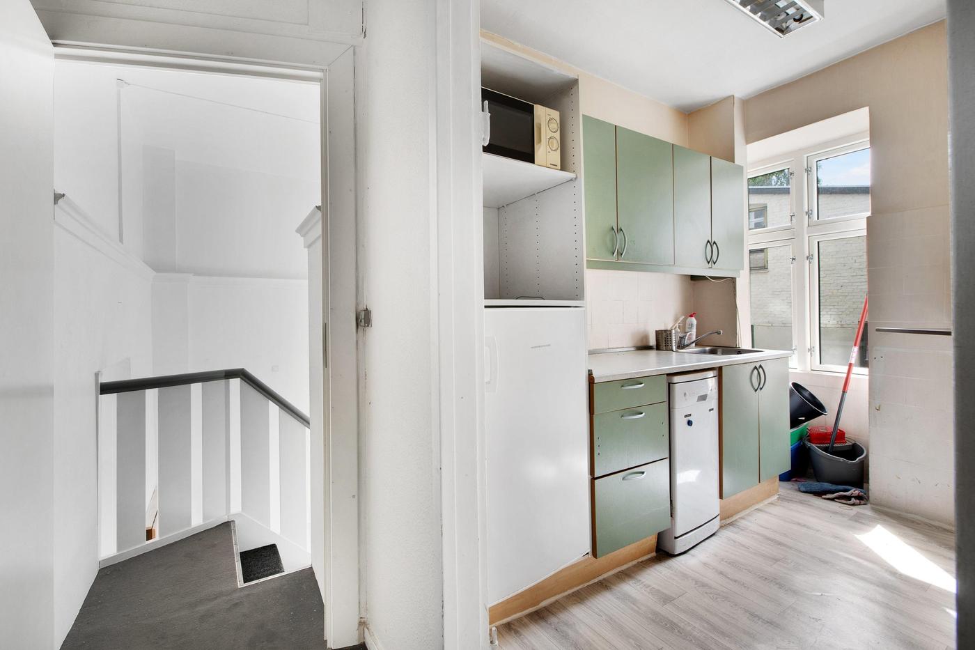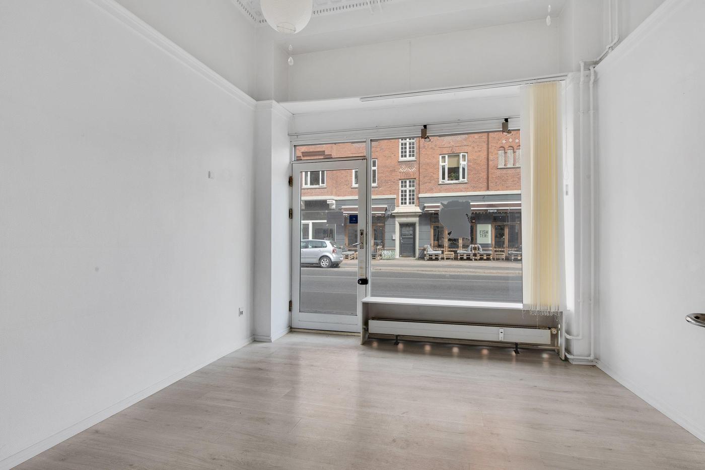 Igennem de store glasfacader vil man allerede udefra fornemme, at det er nogle rummelige og indbydende lokaler, der venter på Holmbladsgade 18, og indtrykket af en pæn og nydelig forretning falmer da heller ikke, idet man træder indenfor. Udover de to rum ud mod gaden, gemmer der sig også brugbare kontorer omme bagved, hvor et veludstyret køkken med vaskemaskine samt et WC også er at finde. Her er der mulighed for både at indrette større fælleskontorer samt enkeltmandskontorer, mødelokaler og behandlingsrum. Lejemålet fremgår hertil flot og lyst og har tidligere været anvendt som ejendomsmæglerkontor, men det vil kunne tilpasses de fleste typer erhverv. Slutteligt er der etableret gode lagerlokaler i kælderen, hvorfra der også er vinduer udadtil.