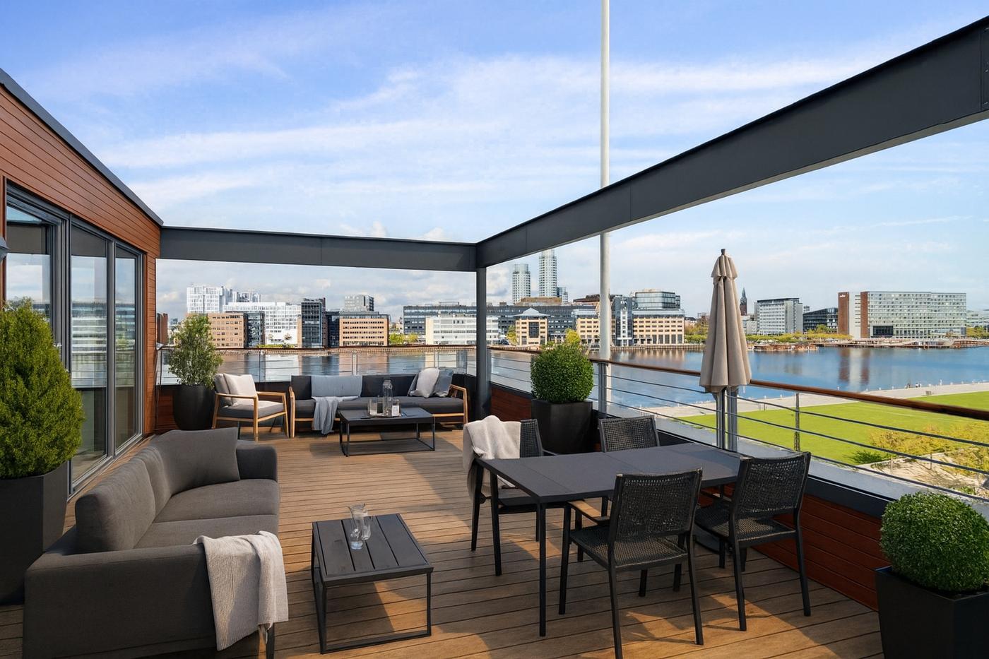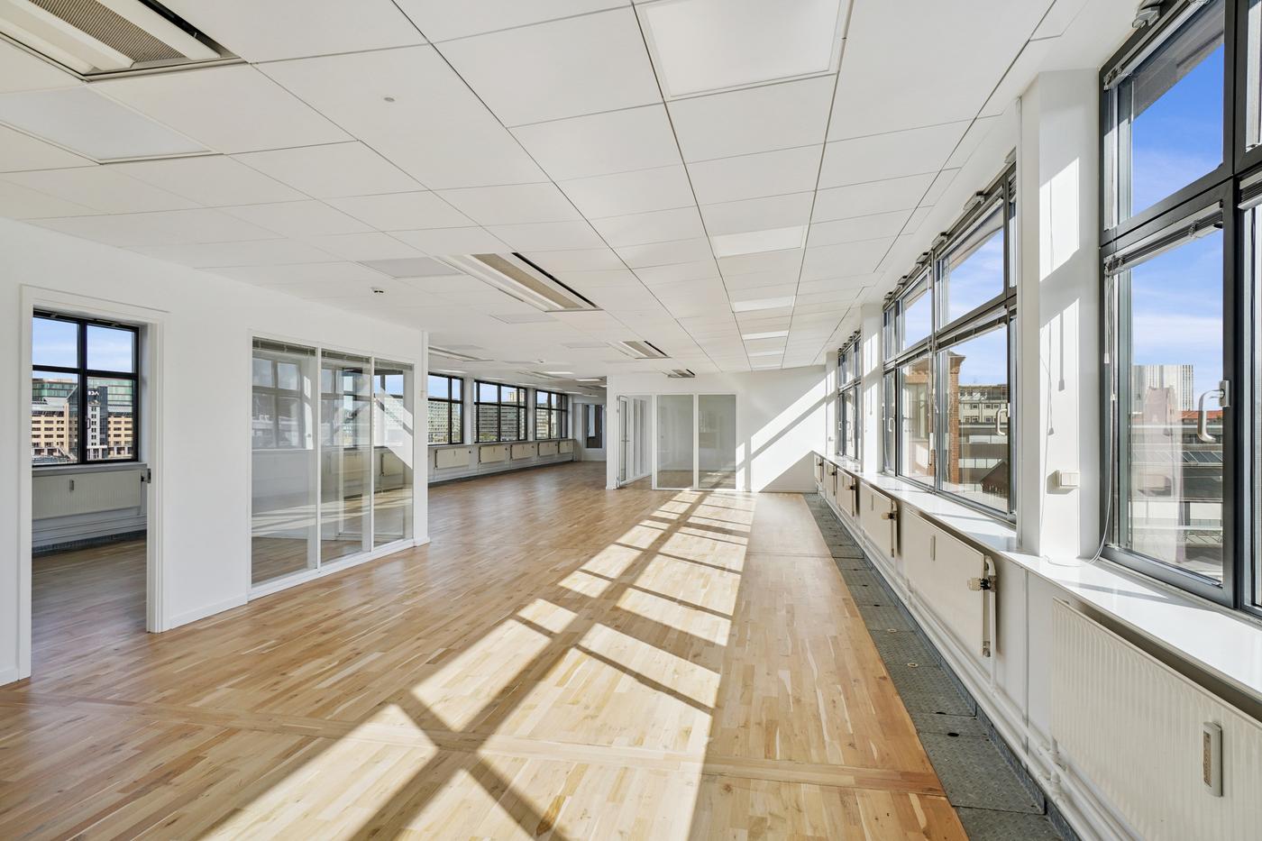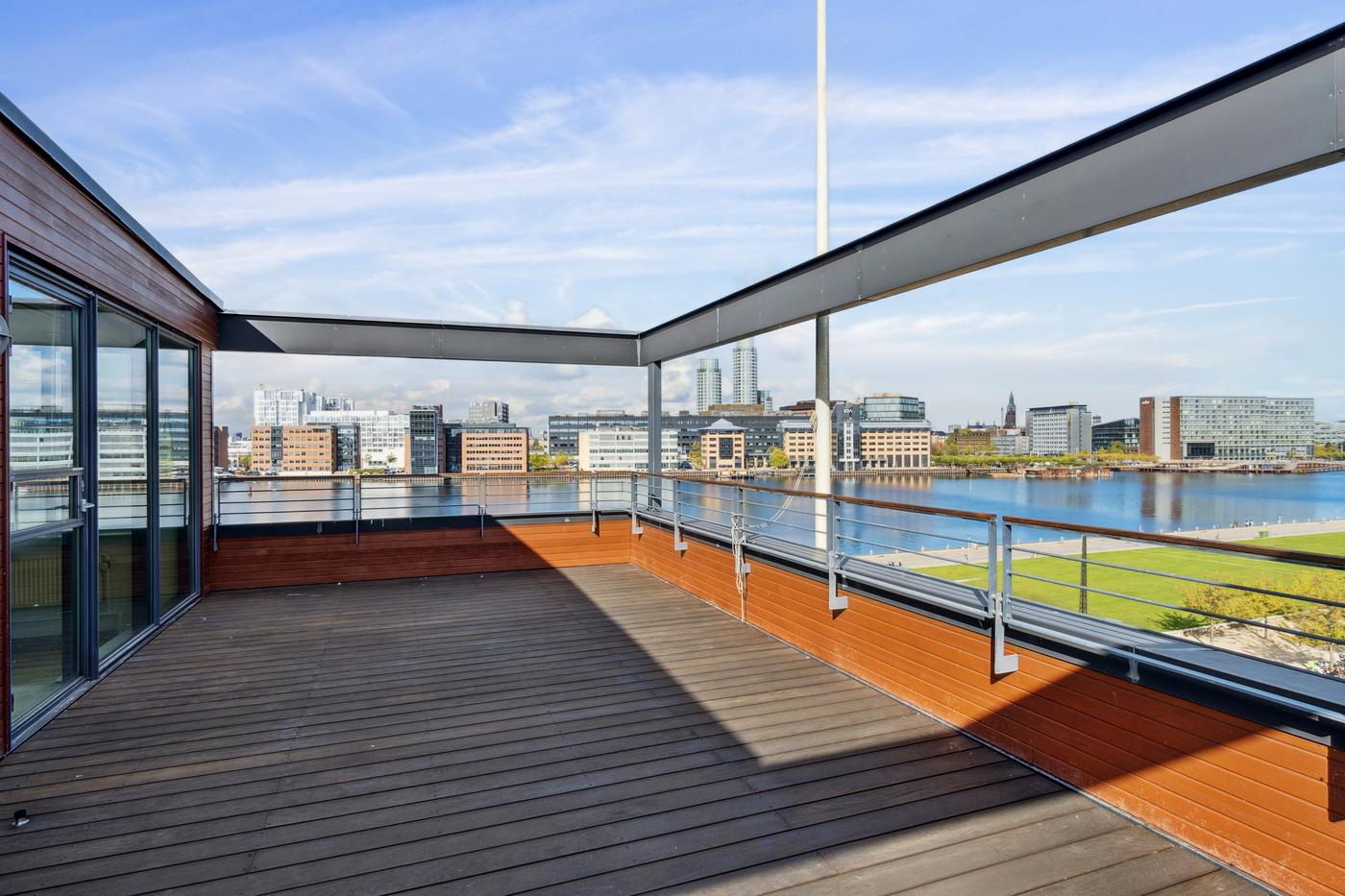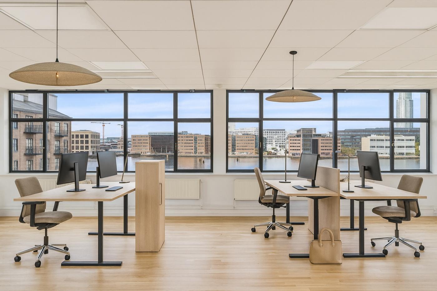 En af de største fordele ved dette lejemål er de to eksklusive tagterrasser, hvor I kan nyde solen og den spektakulære udsigt over Københavns havneløb og Kalvebod Brygge. De store vinduespartier sikrer masser af naturligt lys og en fantastisk udsigt fra både kontorer og mødelokaler.