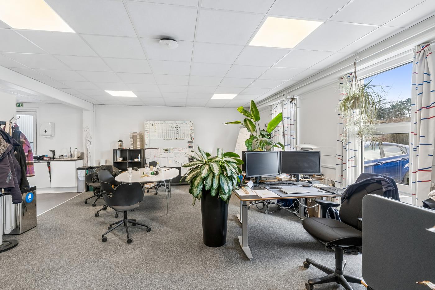 Hvis der er behov for yderligere kontorplads, kan der tillejes op til 555 m² kontor i ejendommen.