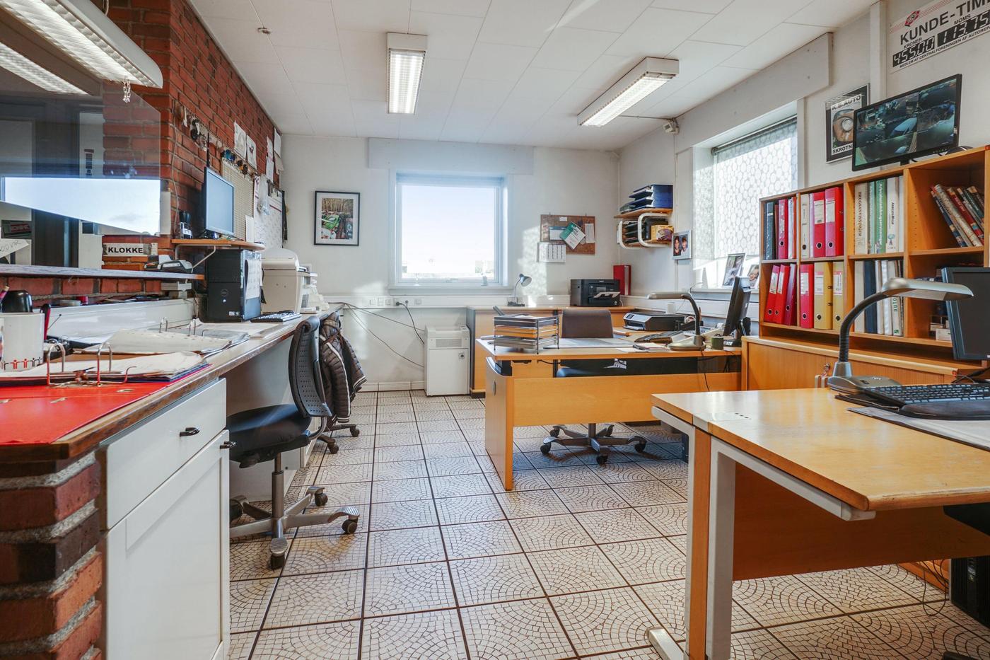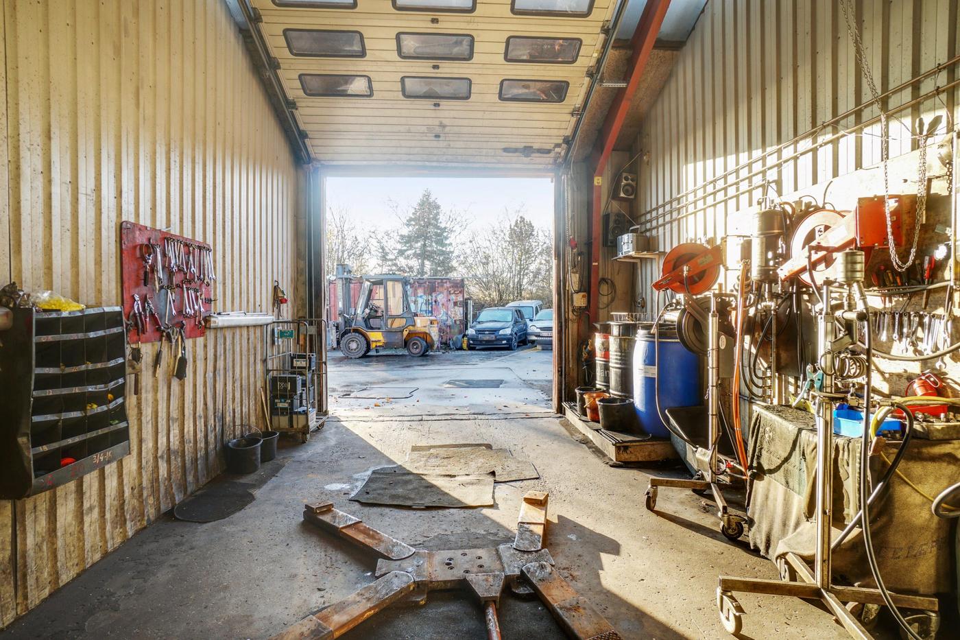 Ejendommen er indrettet med et stort åbent værksted, hvor der er 4-6 meter til loftet og med port. Der er videre adgang til et mindre værksted med egen port, mandskabsrum, kontor samt frokoststue.