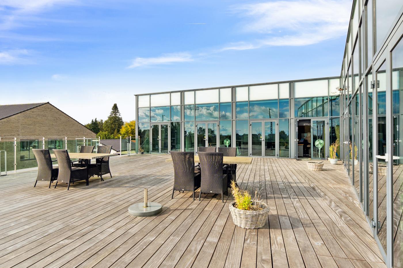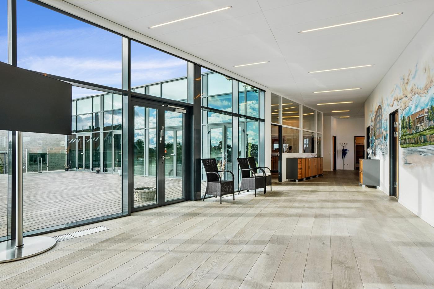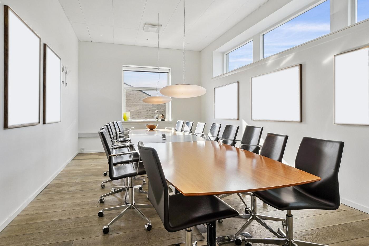 Materialevalget er moderne og smagfuldt med blandt andet trægulve som fuldender indretningen. En stor tagterrasse giver mulighed for både sociale arrangementer og kundeevents i attraktive omgivelser.