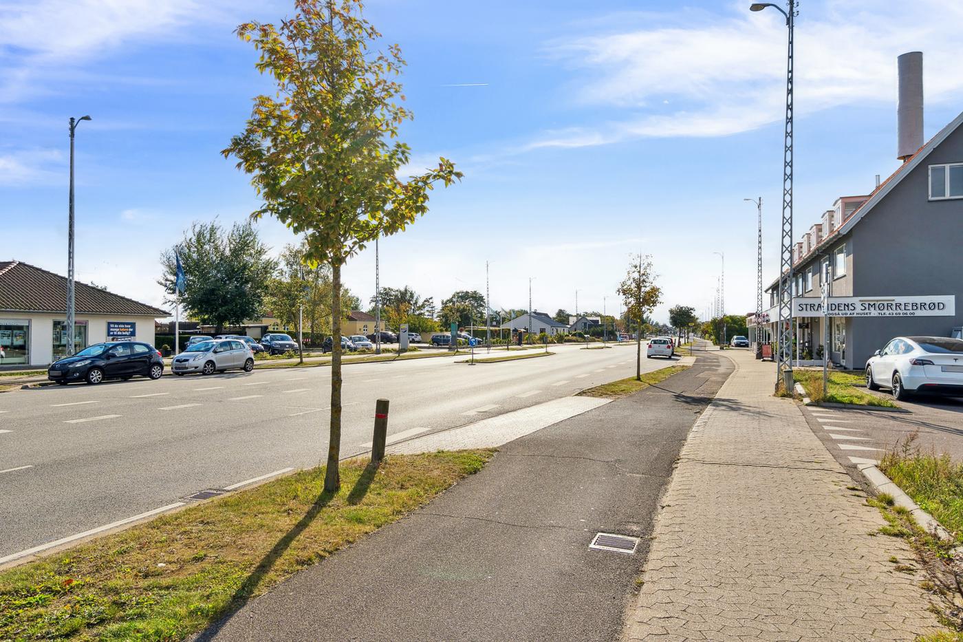 Ejendommen har en attraktiv placering ud til Hundige Strandvej, midt i et dynamisk erhvervsmiljø med et bredt udvalg af virksomheder - herunder frisører, skønhedsklinikker, ejendomsmæglere, banker, delikatesseforretninger, restauranter og takeaway-steder. Der er gode parkeringsforhold for både medarbejdere og kunder, og området er udstyret med ladere til elbiler. Et antal dags-parkeringskort til medarbejdere er inkluderet i lejen.