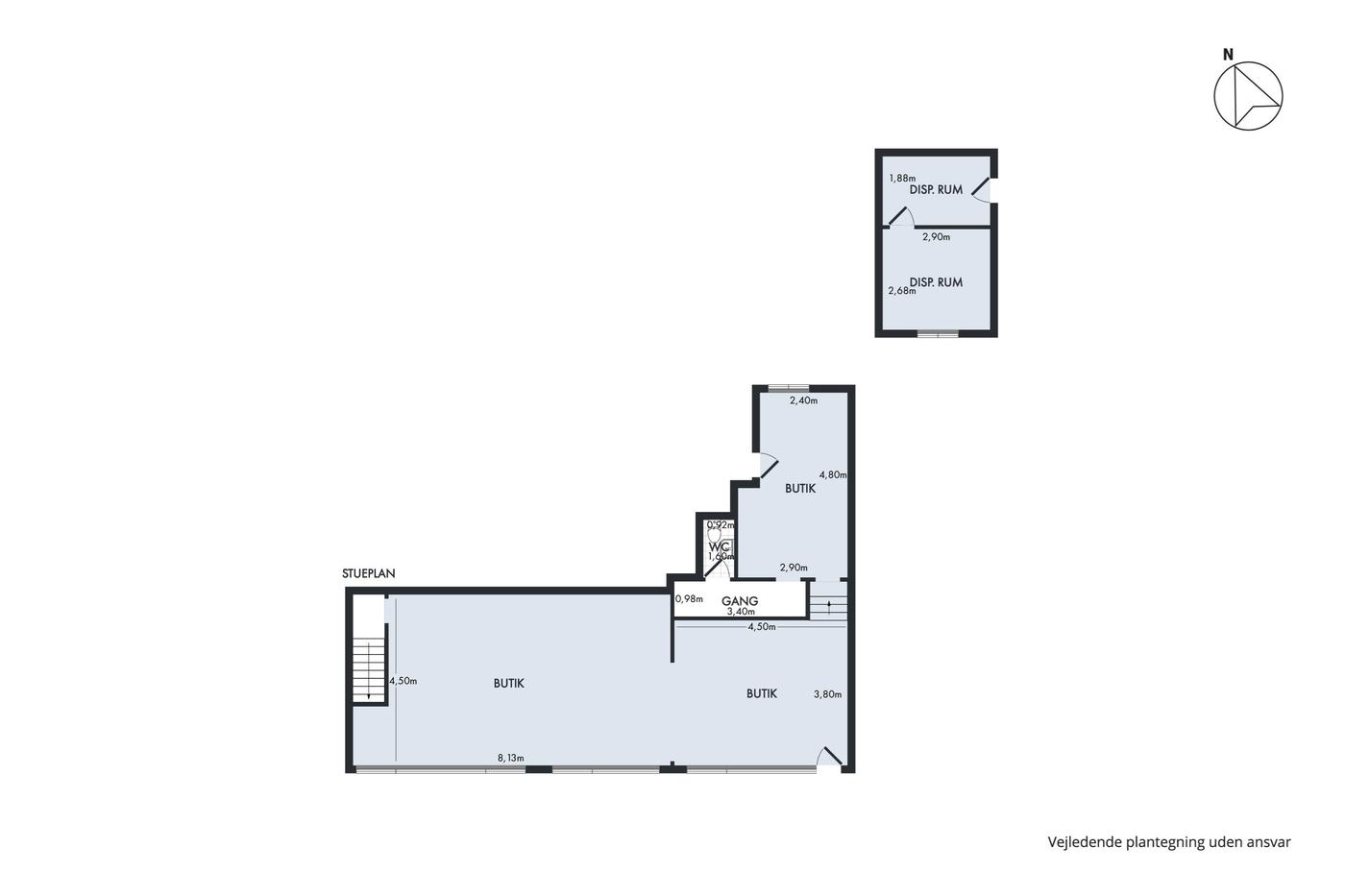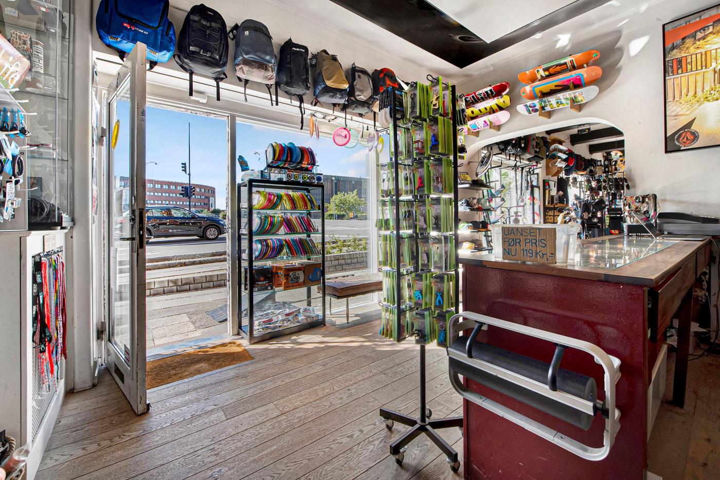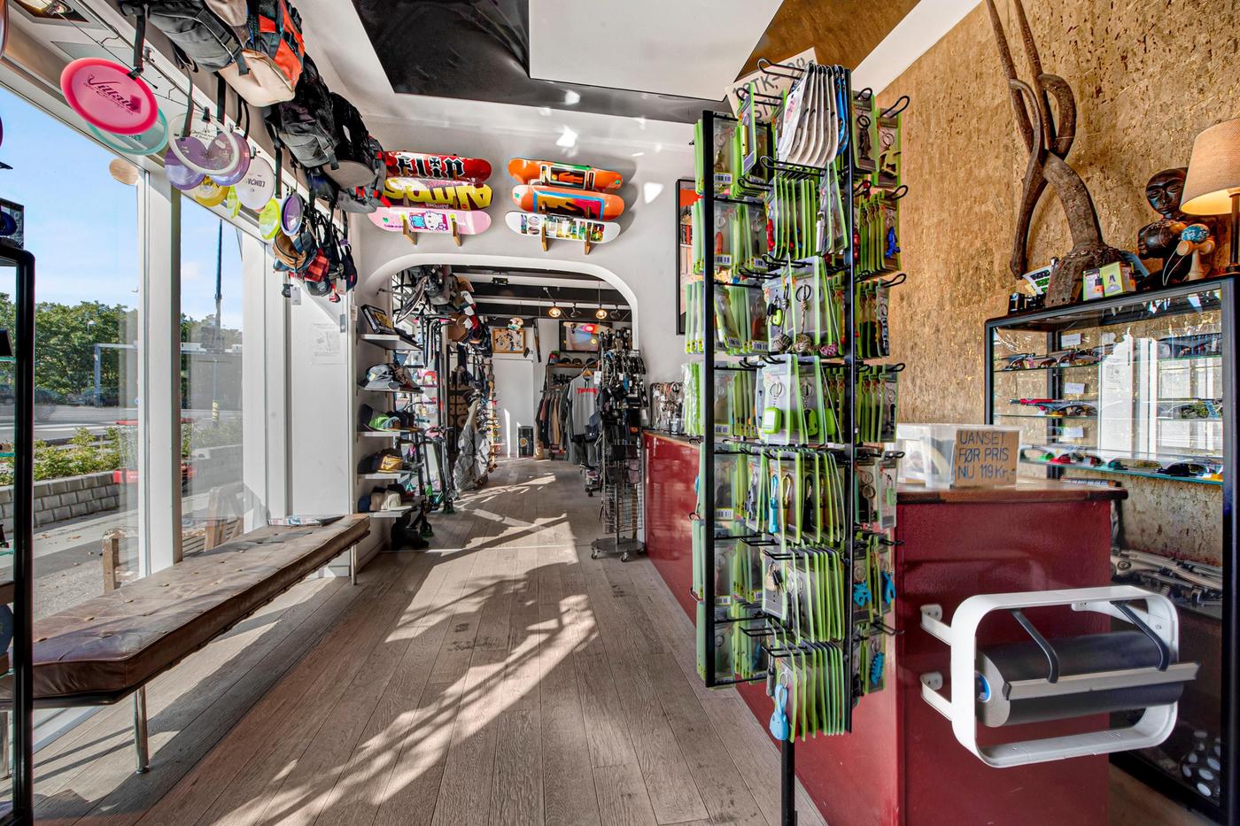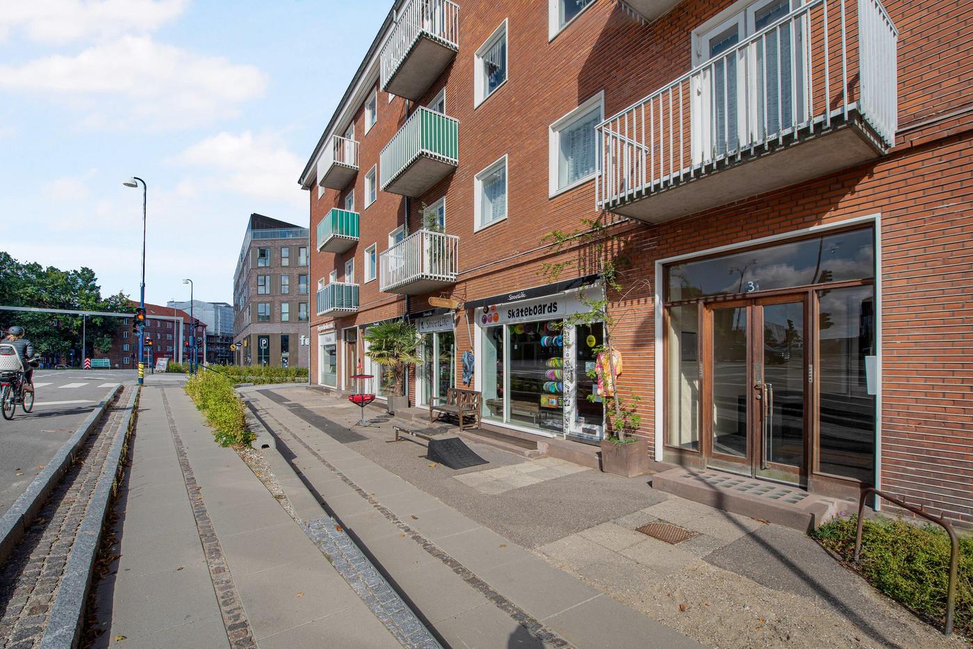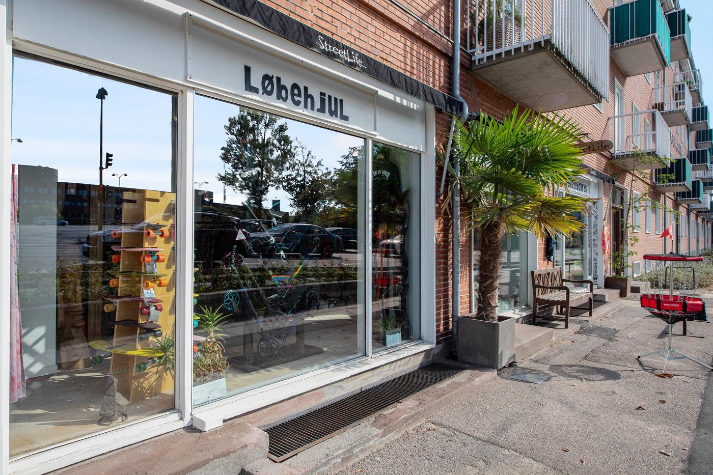 På adressen venter en en gedigen rødstensejendom, og denne butik ligger i stueetagen med store vinduespartier ud mod gaden, hvilket skaber synlighed samt gode ud skiltnings- og udstillingsmuligheder. Indgangspartiet fører ind til et stort butikslokale, der takket være sin regulære udformning er utrolig møblerbart. Gulve, vægge og lofter står snorlige, og de store vinduespartier sikrer naturligvis også et naturligt lysindfald, der nærmest gør lamper overflødige i dagtimerne. Stueetagens kvadratmeter breder sig ud med flere butikslokaler i åben forbindelse samt et toilet, og butikken afrundes med kælderetagen, der bl.a. byder på god lagerplads.