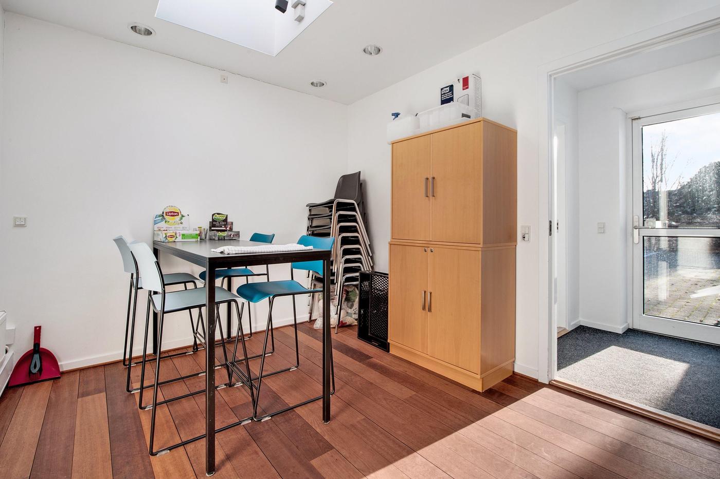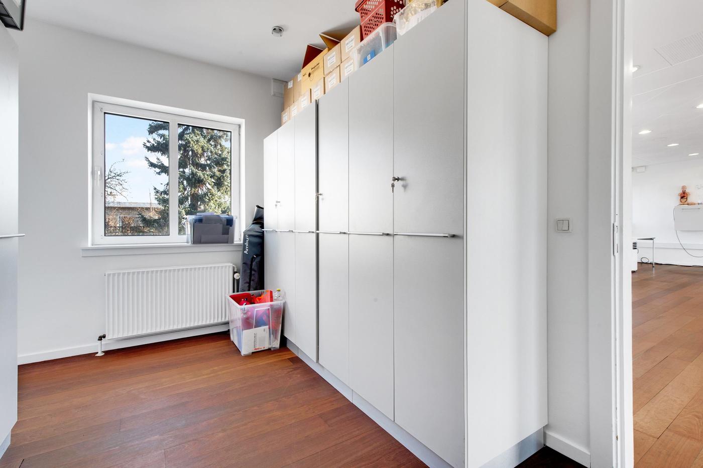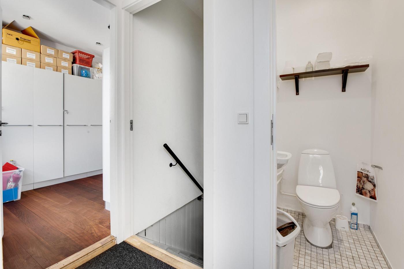 Erhvervsmålet fremstår pænt og præsentabelt og er indrettet med flotte, tidløse materialer - tag eksempelvis de hvide lofter med indbyggede spots, de flotte trægulve eller det minimalistiske interiør. Derudover fordeler de 313 kvadratmeter sig over en god og gennemtænkt planløsning, hvor alle rum er lyse og regulære, hvorfor indretningsmulighederne er i top. I stueetagen venter et stort lokale med mange anvendelsesmuligheder, og dertil kommer tre kontorlokaler, et disponibelt rum og et praktisk spisekøkken, mens den højloftede kælderetage råder over yderligere fem store disponible rum. Røde Kors, som er nuværende lejer, følger med i handlen, men du kan glæde dig over, at rumfordelingen vil matche en bred vifte af virksomheder i fremtiden, hvis det skulle blive aktuelt.