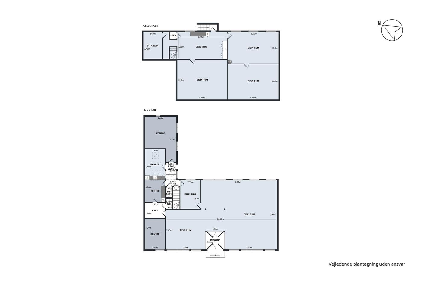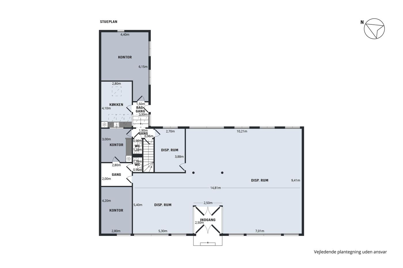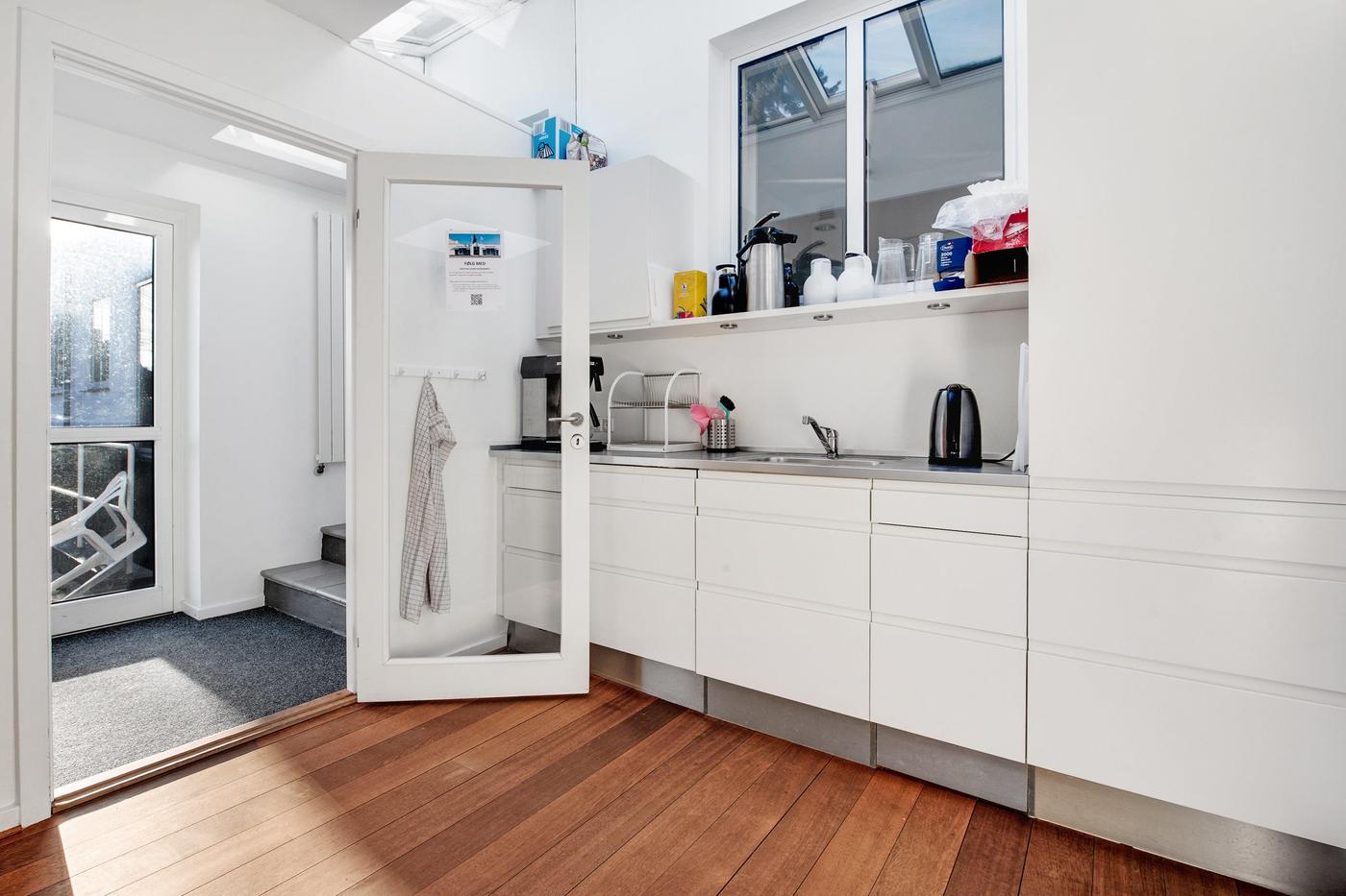 Erhvervsmålet fremstår pænt og præsentabelt og er indrettet med flotte, tidløse materialer - tag eksempelvis de hvide lofter med indbyggede spots, de flotte trægulve eller det minimalistiske interiør. Derudover fordeler de 313 kvadratmeter sig over en god og gennemtænkt planløsning, hvor alle rum er lyse og regulære, hvorfor indretningsmulighederne er i top. I stueetagen venter et stort lokale med mange anvendelsesmuligheder, og dertil kommer tre kontorlokaler, et disponibelt rum og et praktisk spisekøkken, mens den højloftede kælderetage råder over yderligere fem store disponible rum. Røde Kors, som er nuværende lejer, følger med i handlen, men du kan glæde dig over, at rumfordelingen vil matche en bred vifte af virksomheder i fremtiden, hvis det skulle blive aktuelt.