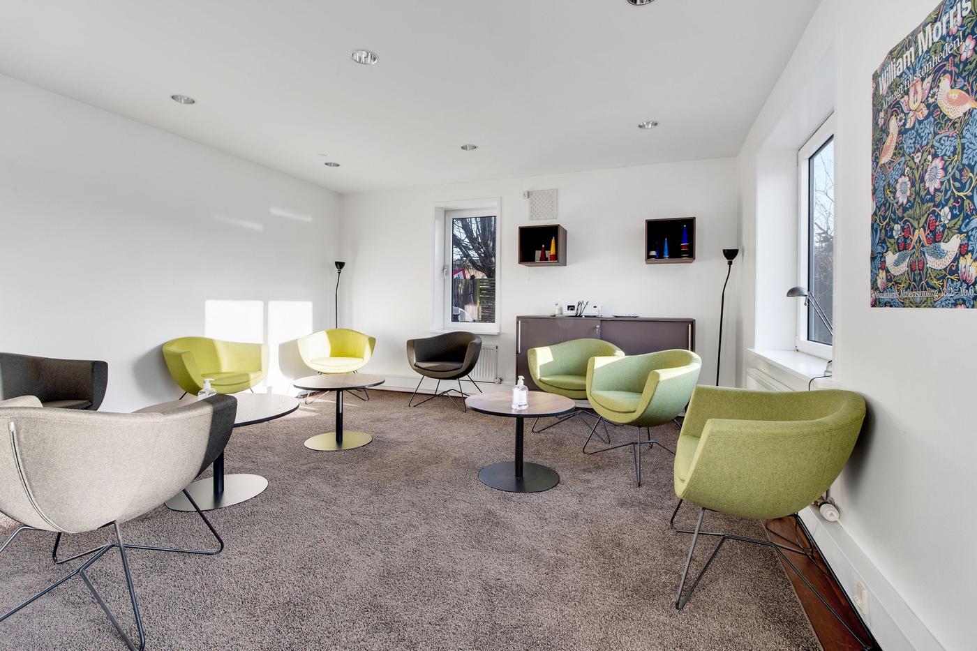 Kongevejen fungerer som en af Nordsjællands hovedpulsårer, og denne ejendom ligger centralt i Virum samt lige ved motorvejen, hvilket sikrer en nem og bekvem hverdag for både ansatte og kunder. Ejendommen ligger med front ud mod den trafikerede vej, og bagved er der parkeringsmuligheder såvel som et hyggeligt terrasseområde.