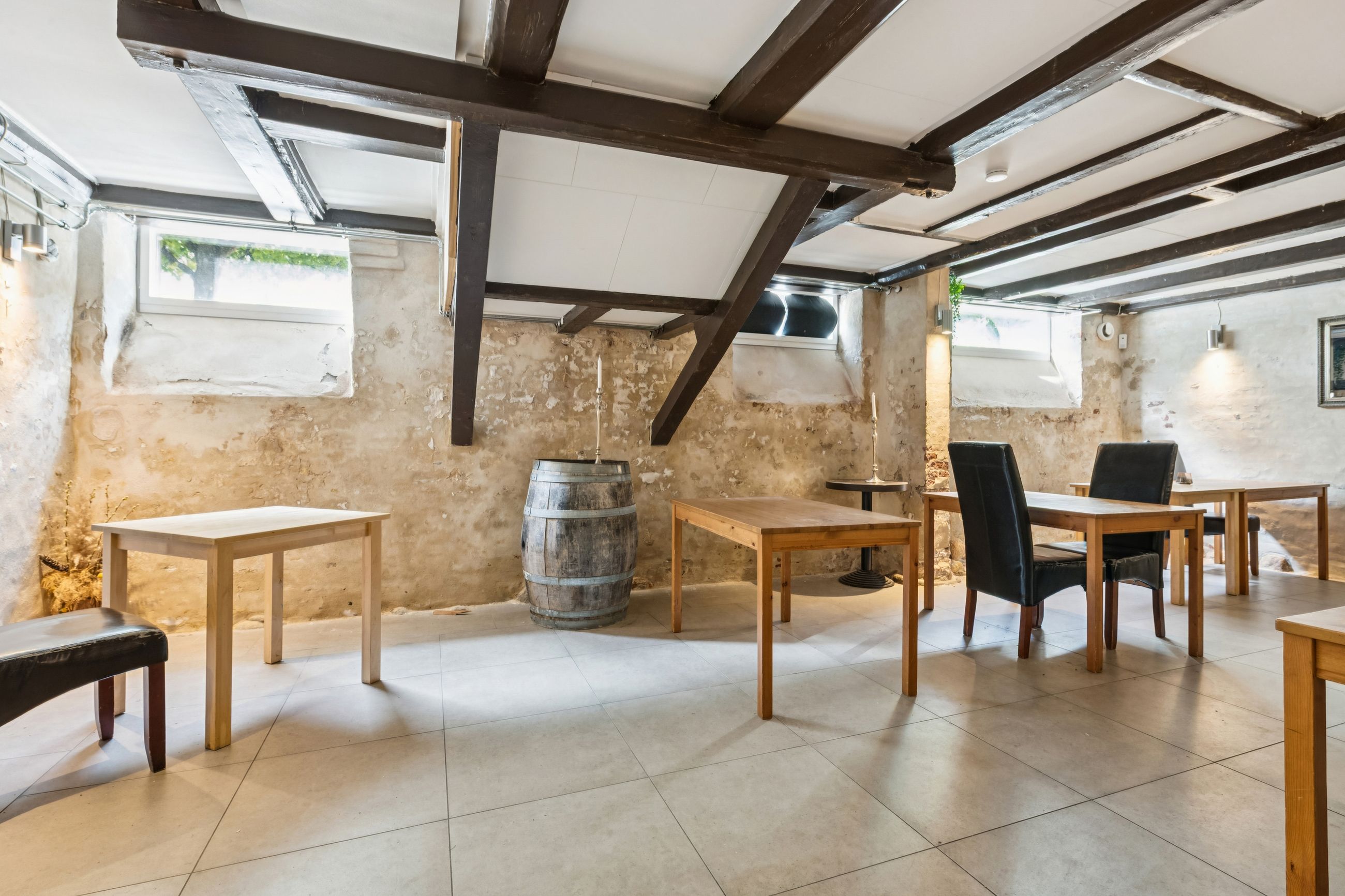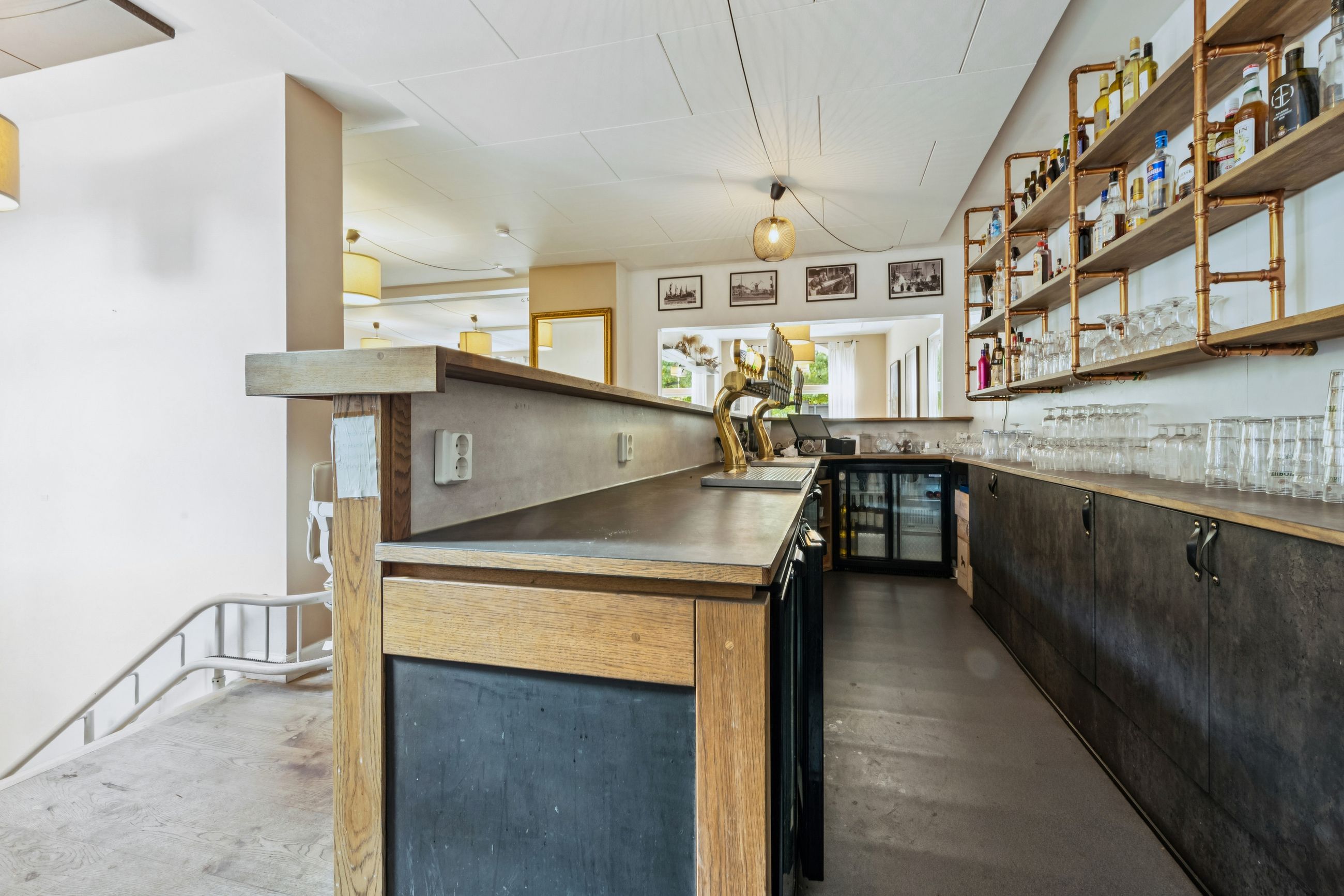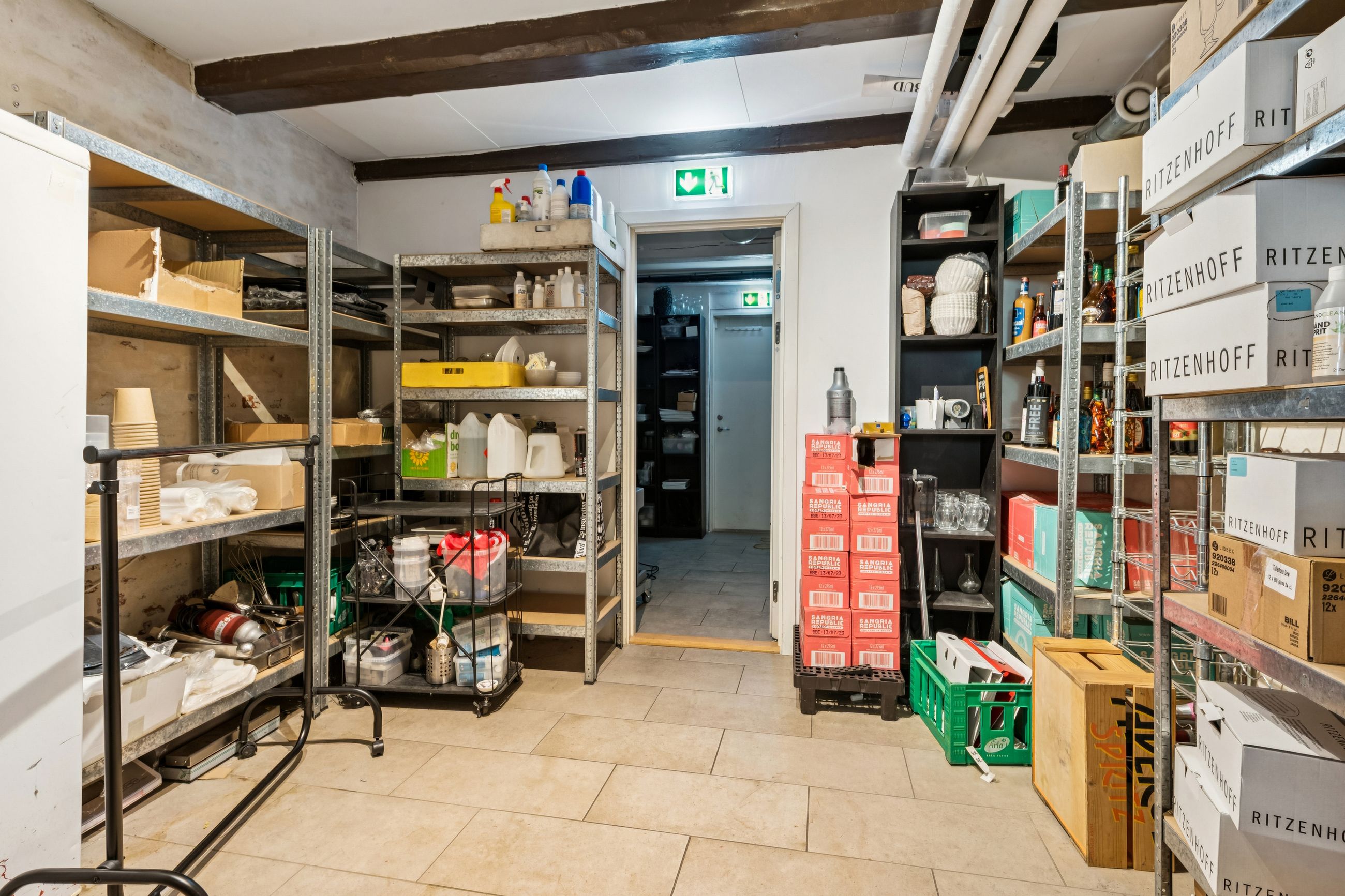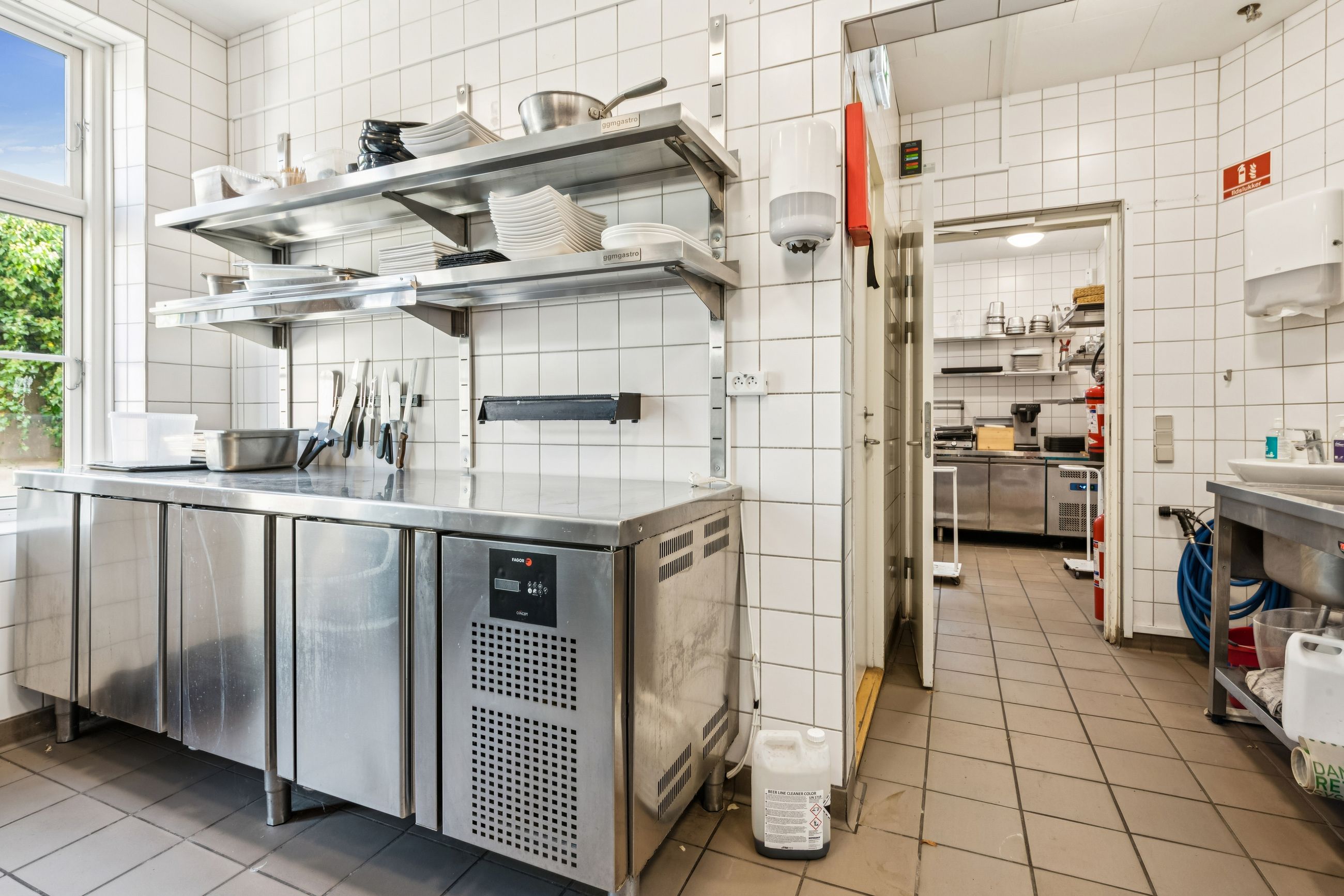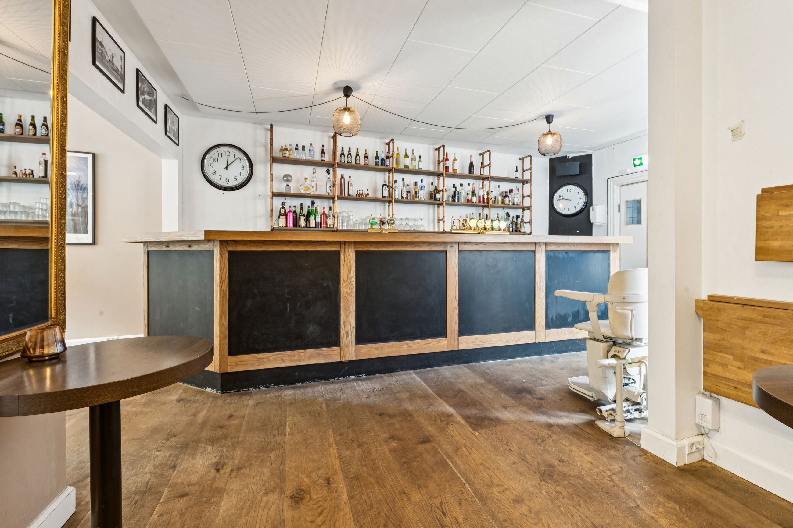 Stueetage (125 m²) med ca. 35 siddepladser, stor bardisk med kobberdetaljer, kaffestation og køkken. Kælderetage (115 m²) med yderligere 25 siddepladser, tre kundetoiletter og to rummelige lagerrum - ideelt til f.eks. private dining eller events. Derudover medfølger: