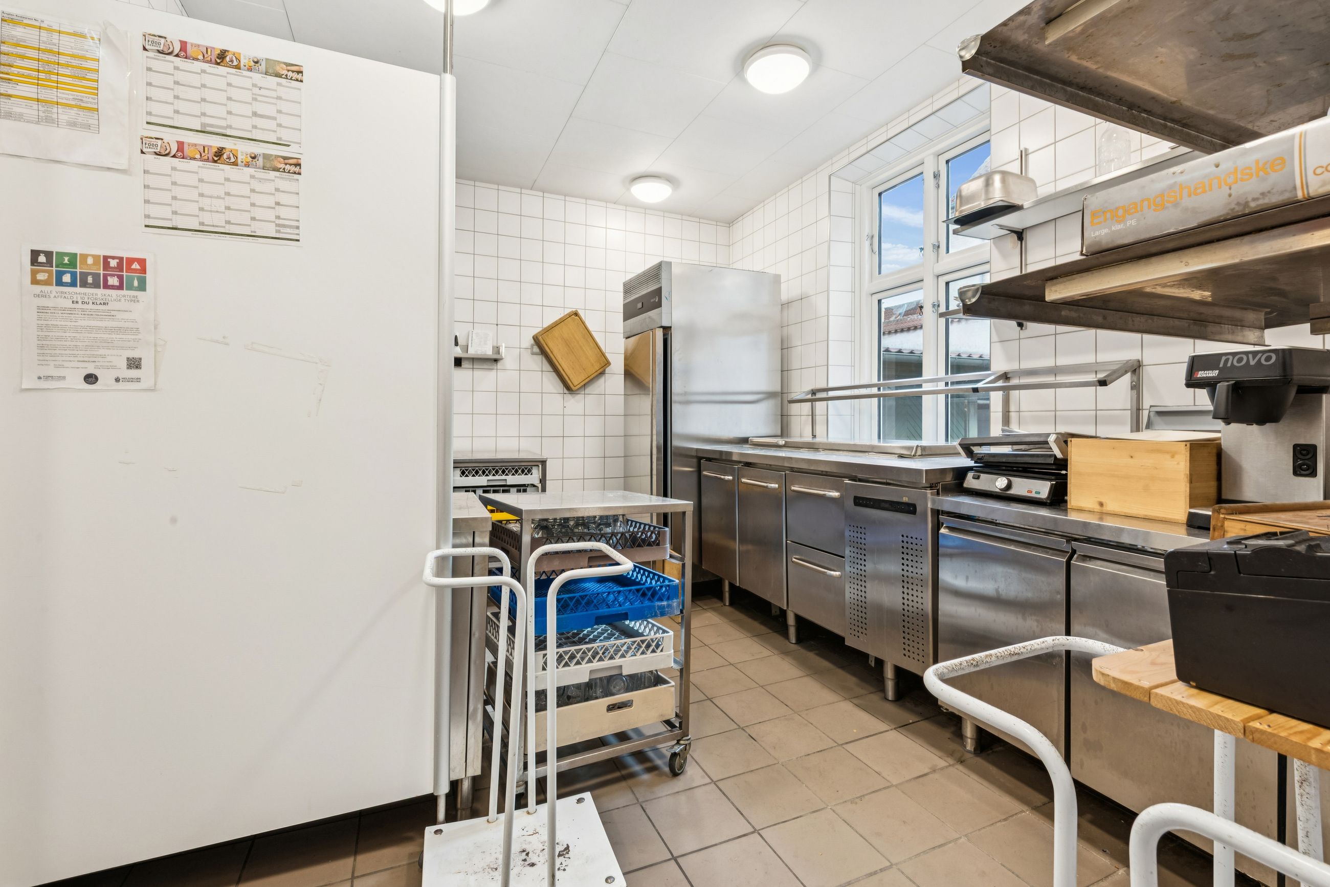 På Bjergegade 20 udbydes et indflytningsklart cafélejemål, der er fuldt udstyret og klar til drift fra dag ét. Lokalet er gennemført indrettet med alt nødvendigt inventar - herunder møblement, køkkenfaciliteter og bar - hvilket gør det muligt for en ny lejer at videreføre cafédrift uden større investeringer.