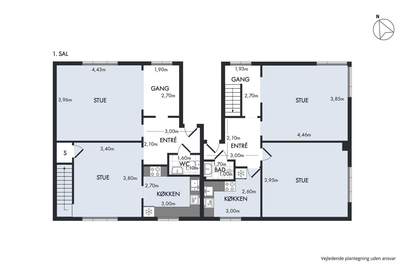 På Flynderborgvej 13A udbydes nu en rummelig og gedigen boligudlejningsejendom på 276 kvadratmeter. Ejendommen overtages fuldt udlejet, og den udgør således et fornuftigt køb for investoren. Ejendommen er opført i 1934 med et klassisk arkitektonisk udtryk, og dens 276 kvadratmeter huser fire veldisponerede lejemål, der allerede er fuldt udlejede samt stor kælder på 178 kvadratmeter. Du skal således ikke til at stå for alt det praktiske - det er der allerede sørget for - og i fremtiden vil det bestemt heller ikke blive svært at finde eventuelle nye lejere, for boligerne er alle veldisponerede, lyse og velegnede til en bred målgruppe. Foruden de fire separate boliger råder bygningen over en kælderetage samt et udeareal, hvor der er mulighed for bilparkering såvel som afslapning i solen. Prikken over i'et er uden tvivl den attraktive beliggenhed på en af Helsingørs centrale adresser med gåafstand til grønne arealer såvel som kyststrækningen. Butikslivet ligger blot 700 meter fra hoveddøren, stationen ligger 900 meter væk og det maritime havneliv ligger i samme distance. Det samme gør sig selvfølgelig gældende for det velassorterede handelsliv, de mange restauranter og kulturelle tilbud - fra adressen er der selvfølgelig heller ikke langt til nogen af hverdagens fornødenheder såsom dagligvarebutikker, uddannelsesmuligheder eller motorvejen i bil.