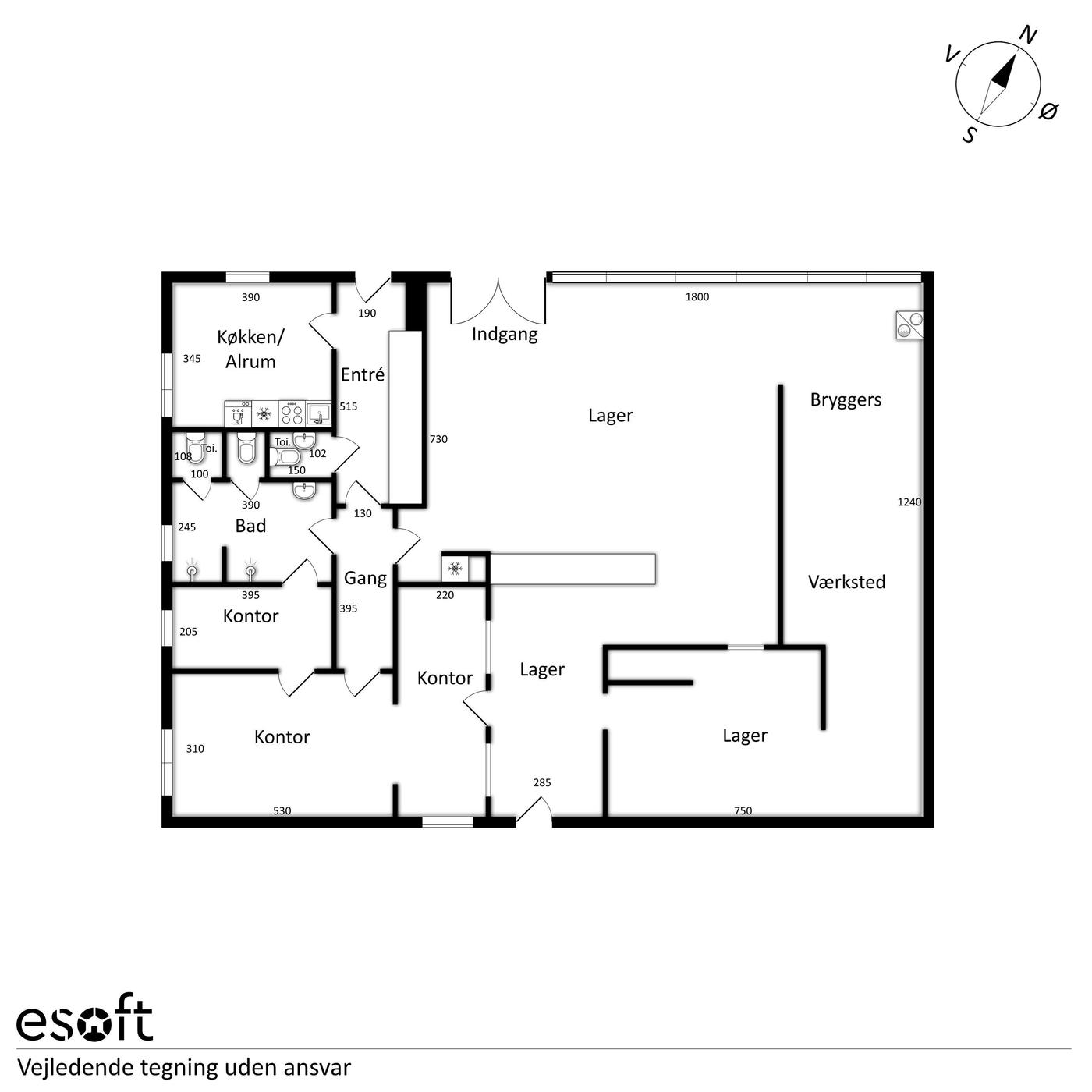 Fint kontor lejemål med lager/værksted på i alt 220 m2. Lejemålet er beliggende i eftertragtet industrikvarter i Helsinge med god infrastruktur og er nemt tilgængeligt. Lejemålet består af 3 kontorer samt toilet med bademulighed. Derudover køkken/frokoststue. Lagerdelen er i dag opdelt med flere rum - men kan super nemt ændres.