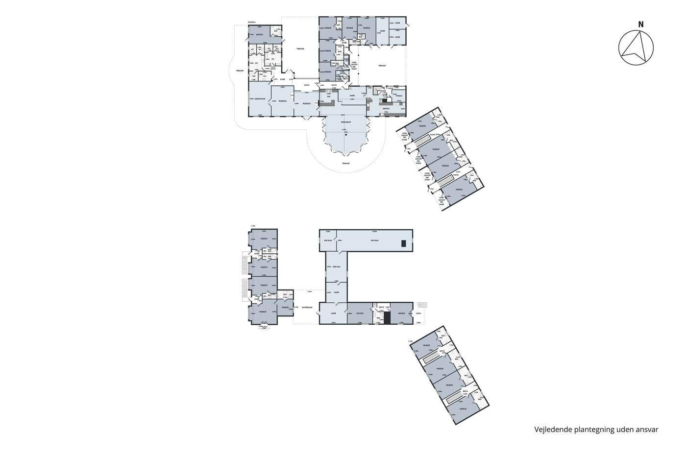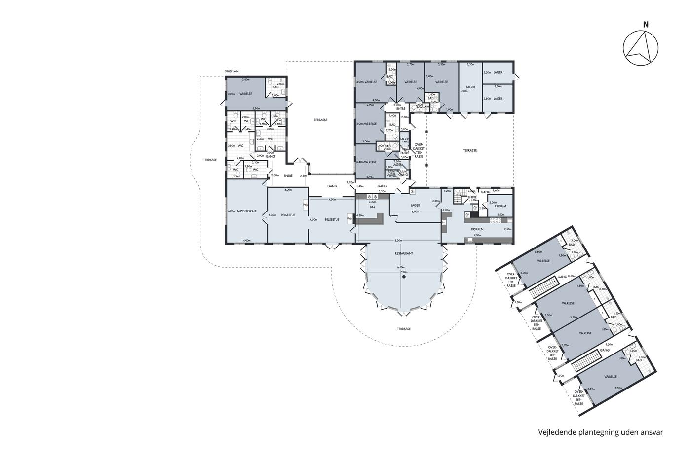 alle med eget badeværelse med bad og toilet. Restauranten råder over eget køkken
