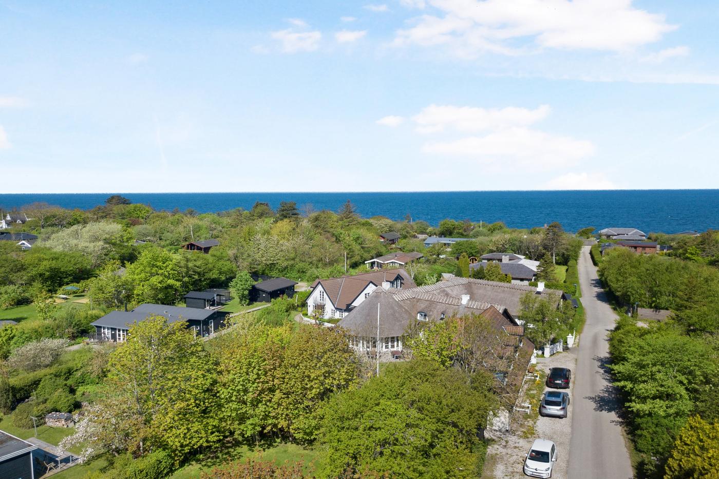 i Nordsjælland, ca. 200 meter fra Vejby Strand. Ejendommen består af to bygninger,