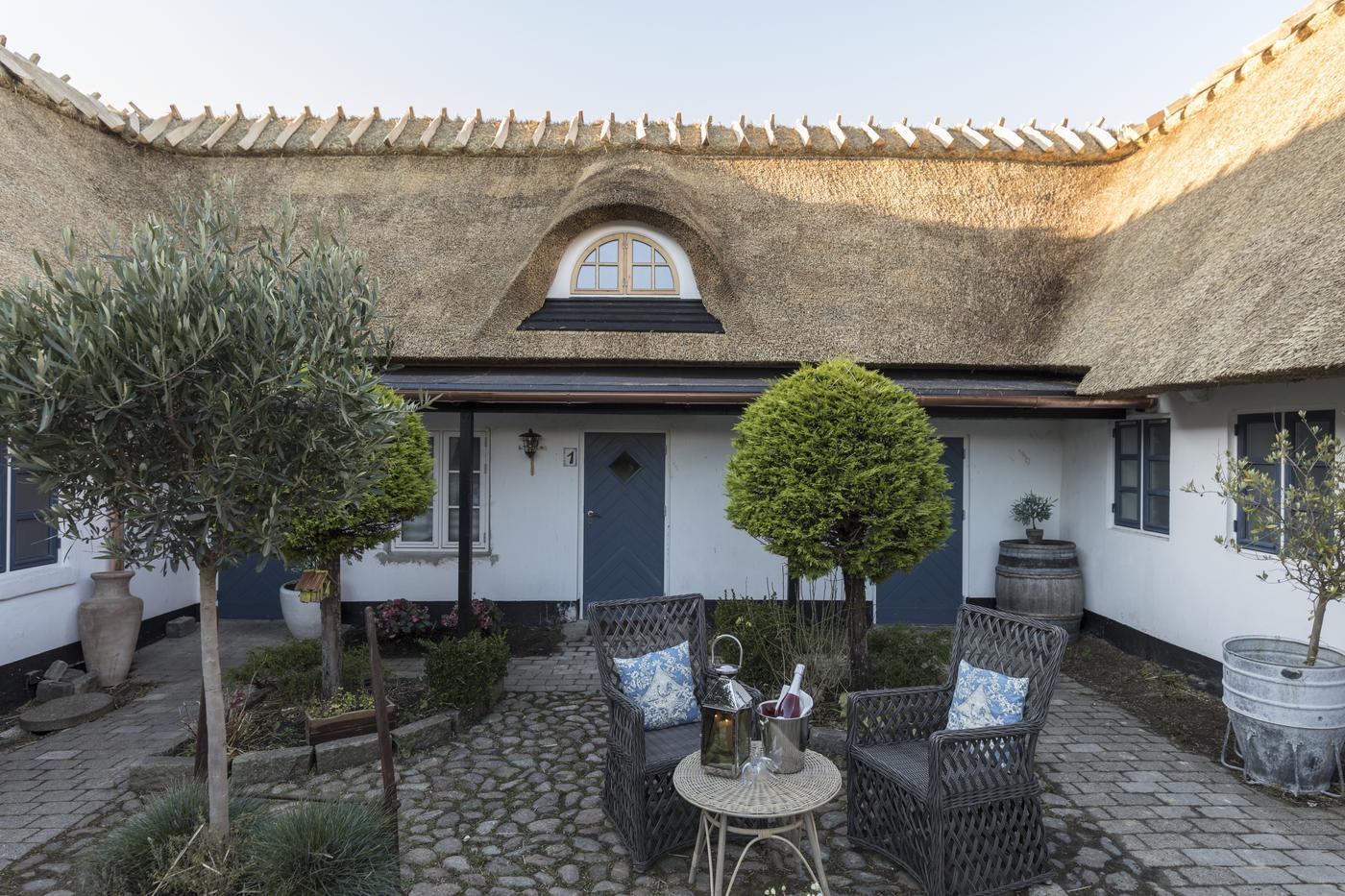 nordlige fløj er opført i 1990. Det karakteristiske stråtækte tag på hovedbygningen