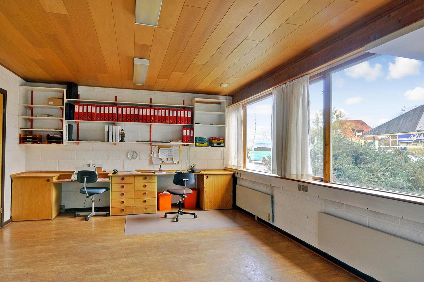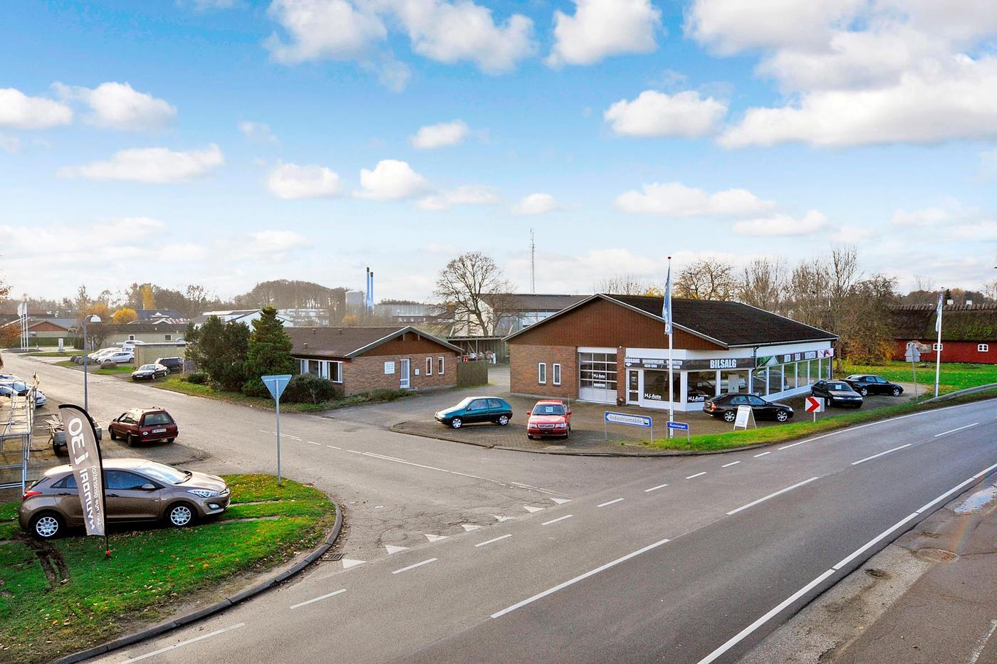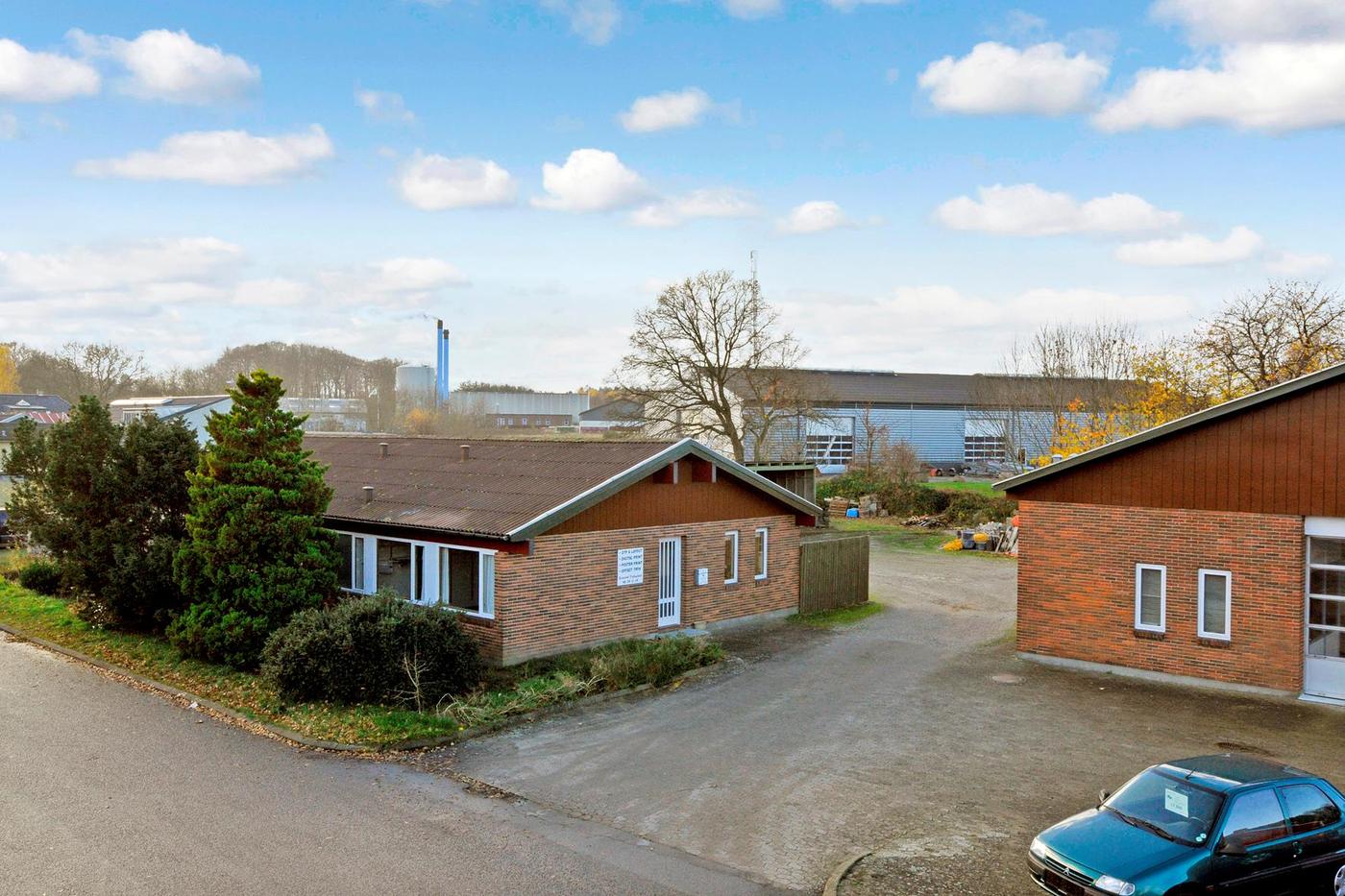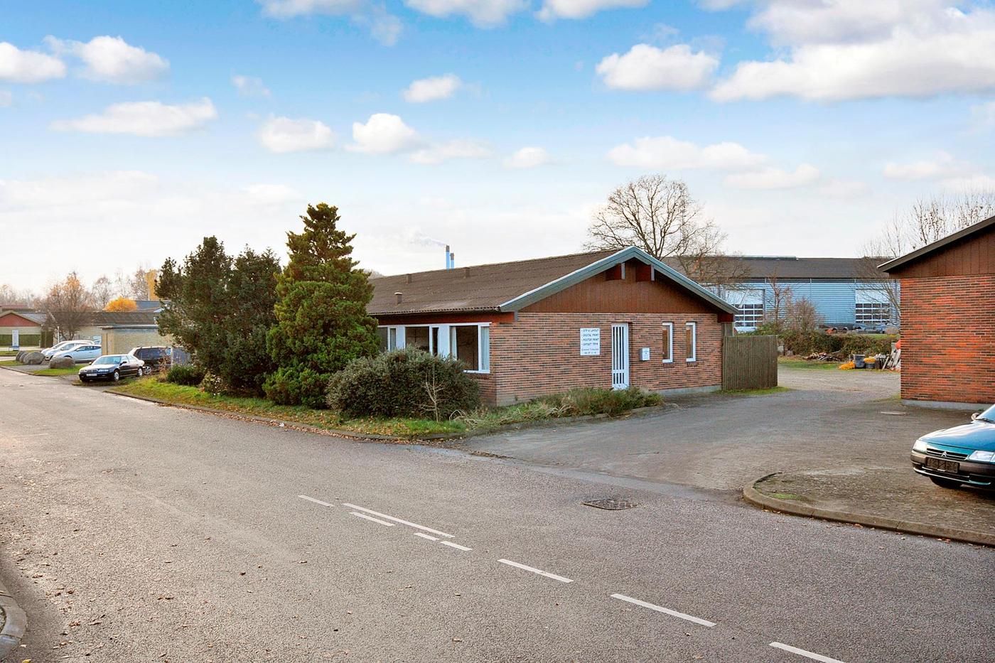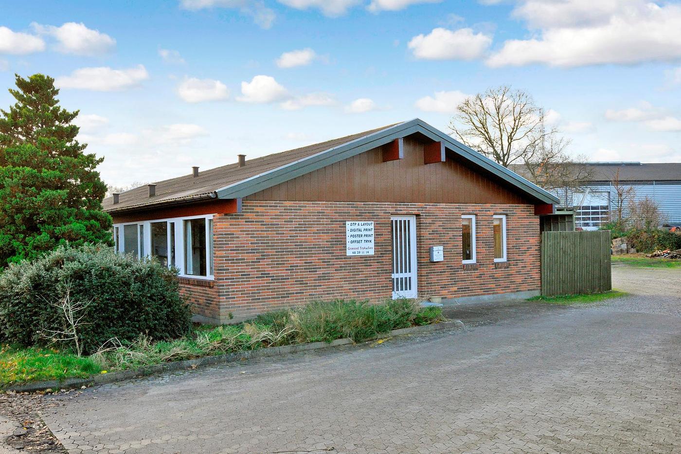 Ejendommen er bygget i henholdsvis gasbeton og røde mursten. Den rummer i alt 202 kvadratmeter, som byder velkommen med et rummeligt indgangsparti, der til venstre glider ud i et lagerlokale og til højre det store værksted med højt til loftet, ovenlysvinduer, et langstrakt vinduesparti mod nord og en bred, elektrisk port mod syd. Værkstedet har i sig selv et areal på næsten 100 kvadratmeter. Mellem værkstedet og kontoret, som også nyder godt af egen indgang, ligger et toilet, et flisebadeværelse med separat bruseniche samt et personalerum med et mindre køkken, vask og spiseplads.