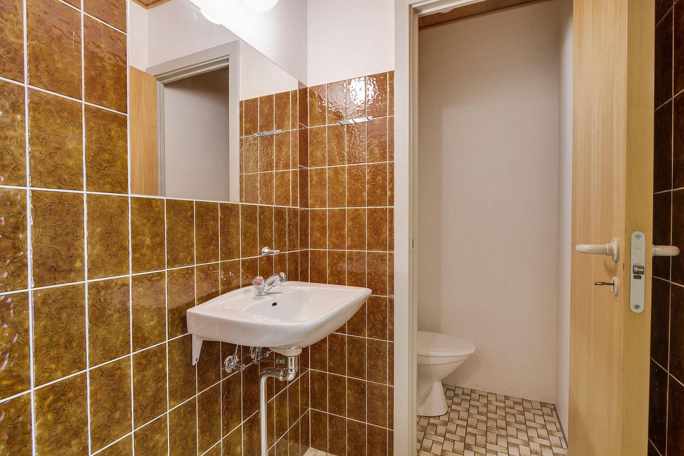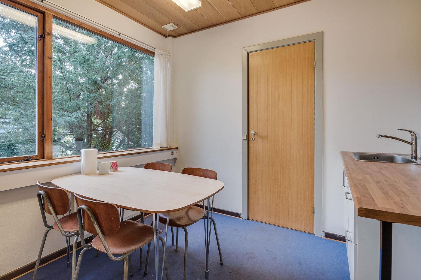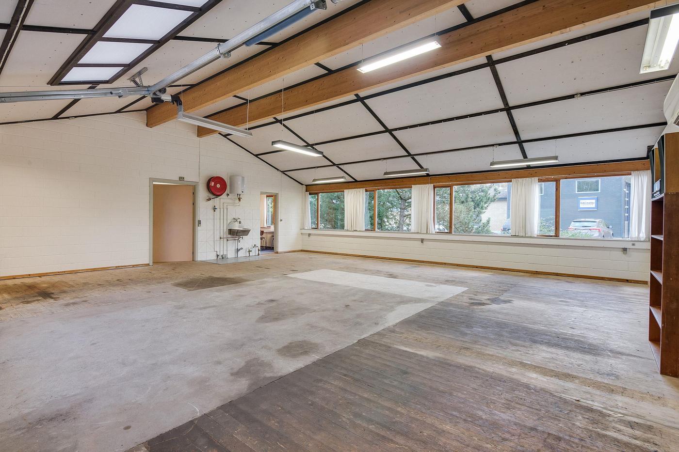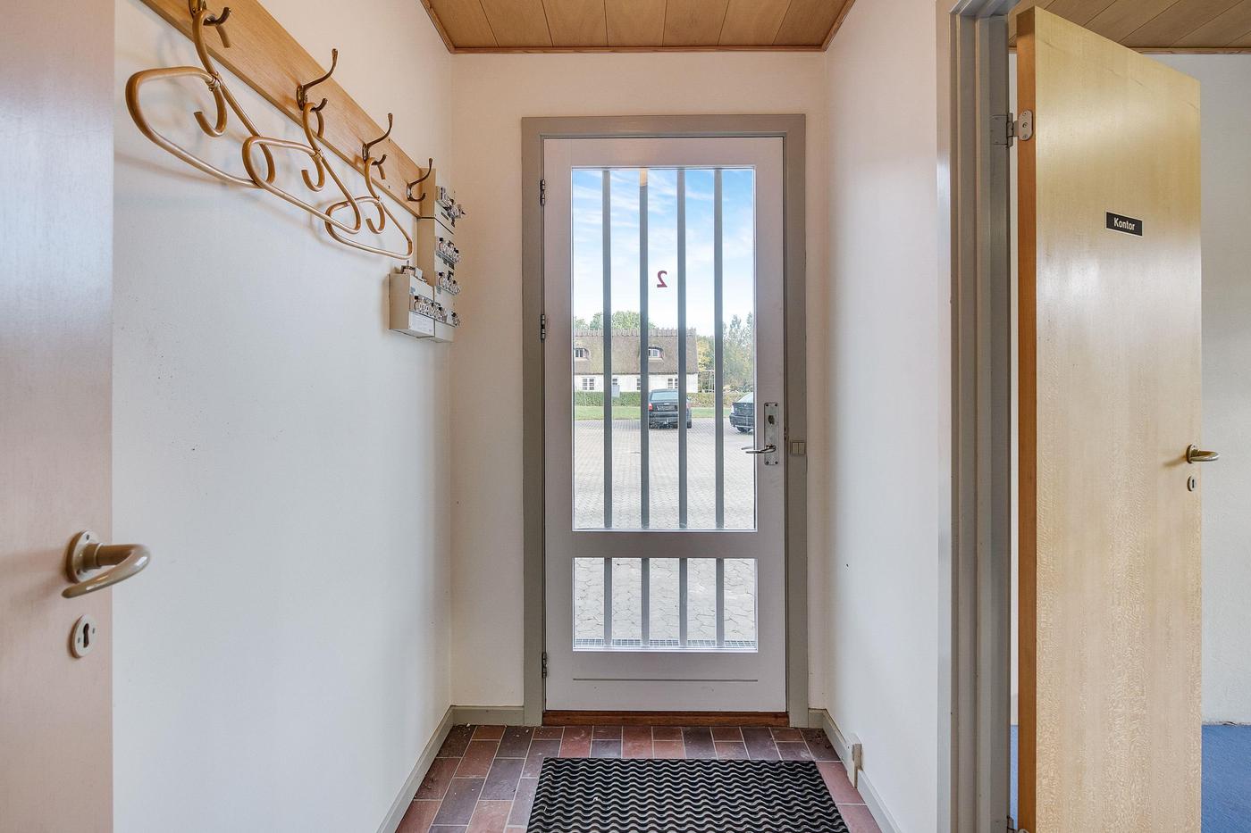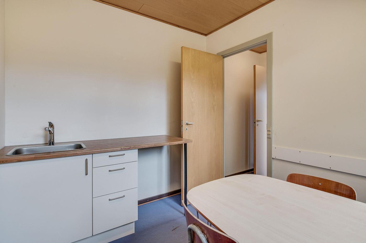Ejendommen er bygget i henholdsvis gasbeton og røde mursten. Den rummer i alt 202 kvadratmeter, som byder velkommen med et rummeligt indgangsparti, der til venstre glider ud i et lagerlokale og til højre det store værksted med højt til loftet, ovenlysvinduer, et langstrakt vinduesparti mod nord og en bred, elektrisk port mod syd. Værkstedet har i sig selv et areal på næsten 100 kvadratmeter. Mellem værkstedet og kontoret, som også nyder godt af egen indgang, ligger et toilet, et flisebadeværelse med separat bruseniche samt et personalerum med et mindre køkken, vask og spiseplads.
