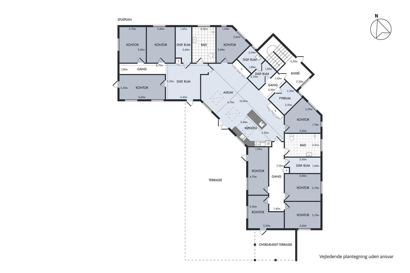 Ejendommen har tidligere fungeret som børnehave og senest som ungdomsboliger. Ønsker I det større og med flere muligheder, kan I opføre yderligere bebyggelse til bolig. Bygningen indeholder 261 veldisponerede kvm i form af gode værelser, som bliver fordelt ud på to fløjgange. I hver fløj er et toilet i gavmilde størrelser, og stueplan bliver afsluttet af et stort opholdsareal i hjertet af bygningen. Her er ovenlys fra tre vinduer, hvor den åbne forbindelse mellem køkken og opholdsrum understreger luftigheden, og med direkte udgang til et sydvestvendt terrasseareal fungerer planløsningen perfekt. Ydermere hører en kælder med et stort rum med, som giver mange muligheder.