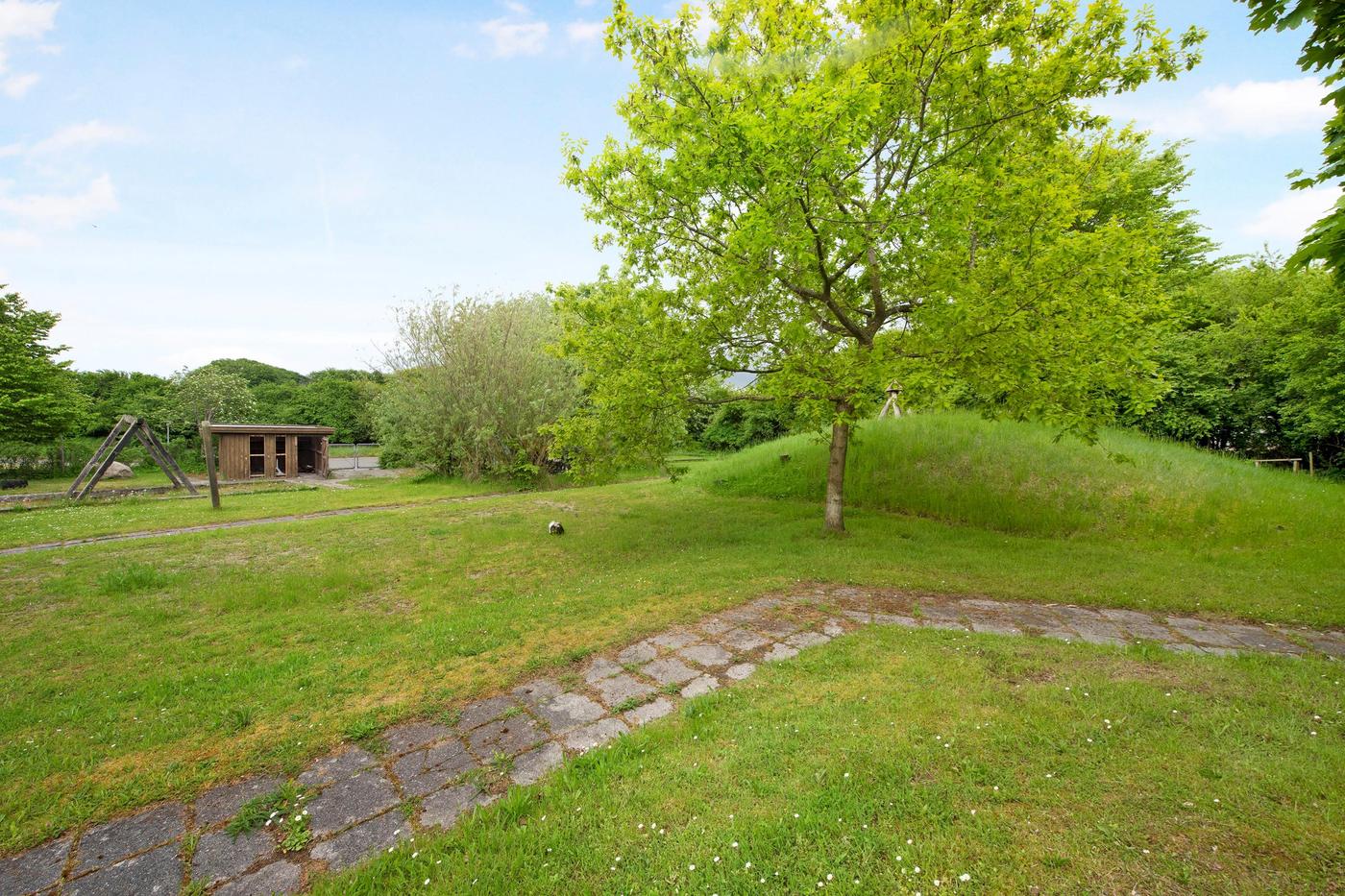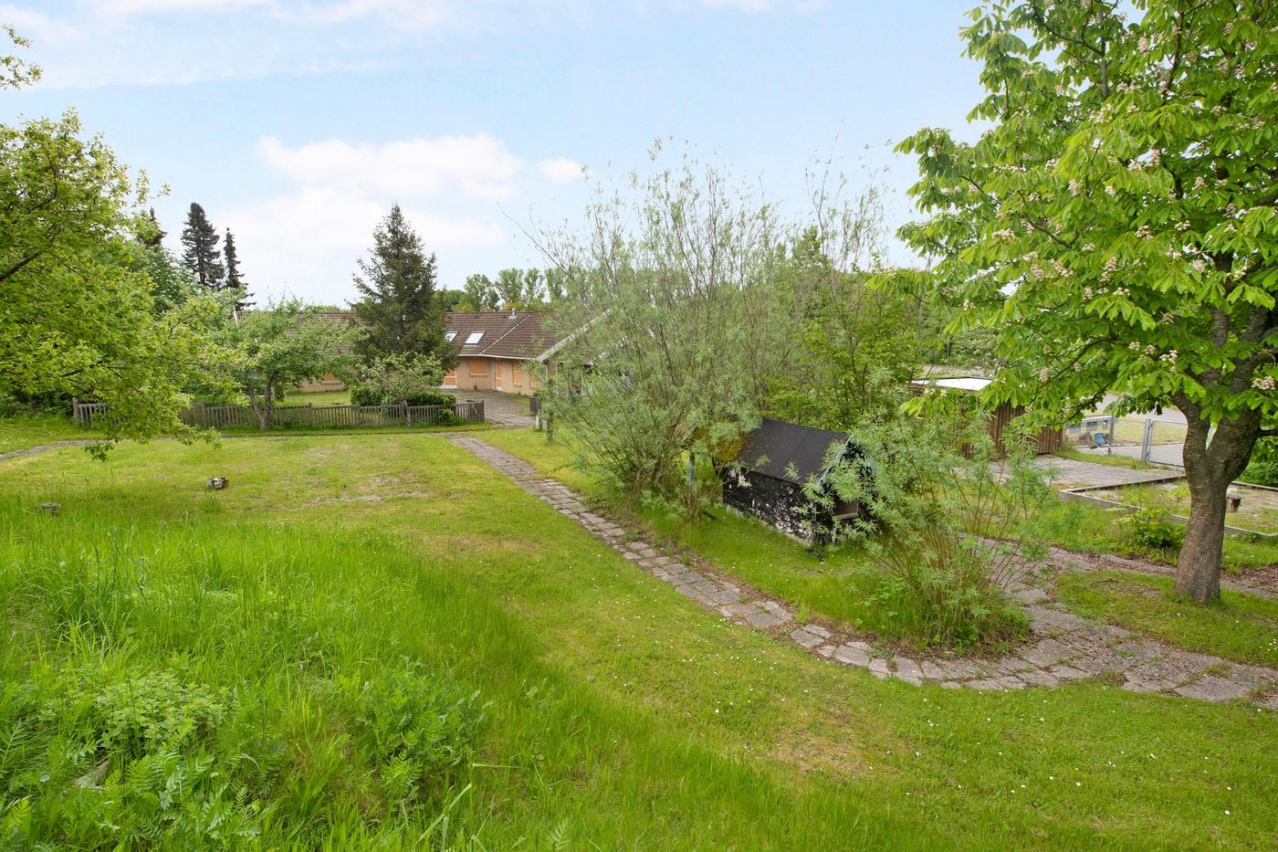 Grunden på 2800 kvadratmeter lader fint mere bebyggelse skyde op, og lige nu har arealerne græsplæner med små stier og enkel indrammende bevoksning, så det fremstår privat. Her er derfor gode muligheder til både større og mindre projekter, og vejen ind til ejendommen er blind med en fordelagtig vendeplads.