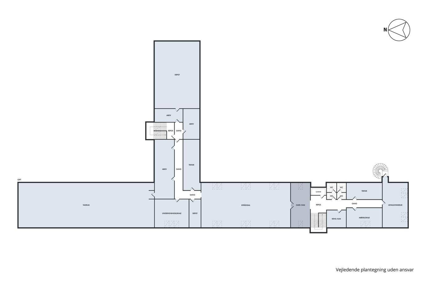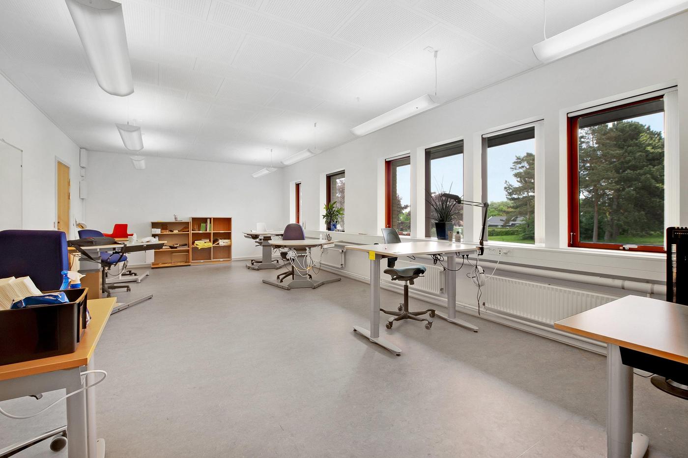 Det udbudte areal består af delområder A (ca. 9.462 m²) og B (ca. 9.659 m²) og udgør samlet ca. 19.121 m2. Grunden har et stort græsareal og frodige beplantninger, så man har et fint, grønt view inde fra bygningen. Derudover er der et flisebelagt terrasseområde med borde-bænkesæt, så man kan tage en pause udendørs.