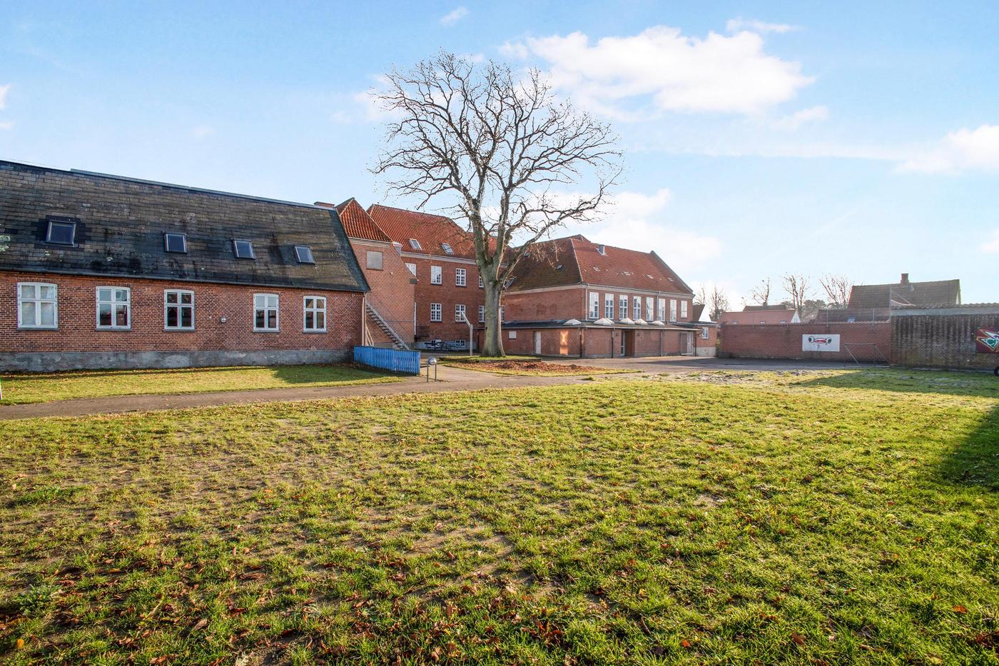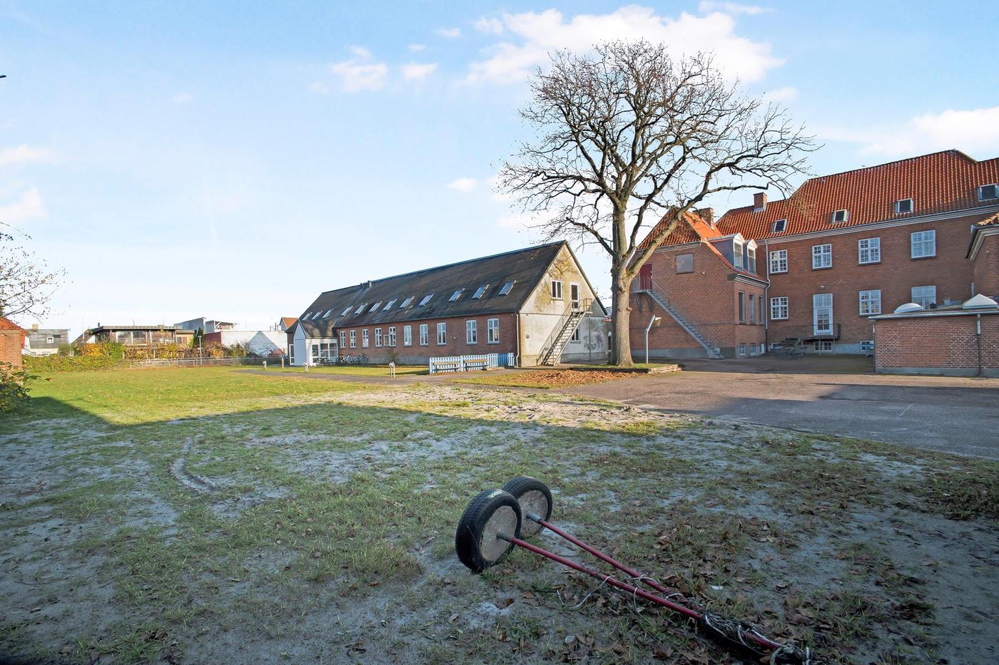 Ejendommen er opført/ombygget i perioden 1867-2000 og fordeler sig over flere bygninger, der både har kælderetager, stueplan og 1. sal, hvorfra der er udsigt, hvilket er en attraktiv faktor for dem, der flytter ind, når skolen er omlagt til boliger. Den ene del er nem at opdele grundet den smalle bygningsdybde, og gennemgående for alle delene er lysindfaldet, de store rum og den gode plads, der giver rig mulighed for at tilpasse planløsningerne og skabe nogle boliger, hvor rummelighed, moderne komfort og lysindfald blot er nogle af nøgleordene. Der kan ydermere punktvis opnås godkendelse til at anlægge ekstra etager til det eksisterende byggeri. For ejendommen er gældende en maksimal bebyggelsestæthed på 80%, samt der skal være et friareal svarende til min. 25 % af boligetagearealet og et areal til parkering.