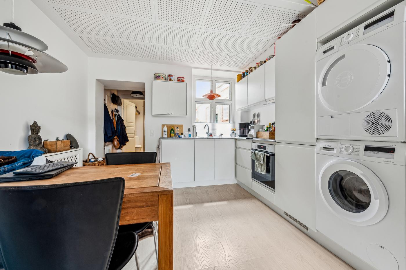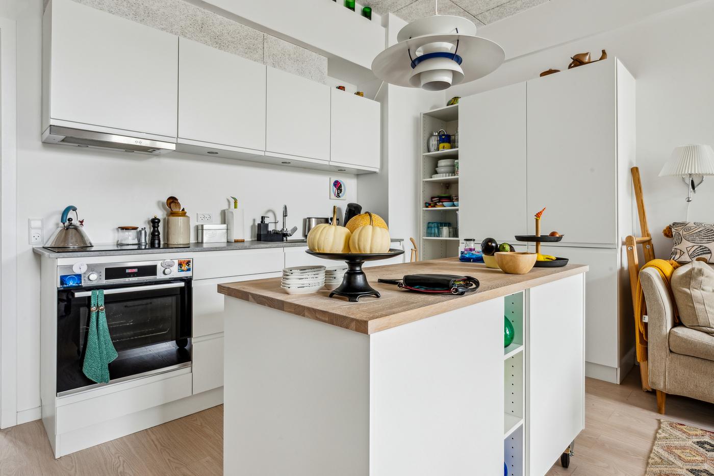 Alle lejligheder er opført med tidssvarende materialevalg, herunder nye køkkener og badeværelser, flotte trægulve og energivenlige installationer. Nogle boliger har udsigt over det grønne gårdrum eller byens tage, mens andre har adgang til fælles opholdsarealer, altaner eller grønne udearealer. Ejendommen fremstår som en helstøbt boligbebyggelse, der kombinerer historisk karakter med moderne komfort.