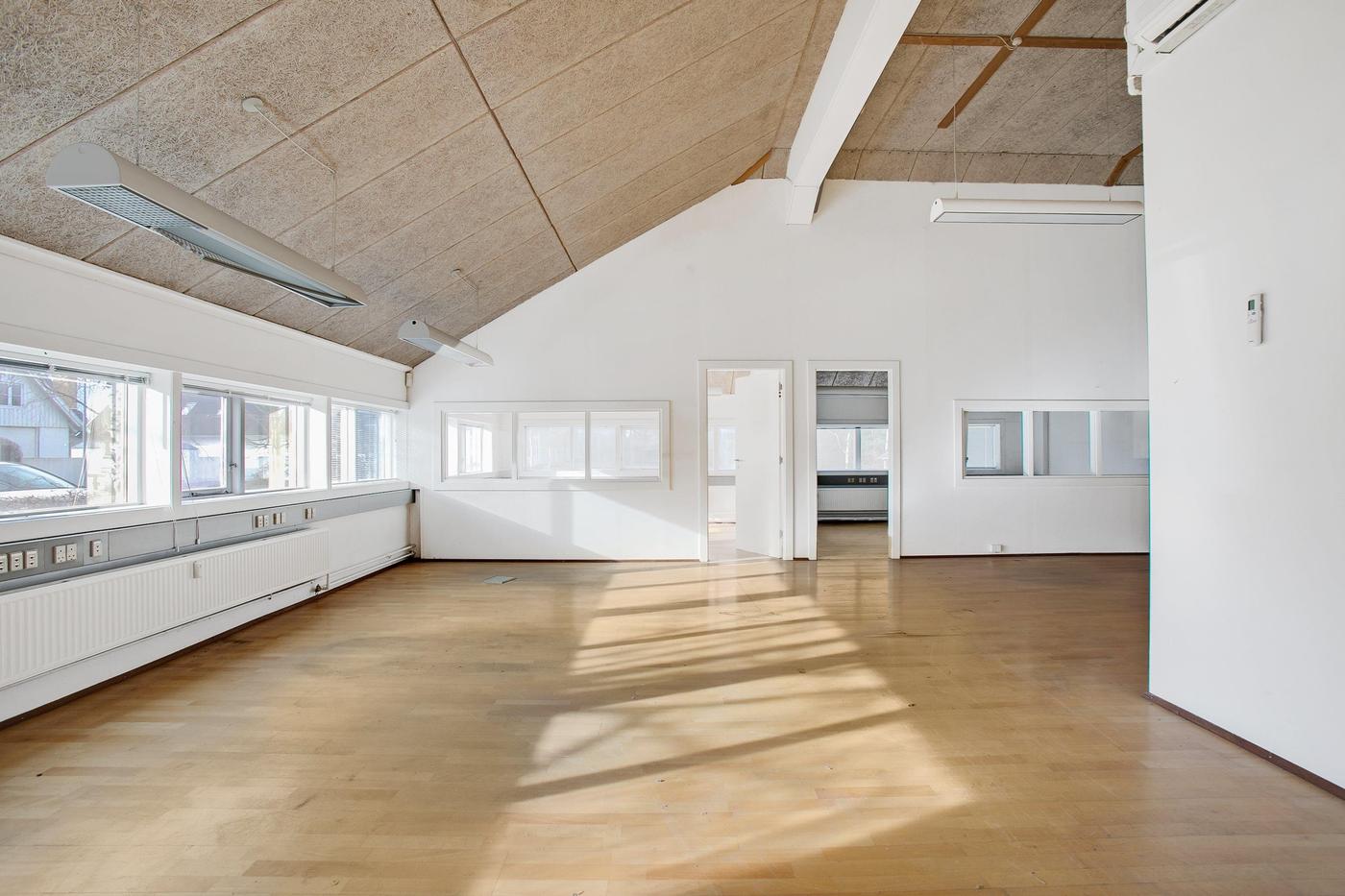 Foran erhvervet mødes du af gode parkeringsmuligheder for ansatte og kunder, ligesom der er mulighed for af- og pålæsning, hvilket må siges at være et stort plus. Gennemgående for alle rum er, at de er lyse, regulære og indretningsvenlige, og derfor egner erhvervet sig også til en bred vifte af virksomheder. Her er nemlig mere end 20 kontorlokaler, store haller med plads til produktion og lager til opbevaring.