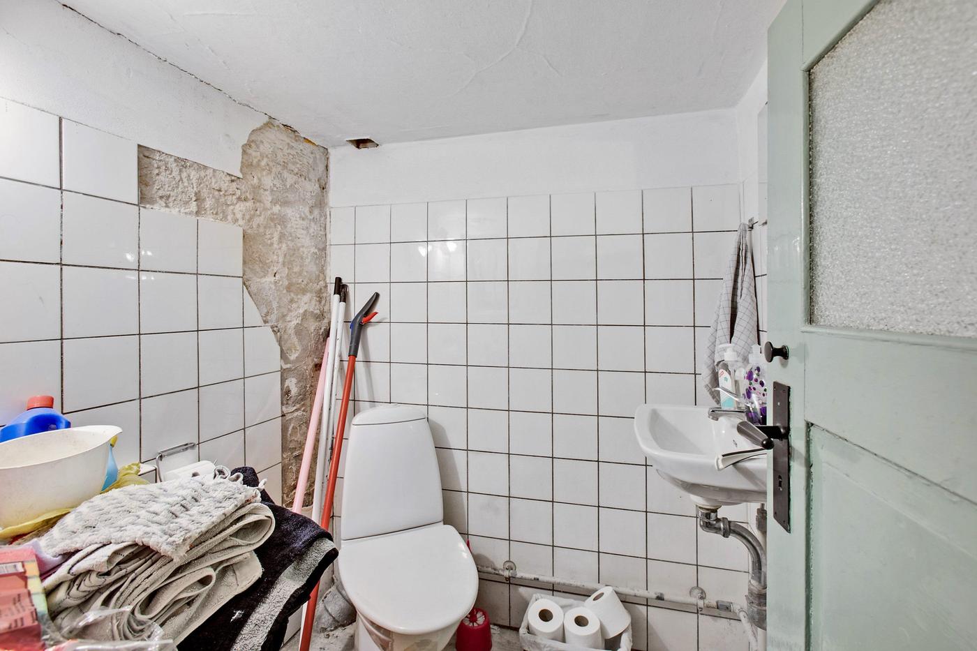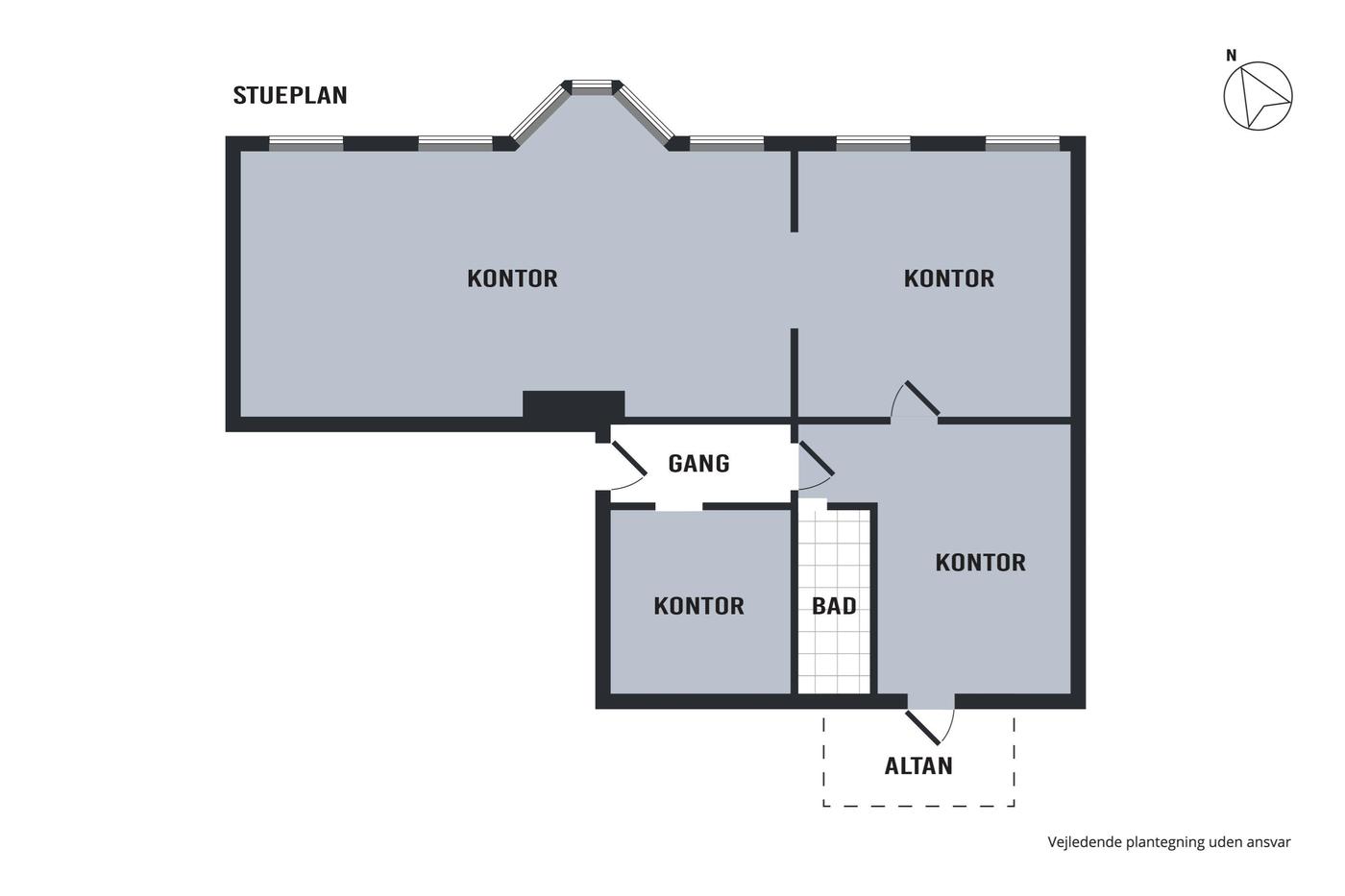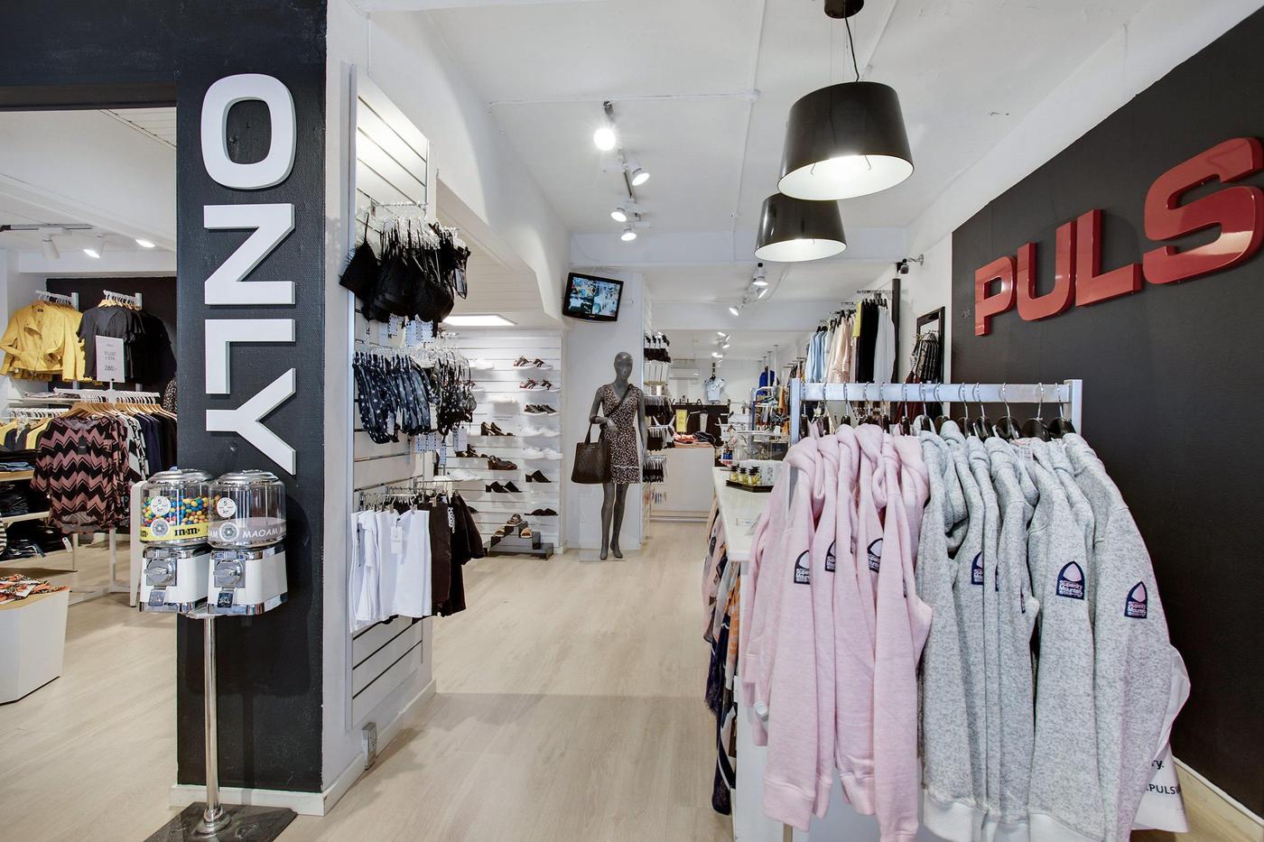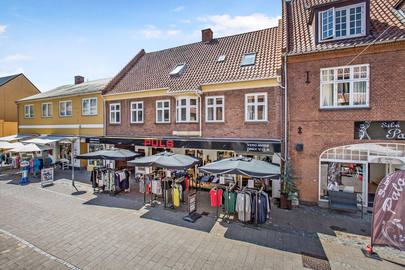 Erhvervslokalet har en stor og bred glasfacade ud mod gågaden, hvor der også er plads til at have varer stående. I øjeblikket benyttes lokalet som tøjforretning, hvorfor det er indrettet med prøverum, skoreoler og stor betjeningsdisk. I kælderen finder man et lagerrum med kontorplads og et personaletoilet.
