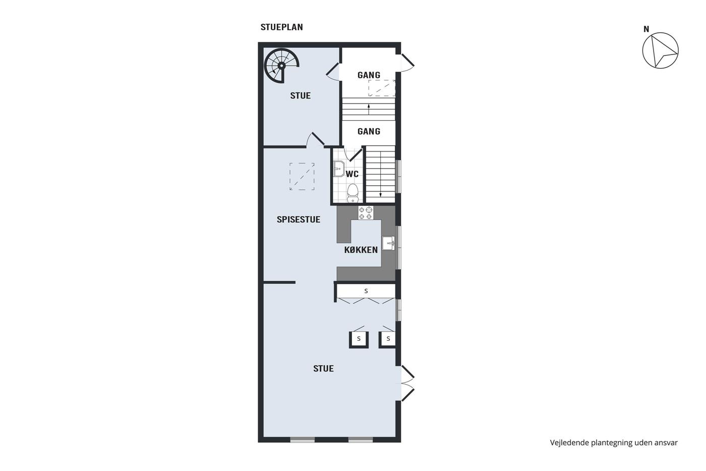 Gågaden i Frederiksværk er et hyggeligt handelsstrøg med både kædebutikker og specialforretninger, samt caféer, biograf, slagter og flere dagligvarebutikker. Derfor er der mange mennesker, der kommer og handler i butikkerne i og omkring gågaden. Der er mange parkeringspladser tæt på, blandt andet langs kanalen, så man kan parkere ganske få minutters gang fra ejendommen.