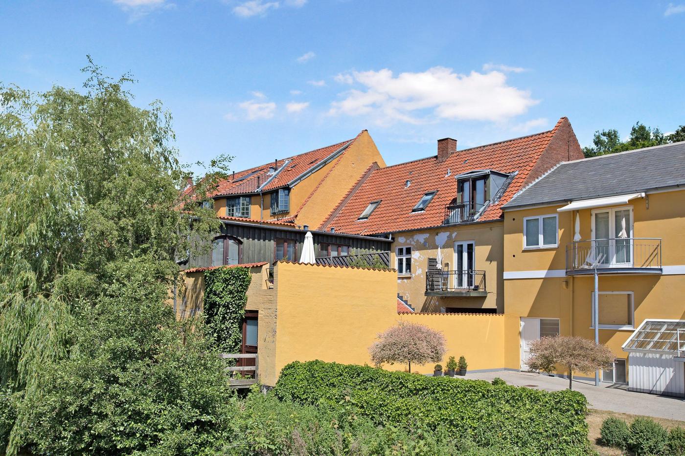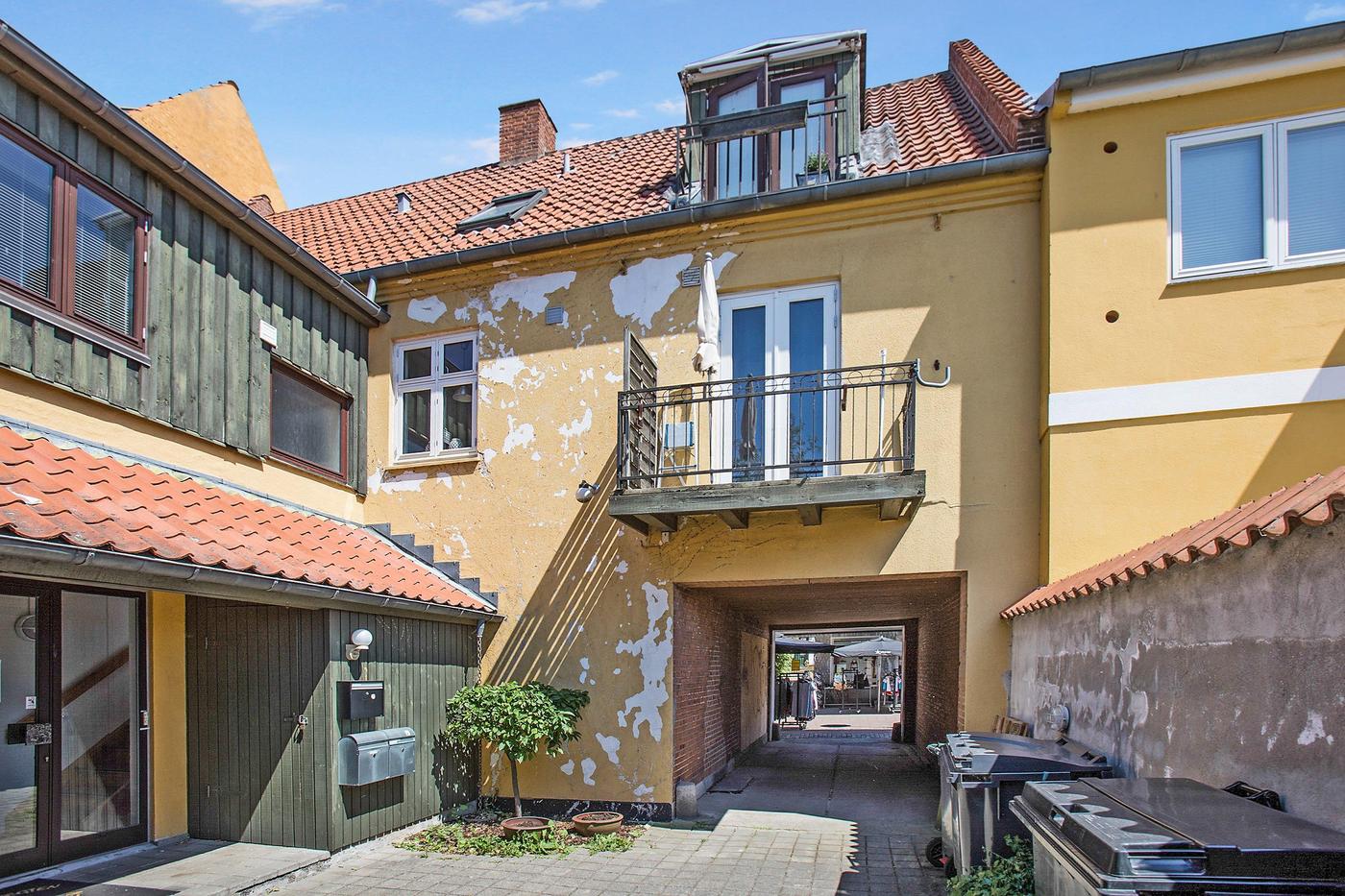 De to lejligheder ovenpå erhvervsdelen har begge altan med udsigt til kanal og Frederiksværks tage og ligger afskærmet fra gågadens besøgende, da man skal ind igennem en port, hvor man finder opgangen til lejlighederne. Der er desuden parkering i baggården.