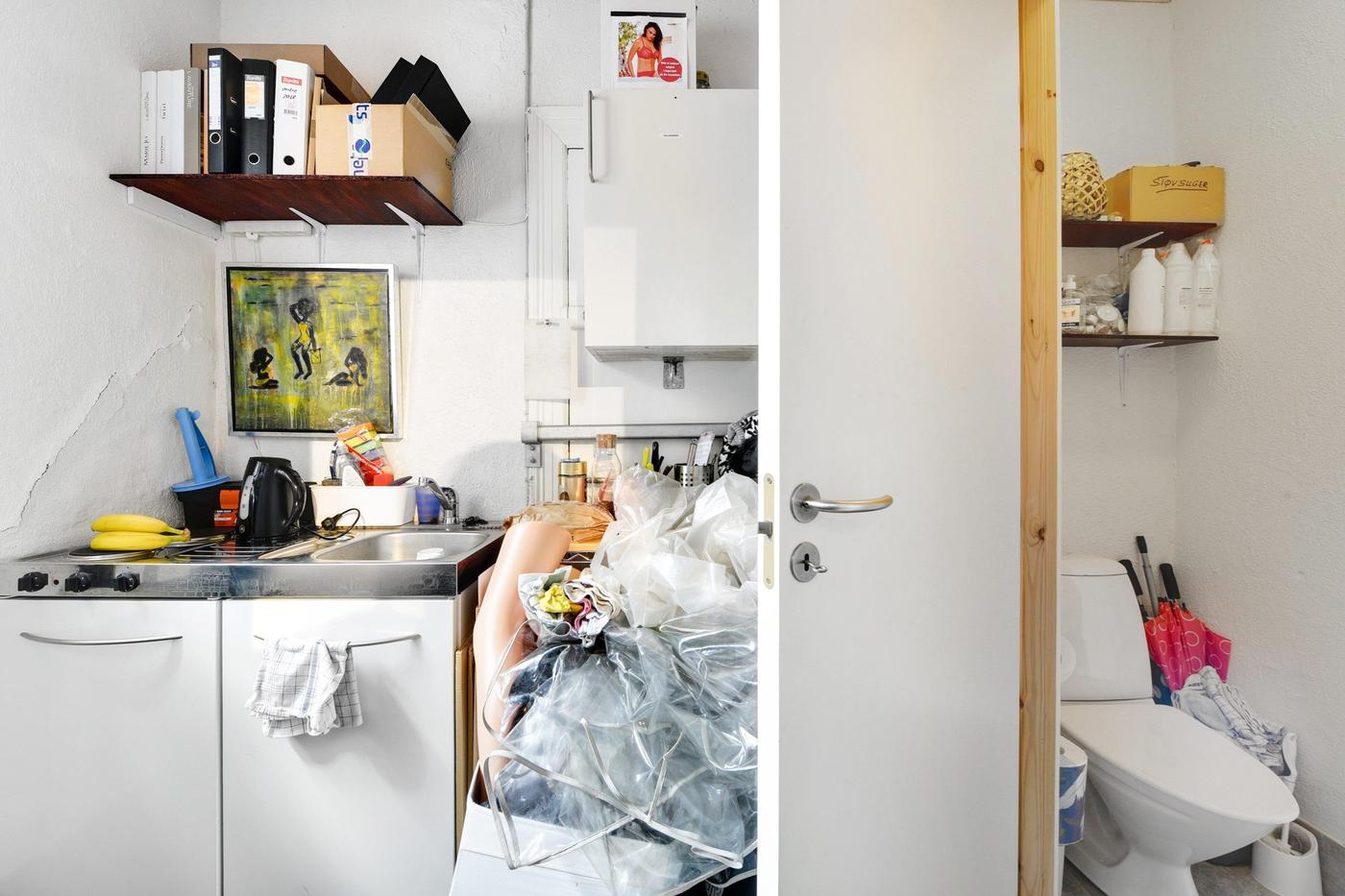 Kunderne ankommer og bydes straks velkommen i det store, åbne butikslokale, hvor der er plads til en betjenings-ø med kasseapparat, et prøverum og en masse hylder og stativer med varer. For enden er der mulighed for at etablere et lille lagerrum i det tilstødende butikslokale, og ellers rummer forretningen også et personaletoilet og et fint lille køkken, hvor kaffen kan brygges og frokosten holdes frisk og kølig.