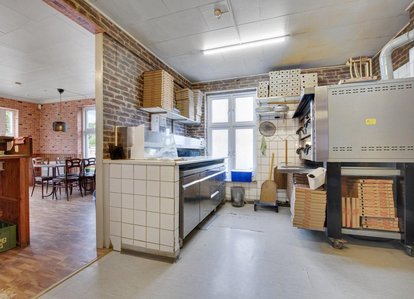Når vi tager et nærmere kig på Byvej 3A, præsenteres vi for en fuldt udlejet investeringsejendom, der fremstår i virkelig flot stand. Erhvervsdelen fungerer pt. som pizzeria med en god og funktionel planløsning, og de to boliger er naturligvis også lyde, indbydende og funktionelle. Denne ejendom ligger tilmed på en af byens mest centrale adresser, og der er derfor nem og hurtig adgang til alt, hvad Ølsted tilbyder.