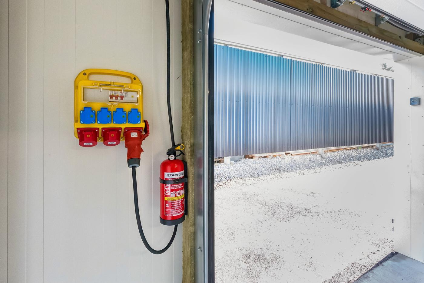 Hvert lejemål er udstyret med egen eltavle med både 4 x 230 V og 2 x 420 V installationer. Der er installeret automatisk tænd/sluk af belysning samt udendørsbelysning ved enhederne. Af hensyn til sikkerheden er der desuden opsat brandslukker i alle rum.