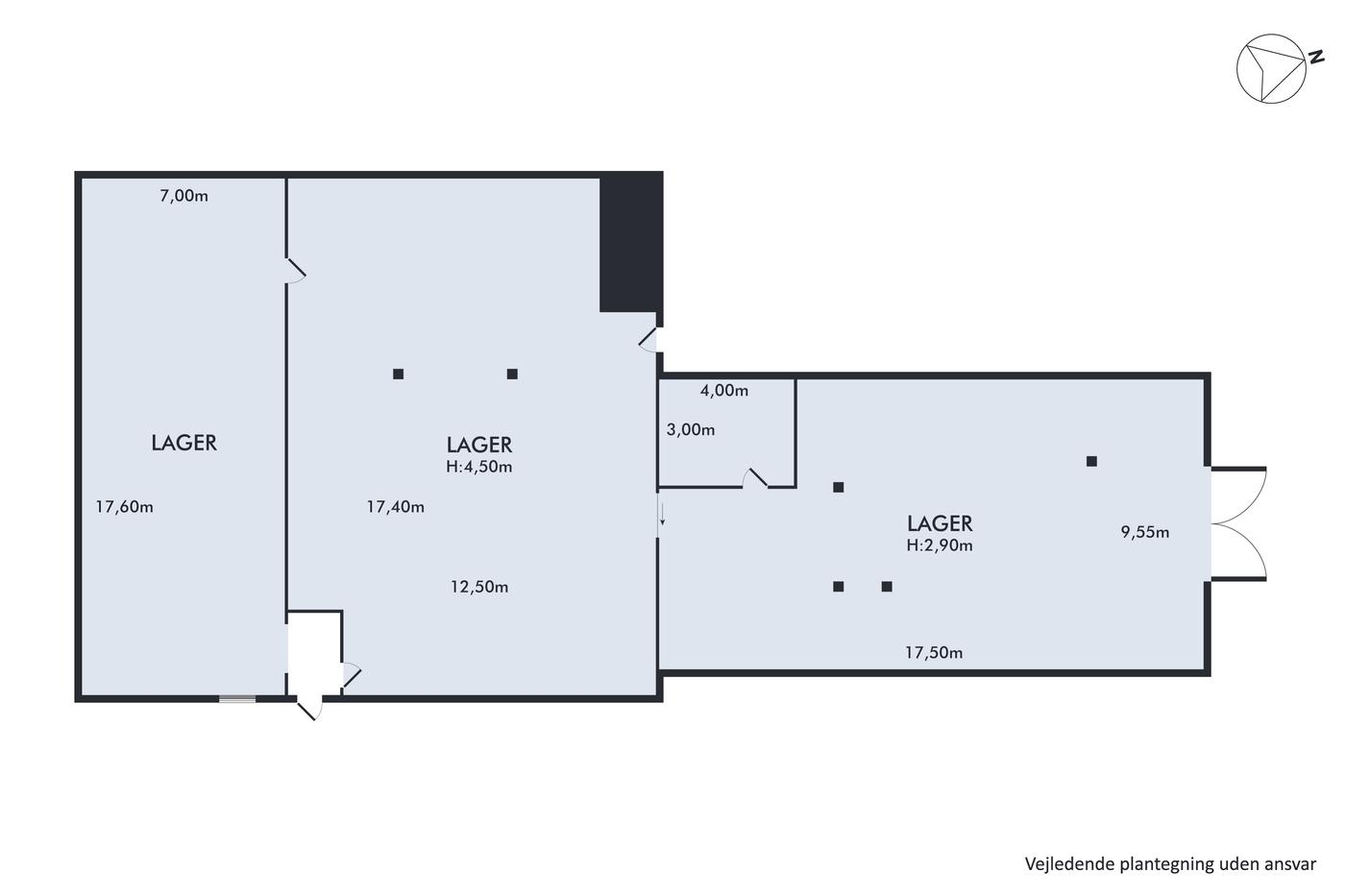 Planløsningen er meget simpel og lige til at gå til, for her får I glæde af et stort og praktisk lager, som kan rumme alt det, I har brug for. Den dertilhørende port gør det kun nemmere at få tingene både ind og ud til at blive fragtet videre rundt i landet; og da lokalet er yderst velholdt, kan arbejdsdagen starte næsten med det samme.