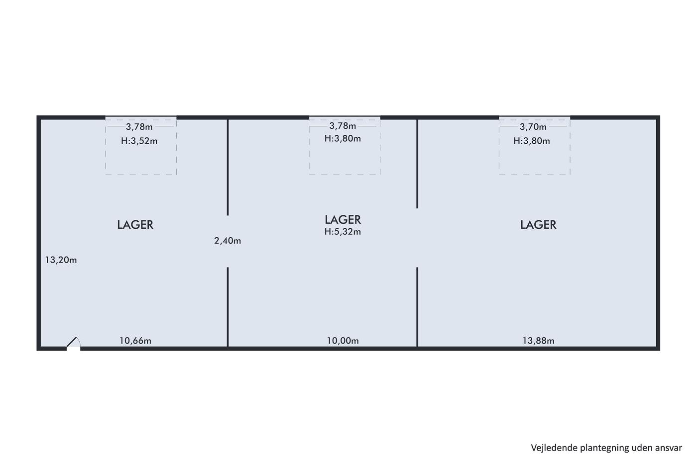 Vi har fornøjelsen af at udbyde et godt og velholdt lejemål i pæn stand, der udover at rumme masser af potentiale også byder på et dejligt naturlandskab i nærområdet. Den mellemstore erhvervsdrivende lejer får her mulighed for at sætte sig præg på et funktionelt og praktisk lager, som kan anvendes alt efter behov og formål. Lejemålet kan eventuelt opdeles.