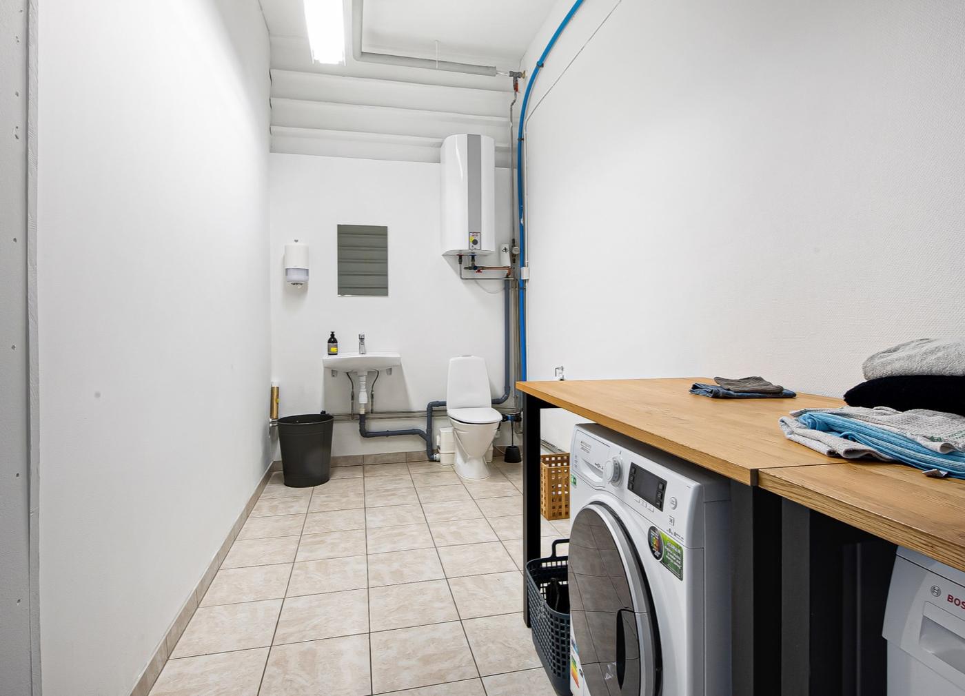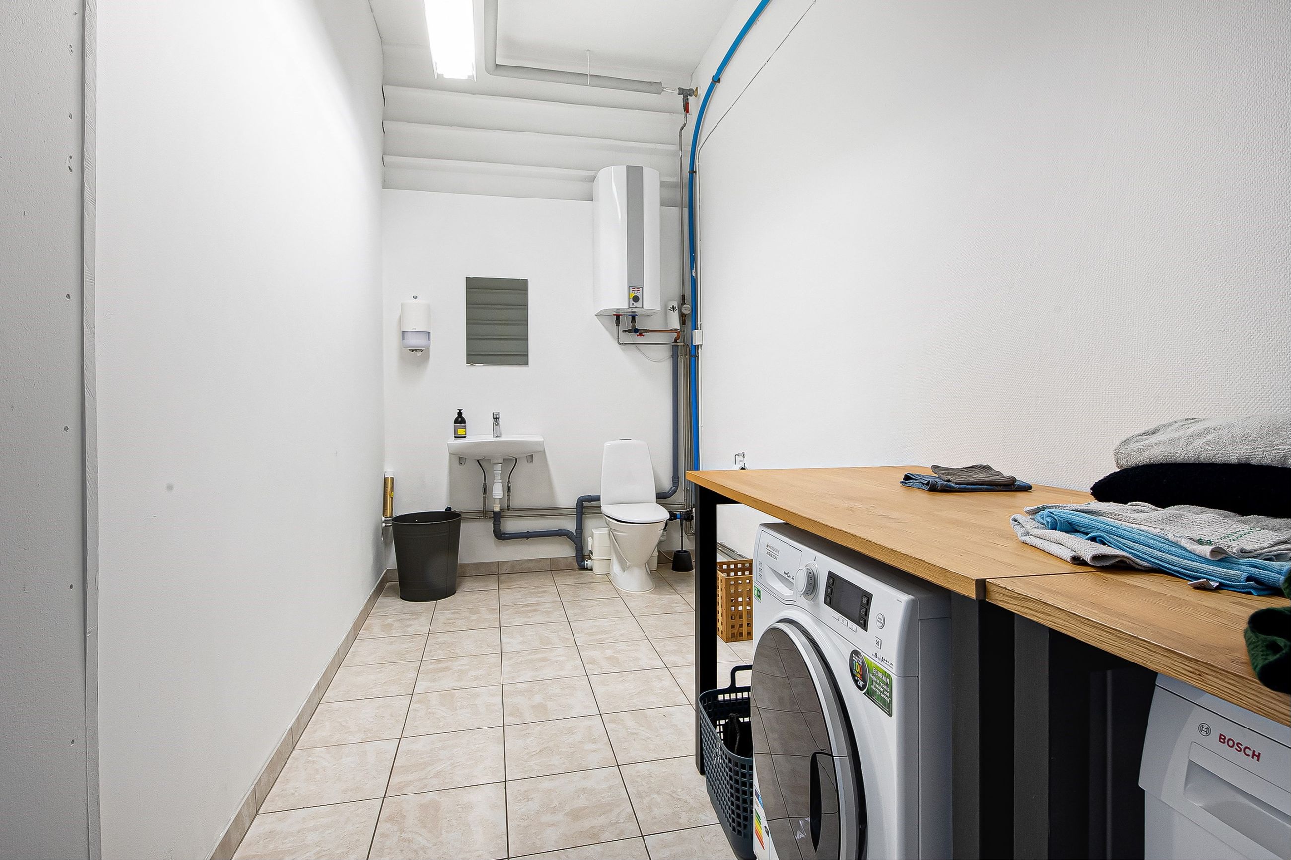 Der er stor toilet og der kan nemt etableres bla. vaske mulighed hvis der påkrævet.