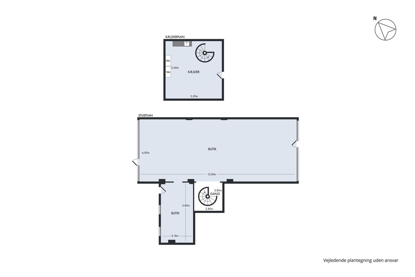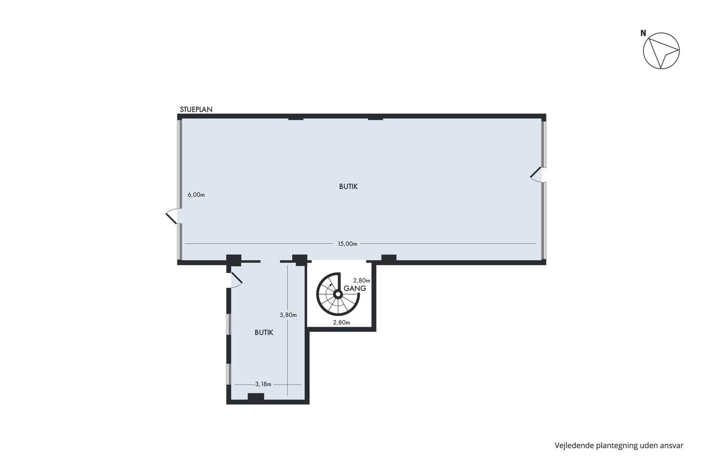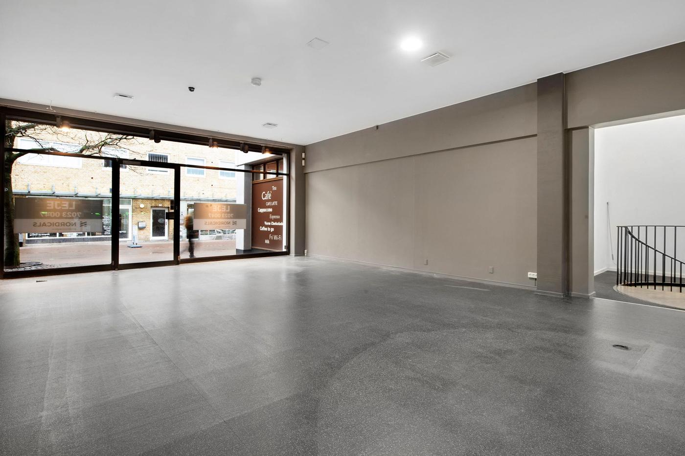 Mulighederne byder sig til allerede fra start: lokalet kan nemlig tilgås fra to indgange, en fra selve Helsingørsgade og en fra Østergade ved byens parkeringshus, så du kommer til at høre hjemme lige i smørhullet. Til begge sider er der naturligvis facadevinduer fra væg-til-væg og gulv-til-loft, så du har et gennemgående lysindfald i det store hovedlokale, der står i en rigtig pæn stand. Endnu et butikslokale ligger tilstødende med endnu en indgang fra Østergade, og ydermere fører en charmerende spindeltrappe ned i det store kælderrum, der er perfekt som lager og til personale.
