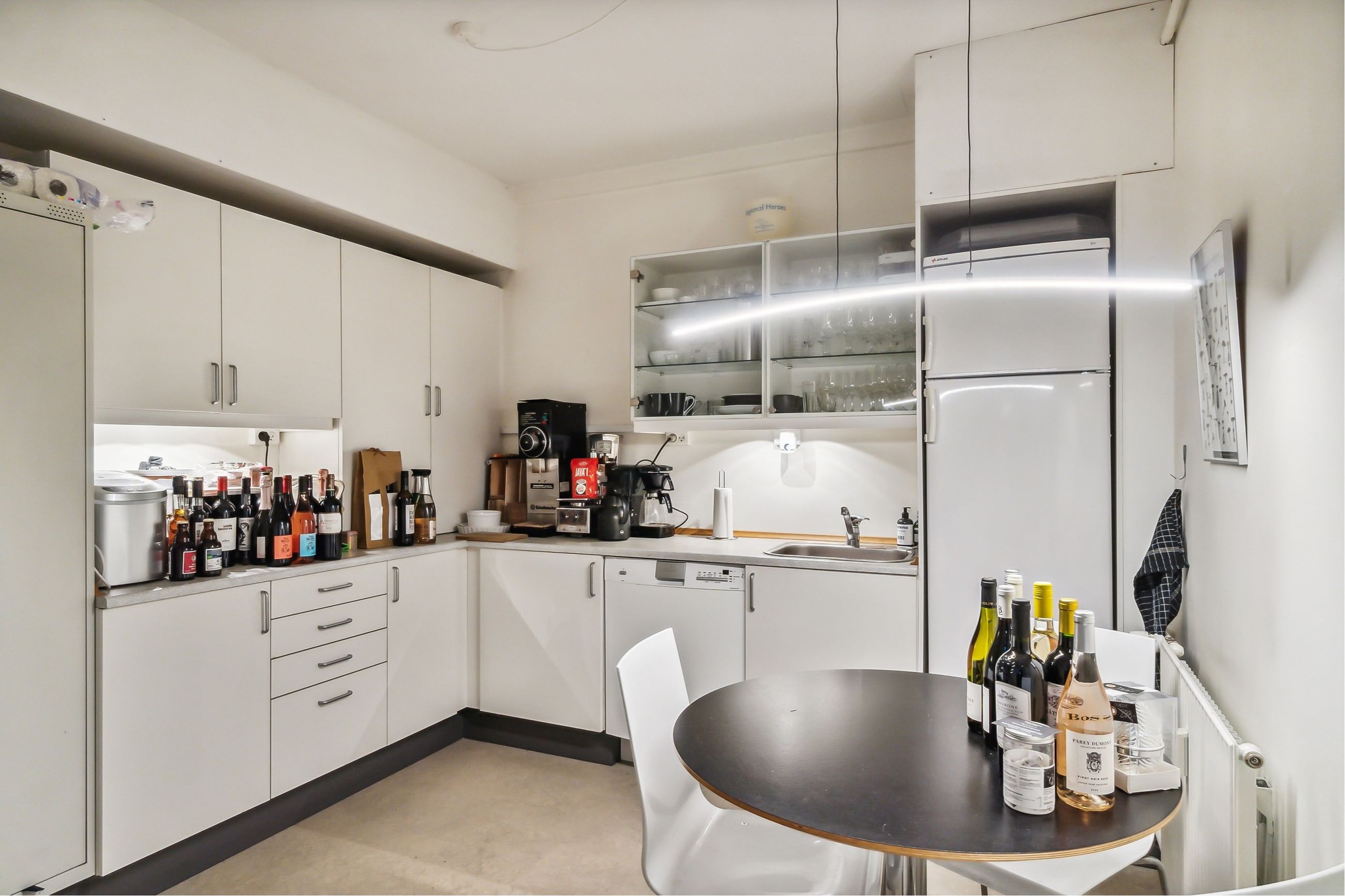 Selve lejemålet udfolder sig på et stort, lyst rum, der kan indrettes med disk, prøverum eller hvad end, I har på tegnebrættet. Til etagen hører der også et toilet, og så følger der en stor kælder med til butikken. Denne byder på to disponible rum til lager og diverse, og desuden er der arrangeret et godt køkken til frokostpausen.
