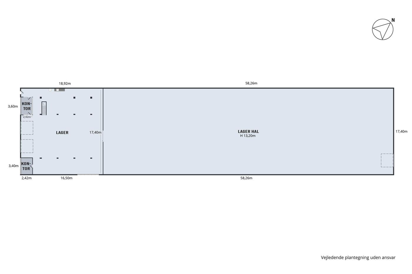 Lokalerne har højt til loftet og er store og regulære, hvorfor anvendelsesmulighederne er helt i top. De fleste kvadratmeter fordeler sig over et voluminøst lagerrum med 12 meter til loftet, som byder på sublime opbevaringsmuligheder med reoler og truck der medfølger i lejemålet - du kan praktisk talt få det præcis, som du ønsker. Derudover venter endnu et lagerrum med tekøkken samt to lyse kontorlokaler til fx administration. Erhvervslejemålet byder, som tidligere nævnt, på gode anvendelsesmuligheder, og det er eksempelvis ideelt til engroshandel eller dig med egen webshop, som har brug for masser af opbevaring.