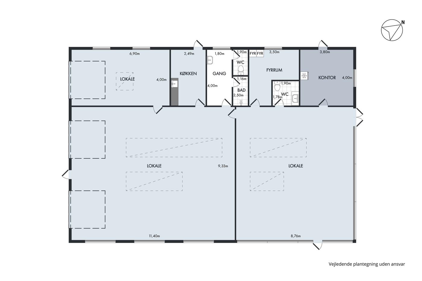 Ejendommen står i flot stand, og den rummer 291 kvadratmeter med højt til loftet og mange muligheder. De store og anvendelige rum kan nemlig anvendes og indrettes nøjagtigt, som I ønsker - uanset om der er tale om der er tale om fx bilforhandler eller kontorvirksomhed, eller om lejemålet skal benyttes til showroom eller lager.