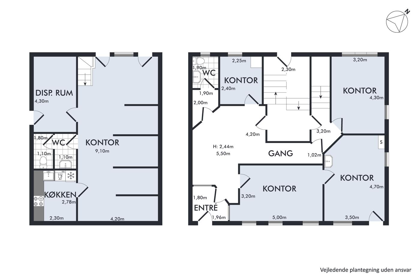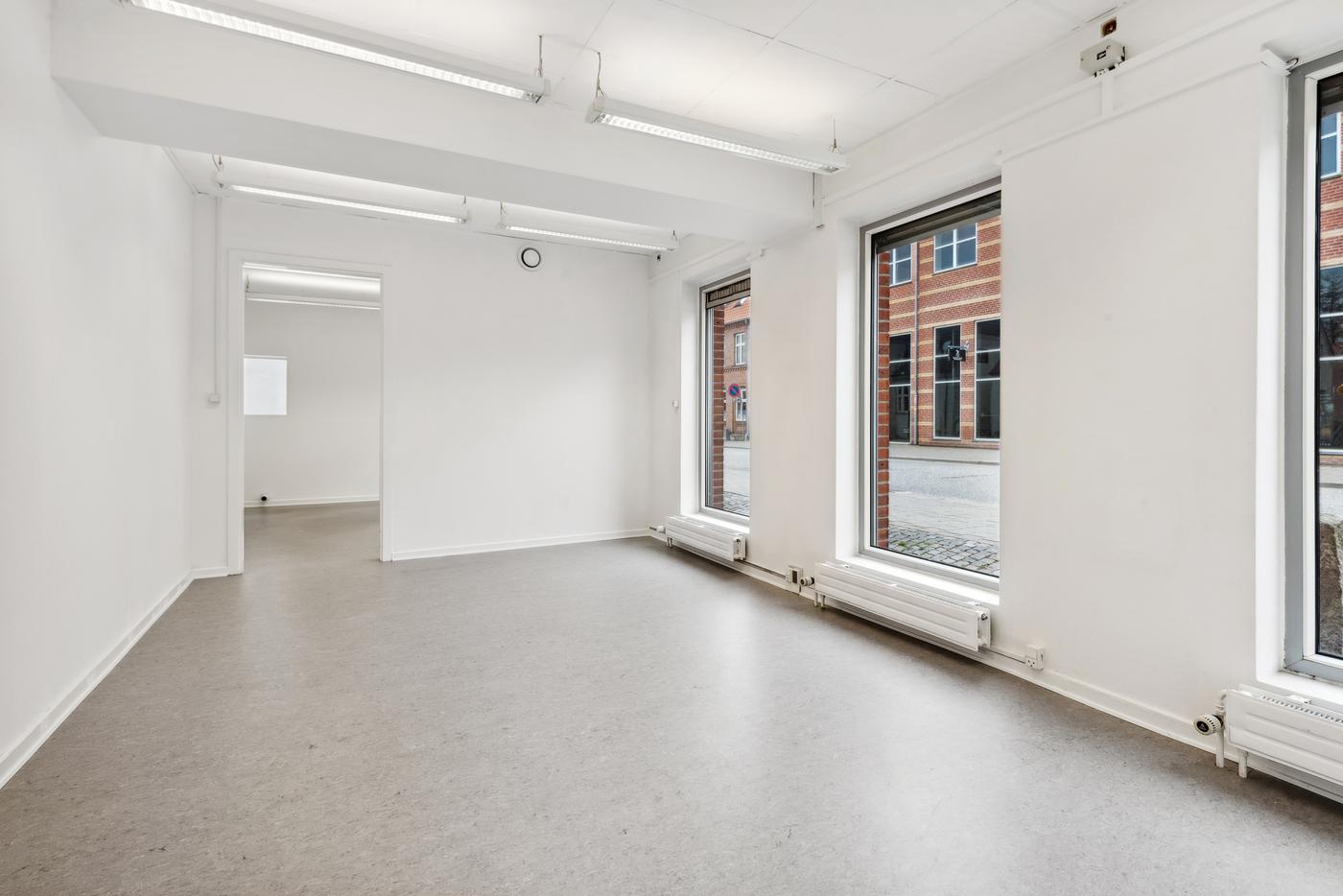 Lejemålet har tidligere fungeret som klinik for fodterapi. Dets gode rum gør sig godt til netop klinik, og der er god plads til både dig, kunder og kolleger. Man modtages først og fremmest af en entré med afsæt til et rummeligt gangareal - her er rig mulighed for at have et venteværelse, og det er også herfra, at der er adgang til et toilet. Gulvene er pæne, det naturlige lysindfald er behageligt, og i det hele taget er det hele lige til at gå til. Derudover er der adgang til en lille håndfuld kontorer, hvilket også gør lejemålet oplagt til det lille kontorfællesskab. Arealerne afsluttes af en lys og højloftet kælder, der ligeledes fremstår ganske pæn. Der er både toilet og køkken, og så er der direkte adgang til en rolig gårdhave til en pause i det fri.