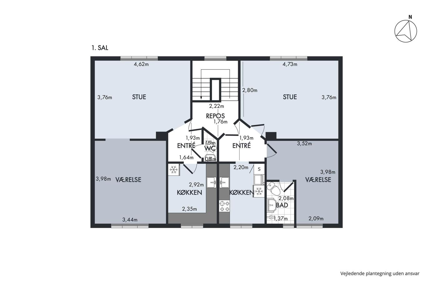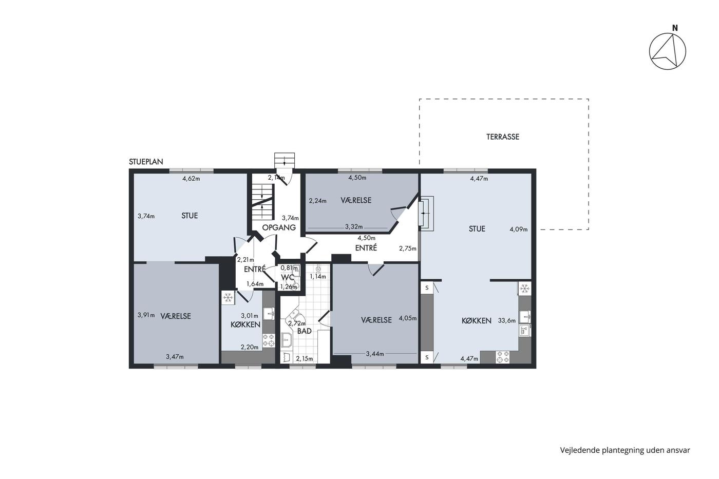 Her får du 4 gode lejligheder, hvor tre af dem er 2 værelses på 53 m2 og den sidste er en 3 værelses på 90 m2 med en god rumfordeling. Fælles for lejlighederne er at de er i en god stand og er urolig velholdt.