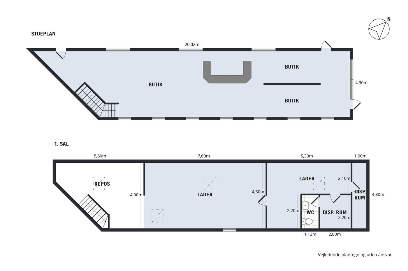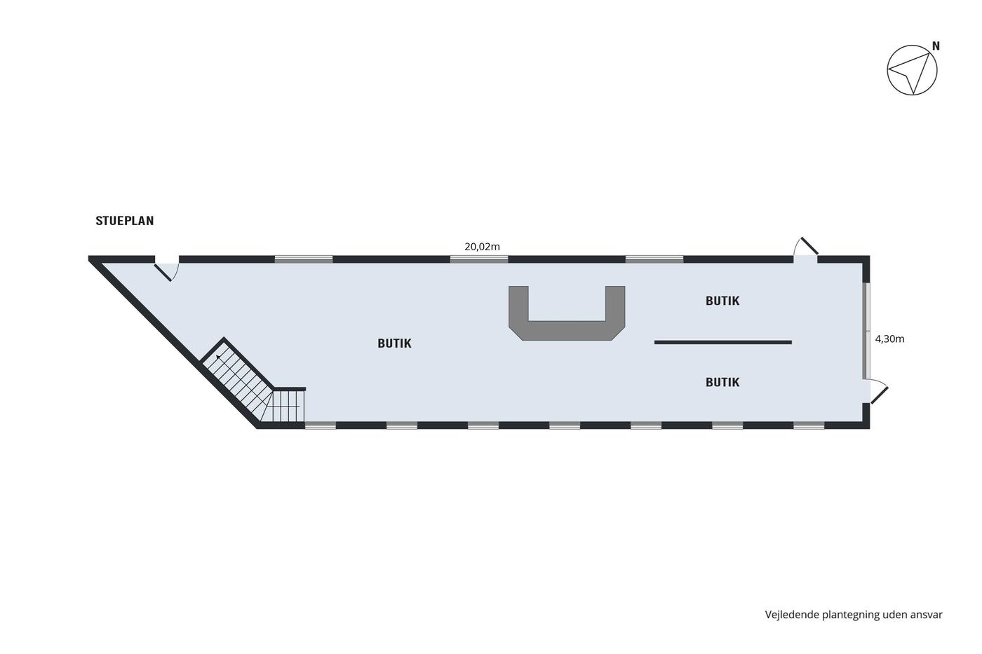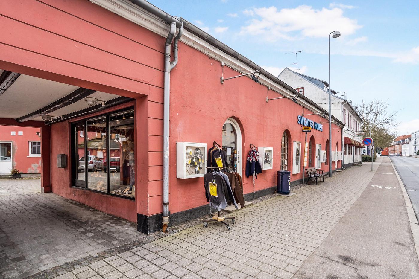 Beliggenheden er er perfekt for et erhvervslejemål som dette - en 160 m2 stor ejendom, der fordeler sig over to etager og fremtræder i god stand. Den røde bygning skaber straks blikfang, imens de store vinduer giver et indblik i butikken og lokker købelystne kunder indenfor. Fra gadedøren træder I ind i den store butik, som straks charmerer med blottede loftsbjælker. Rummet er stort og indbydende med rig plads til både hylde- og stativvarer for jer, der gerne vil drive forretning. Lokalet vil også egne sig godt som klinik, da der nemt kan etableres lukkede behandlerrum, så både kosmetologen, massøeren og lignende kan arbejde i samspil. Der er også mulighed for at inddrage 1. salen, der i dag anvendes som lagerlokaler og kontormiljø. Her er mulighederne mange og beliggenheden i top.