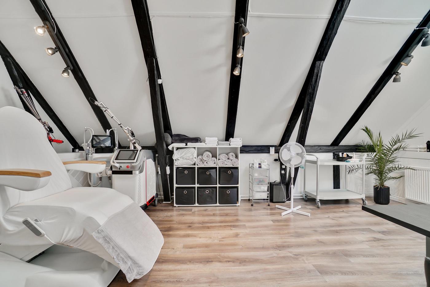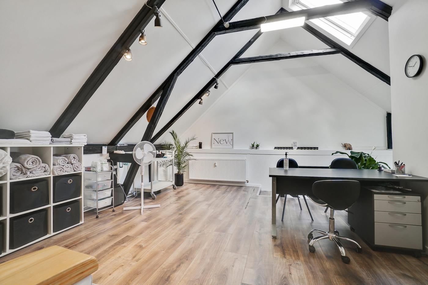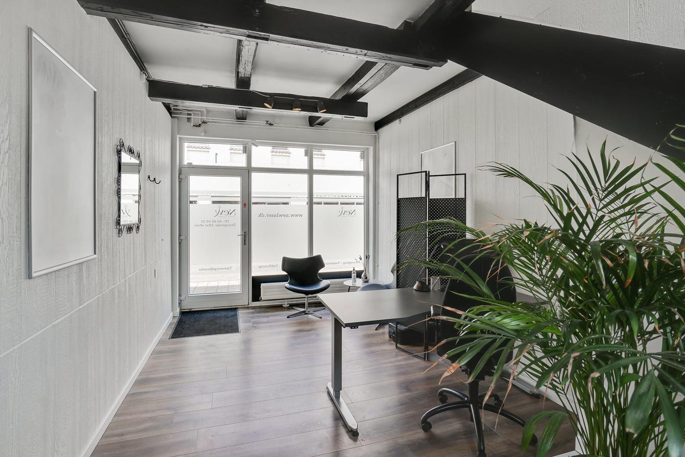Lejemålet indeholder: Stueetagen - Lille butikslokale / reception ca. 30 m². 1. sal - Flot rum med loft til kip. Derudover køkken og toiletfaciliteter.