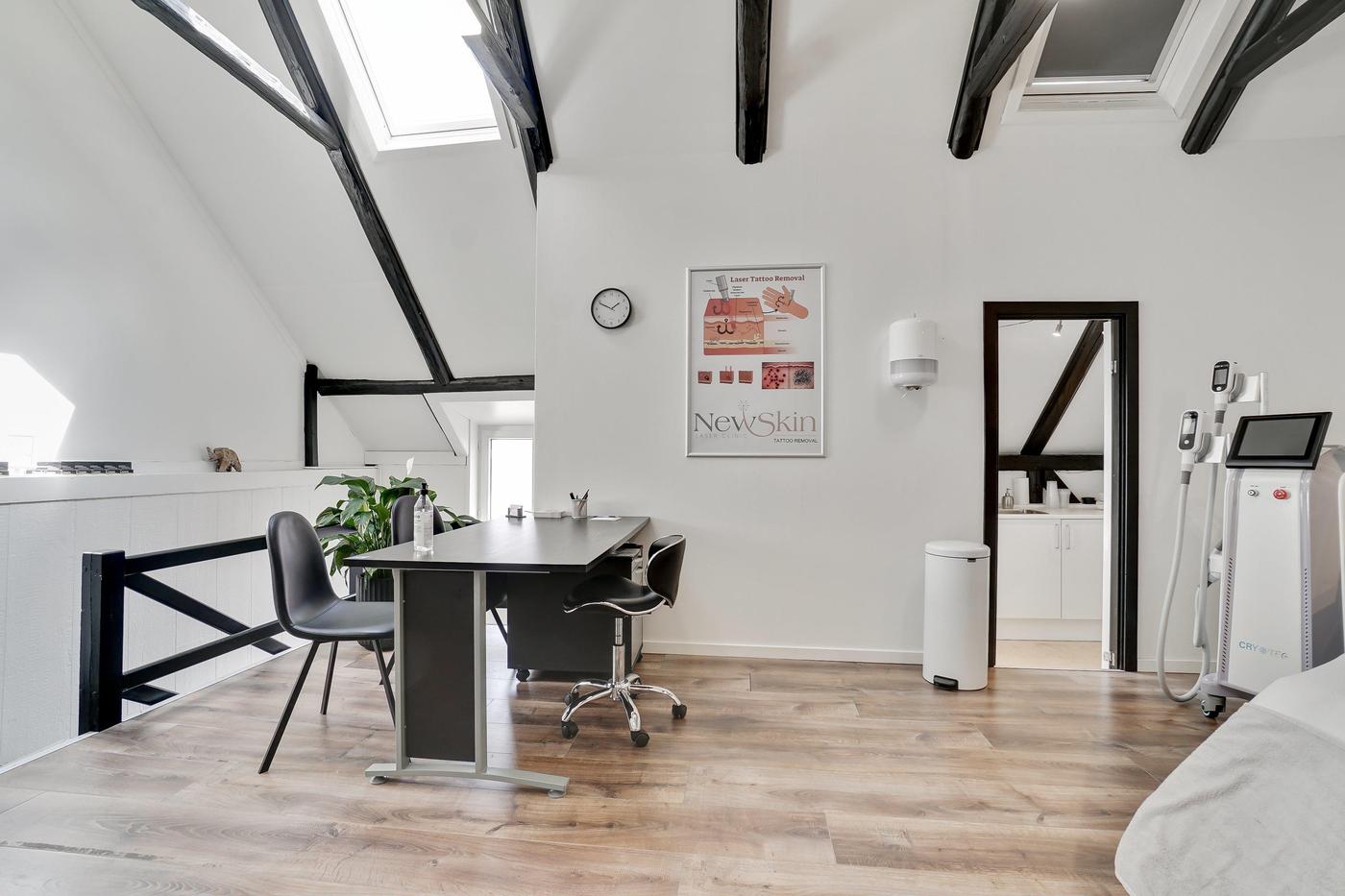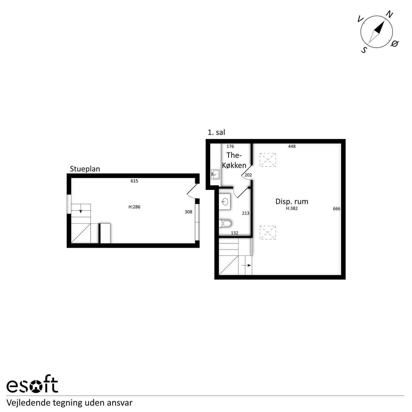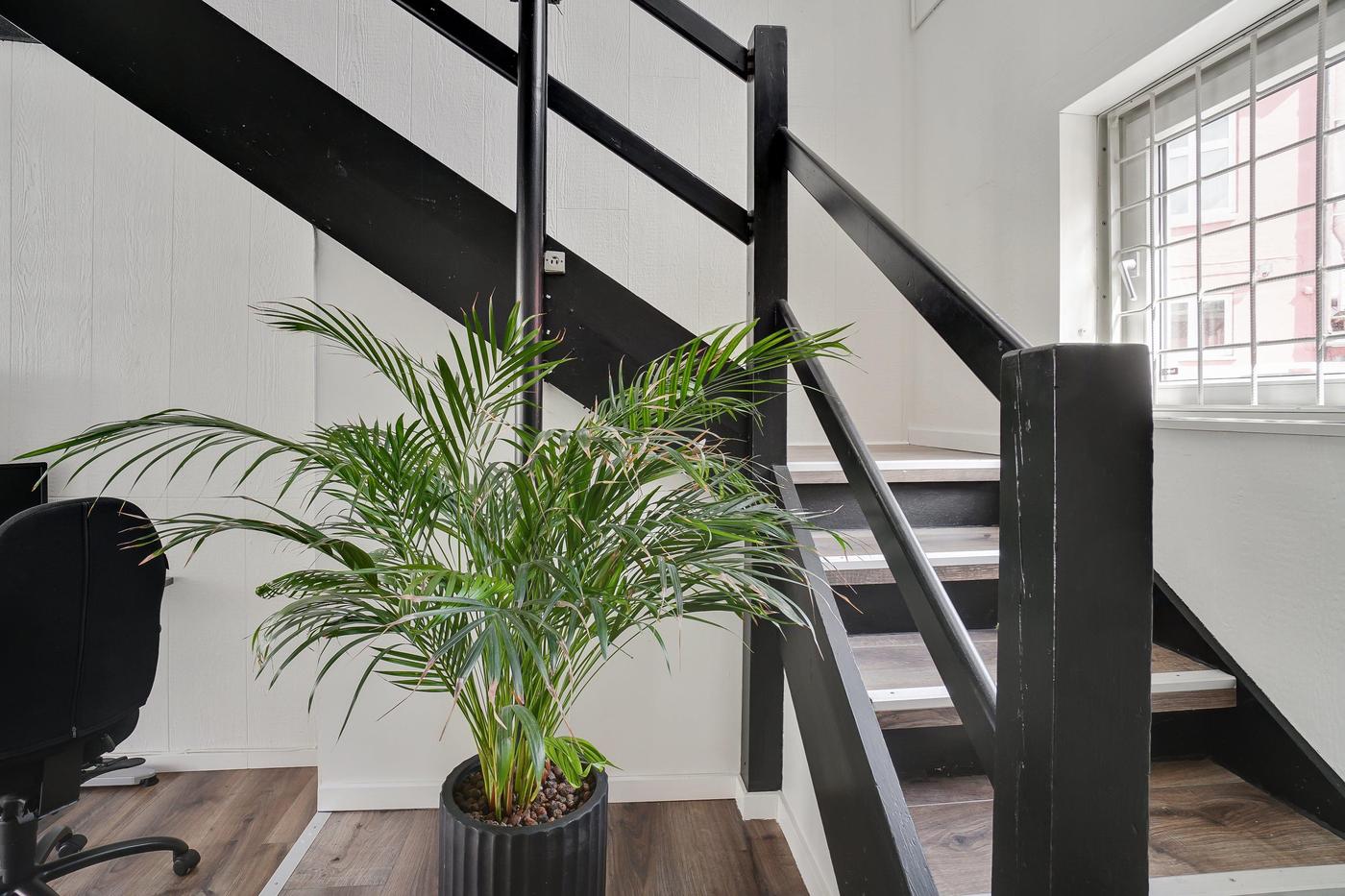 Lejemålet indeholder: Stueetagen - Lille butikslokale / reception ca. 30 m². 1. sal - Flot rum med loft til kip. Derudover køkken og toiletfaciliteter.