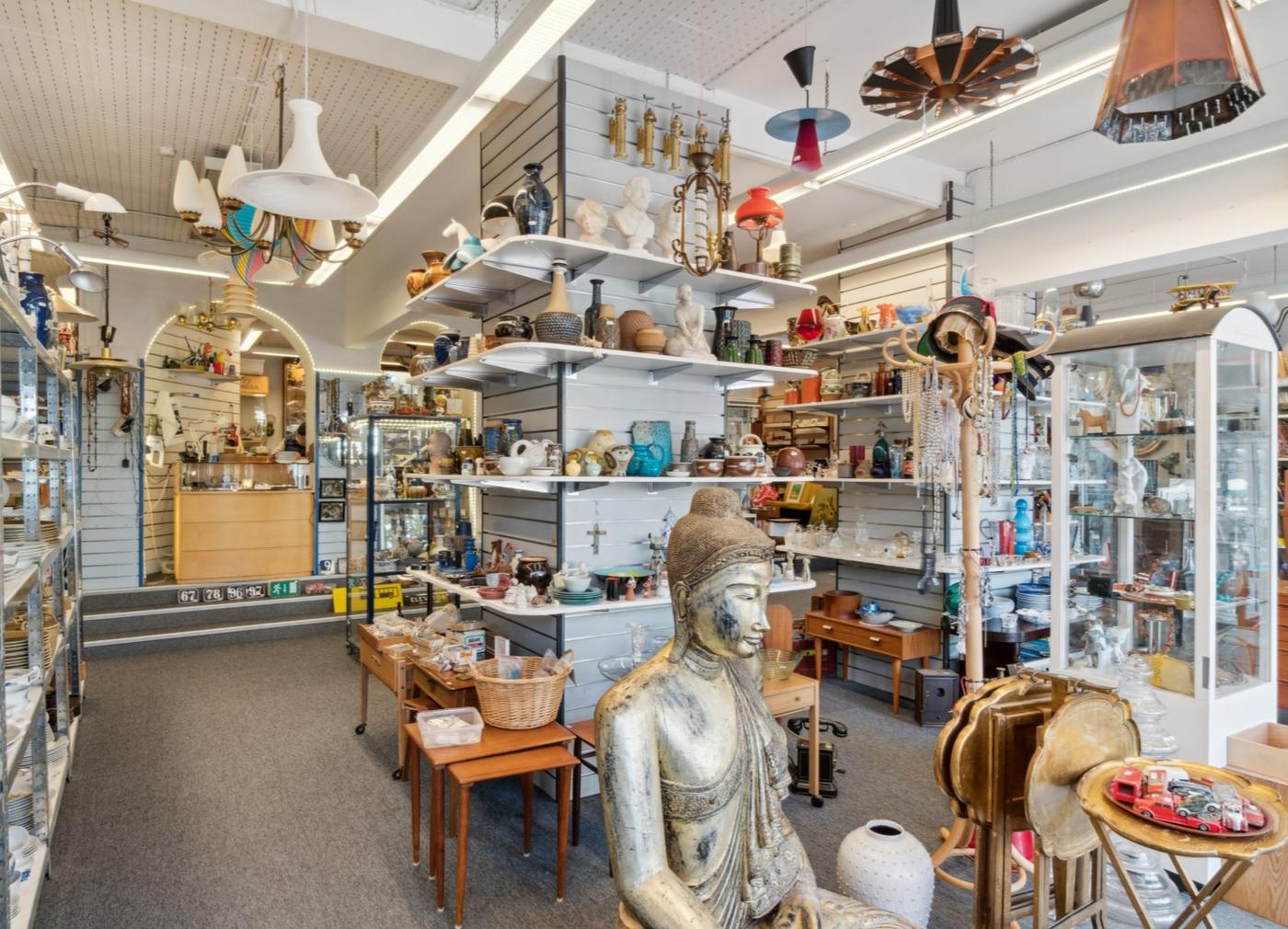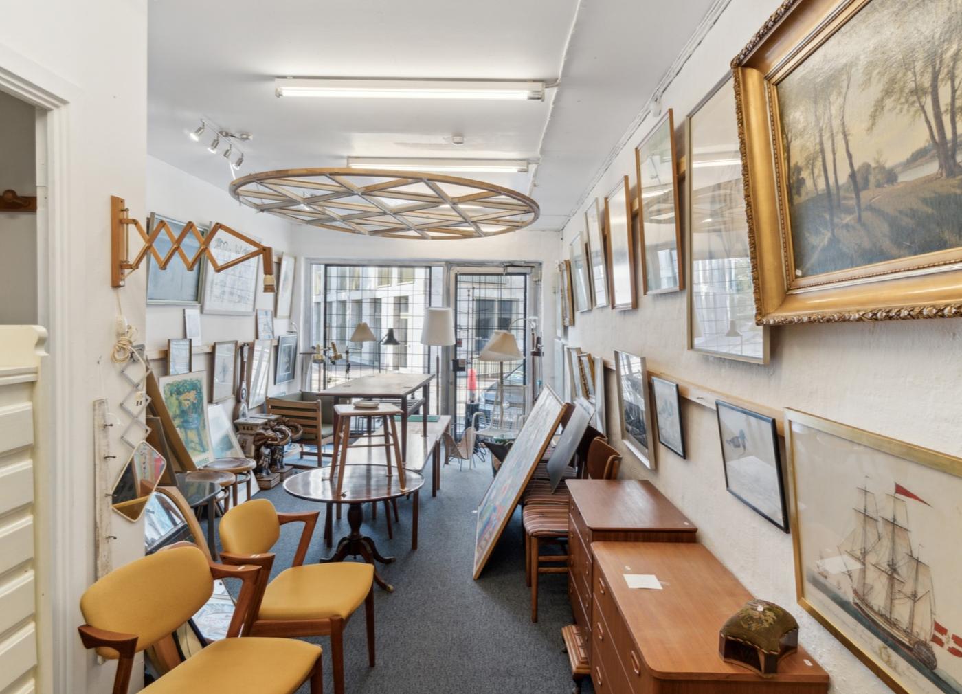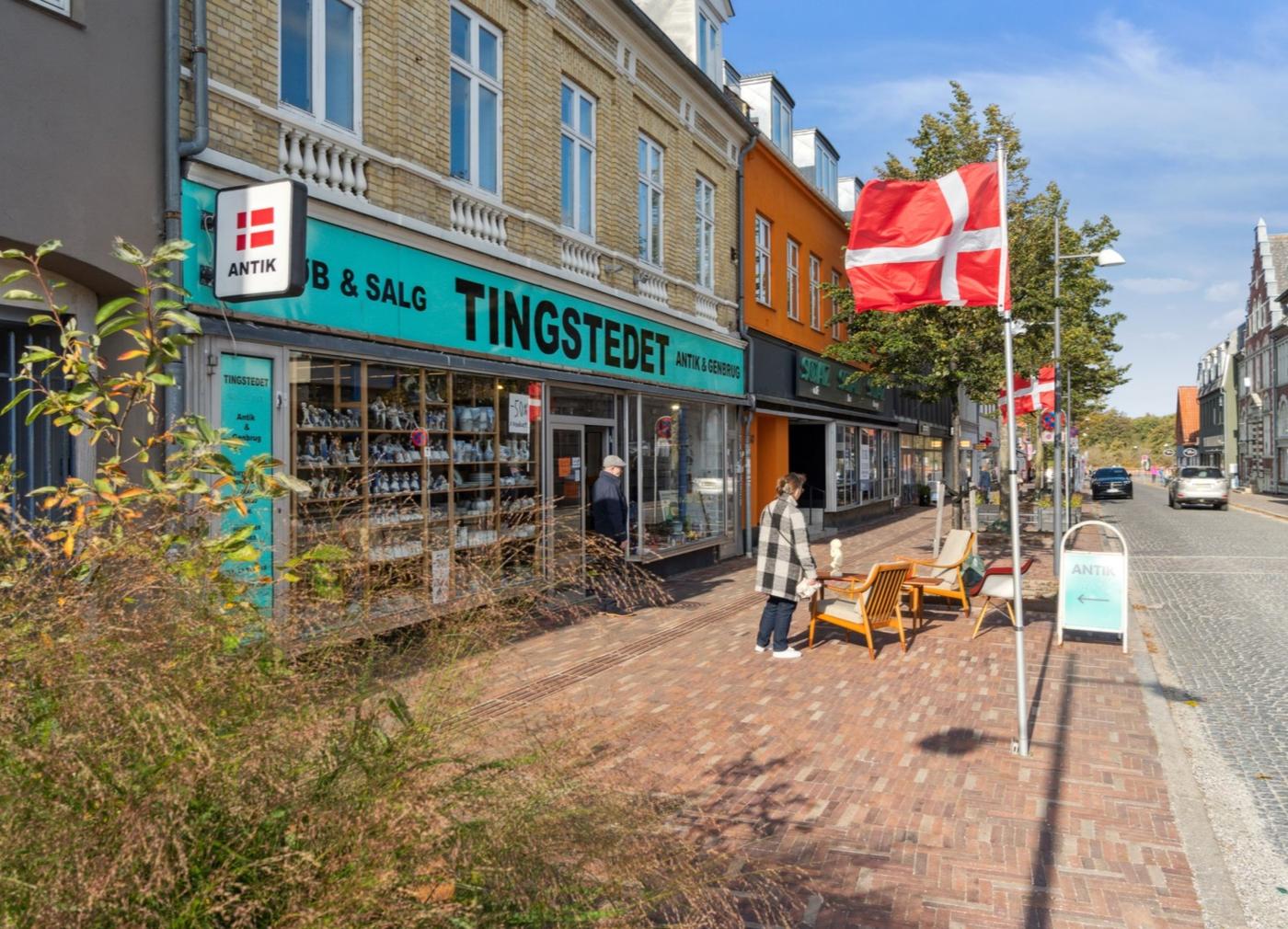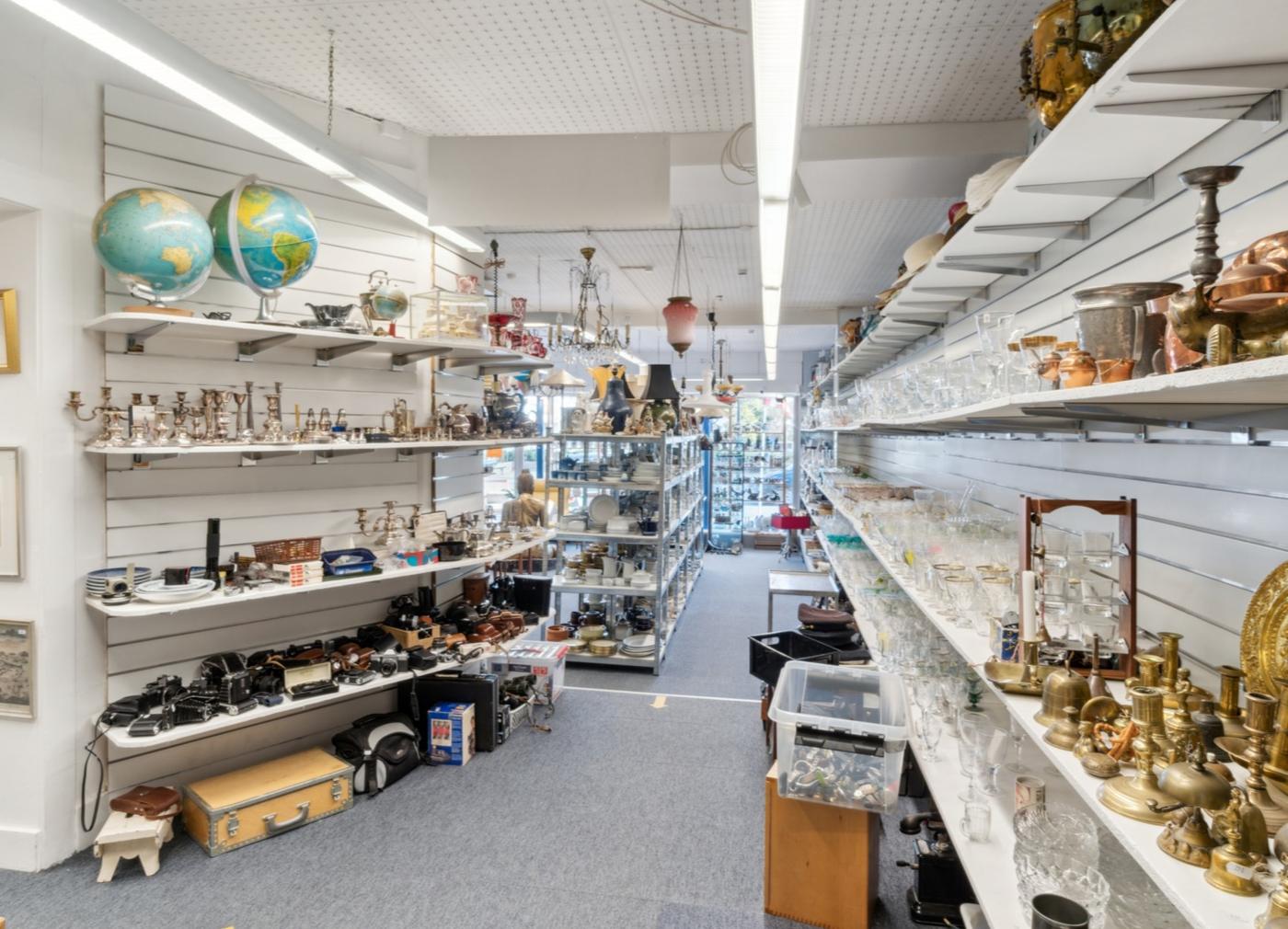Inden døre møder I først og fremmest butikslokalerne, som for nuværende er indrettet til antikvariat. Det er bestemt også oplagt at tage indretningen i andre retninger og på den måde forme og skabe de rammer, I har brug for. Pladsen er under alle omstændigheder rigtig god.