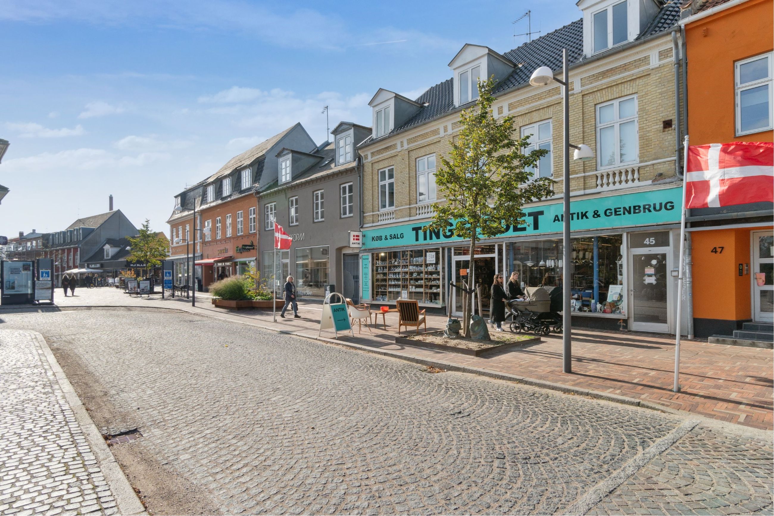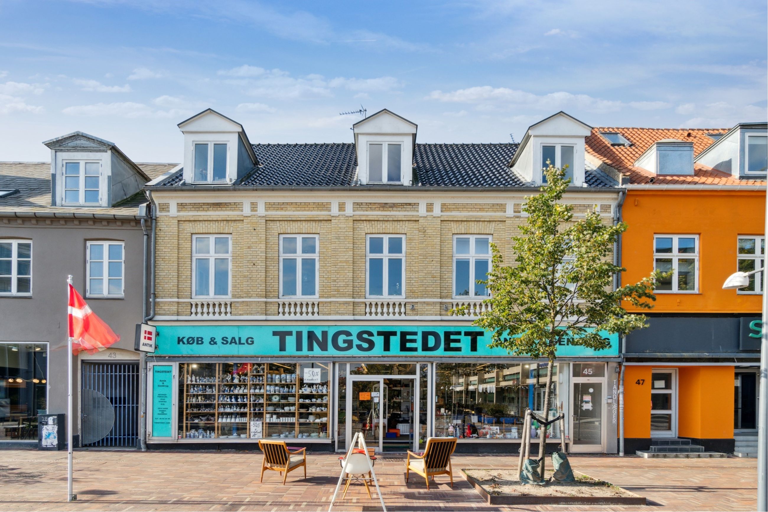 På den attraktive adresse Slotsgade 45 udbydes disse fristende erhvervslokaler nu til salg. Rammerne er fleksible og kan bruges til mange formål, da det er muligt at indrette butik eller lignende fortil og samtidig have god plads til lager og opmagasinering bagtil. Velkommen til Hillerød.